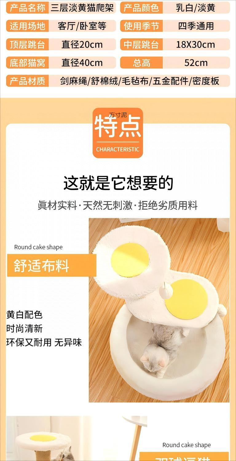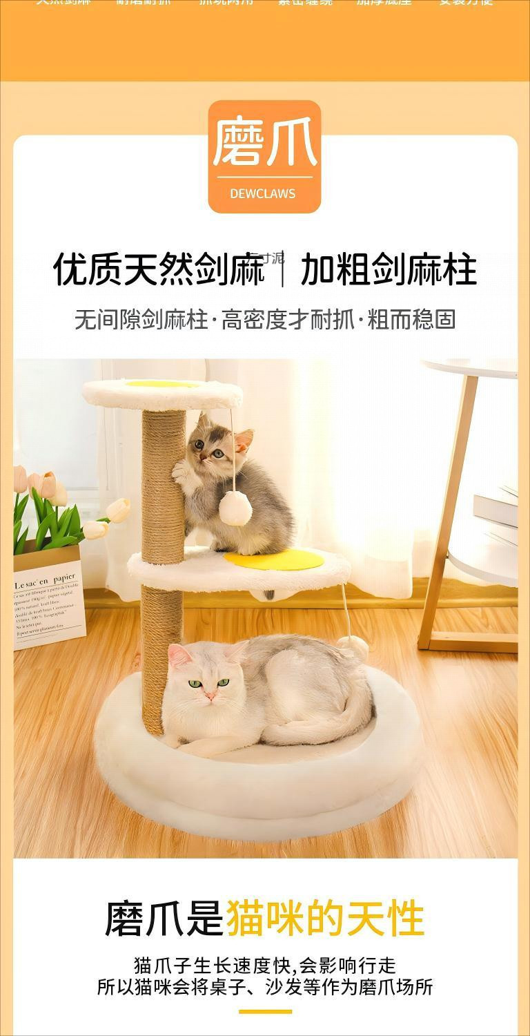 • 고양이 클라이밍 프레임 - 계란 노른자 - 새끼 고양이 [업그레이드 모델 - 탈부착 및 세탁 가능한 면 둥지] --- 엄선된 제품