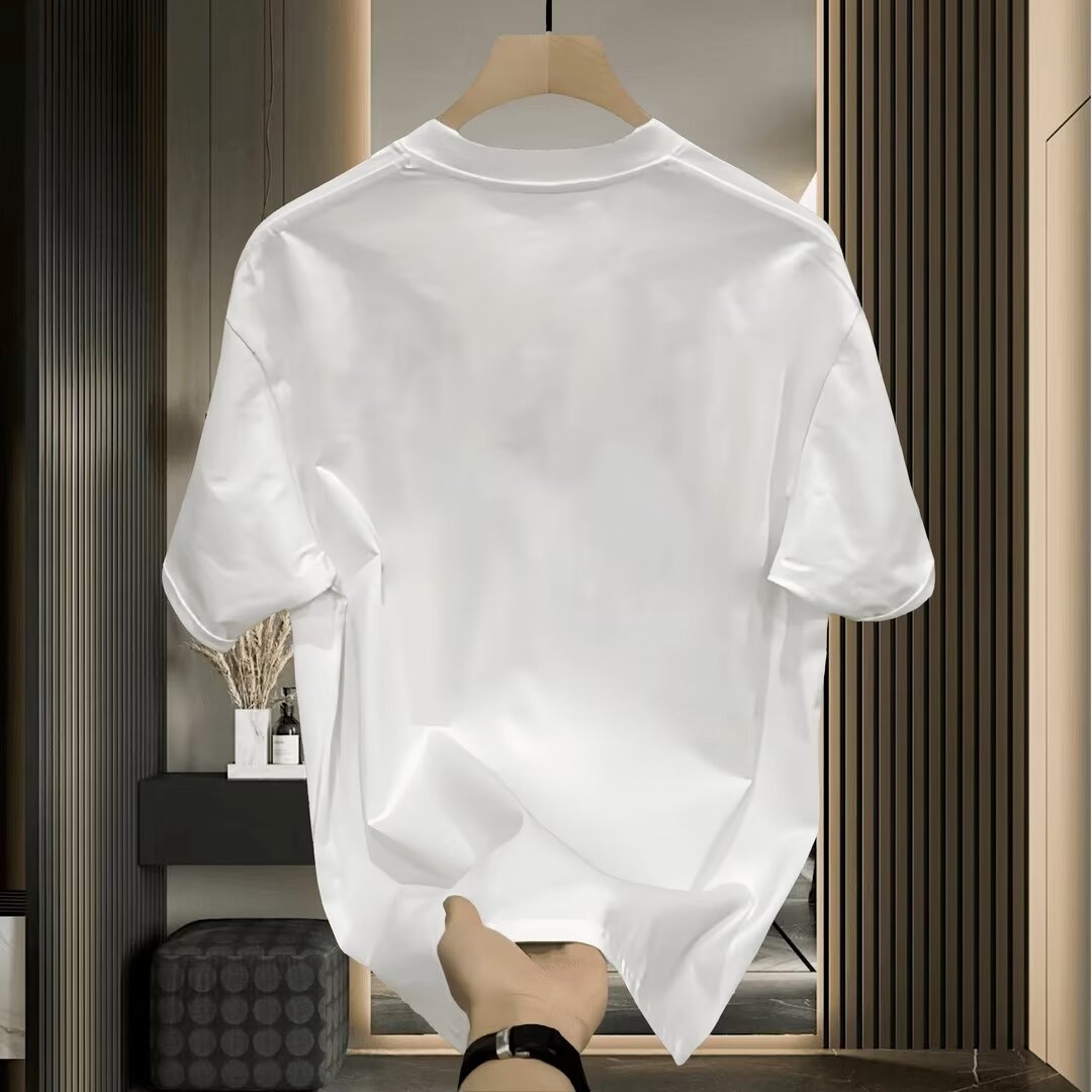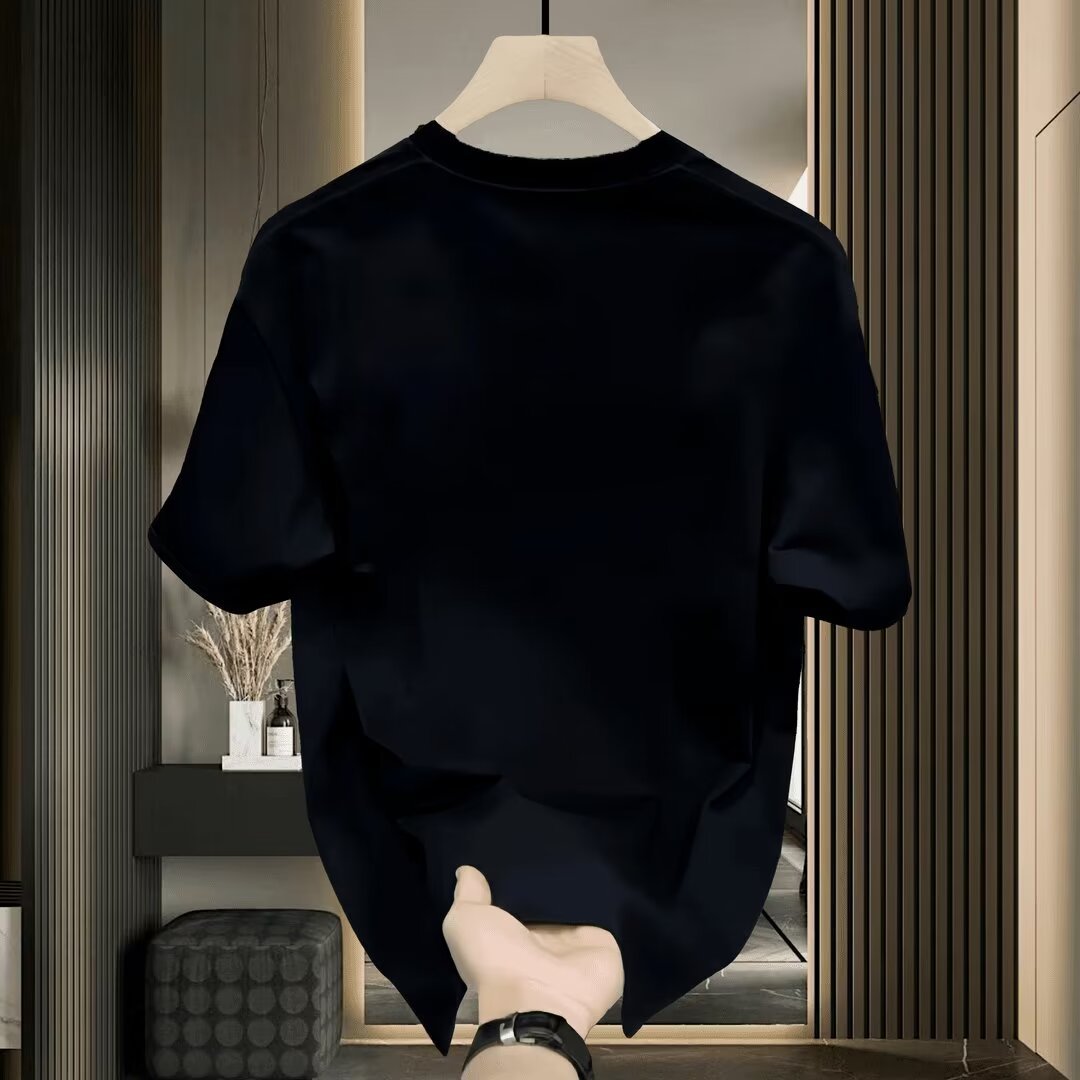 유럽 고급 헤비급 남성 반팔 상의, 통기성이 좋고 트렌디한 브랜드, 부드럽고 다재다능한 티셔츠, 가벼운 럭셔리 패션 반팔 라운드 넥