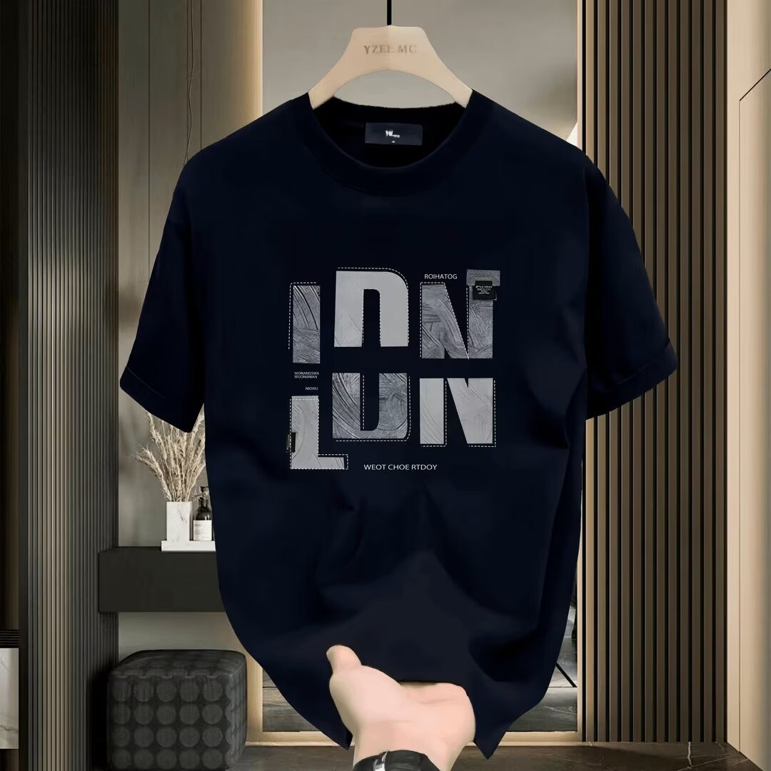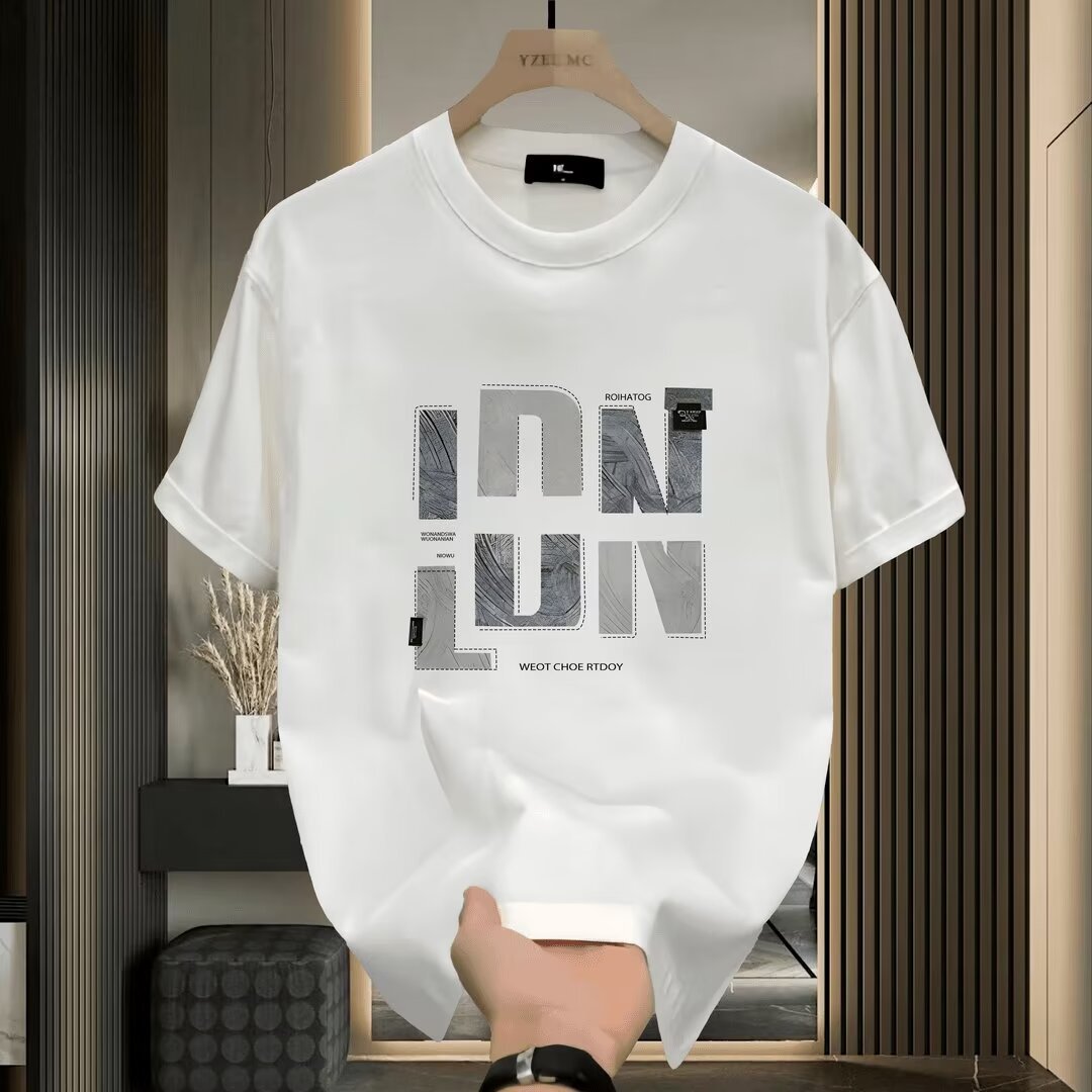 유럽 고급 헤비급 남성 반팔 상의, 통기성이 좋고 트렌디한 브랜드, 부드럽고 다재다능한 티셔츠, 가벼운 럭셔리 패션 반팔 라운드 넥스토어 가기