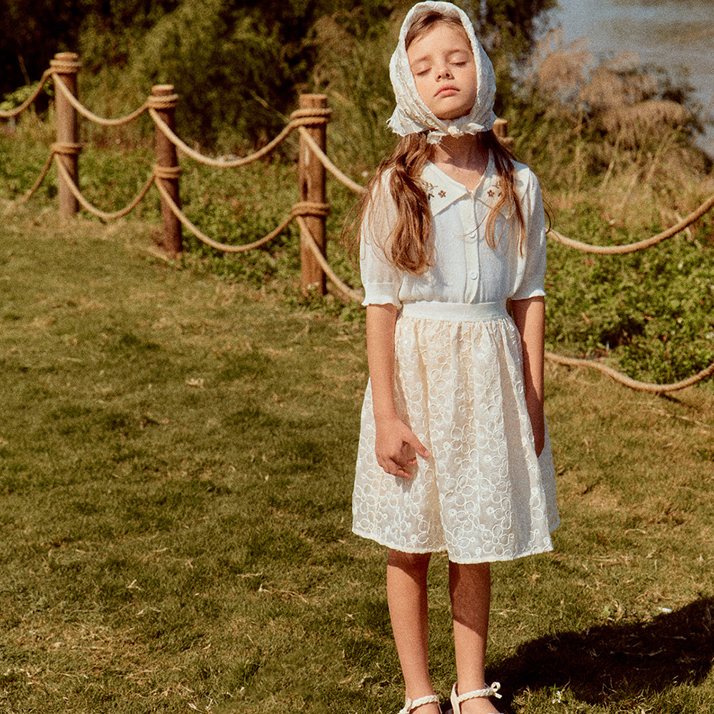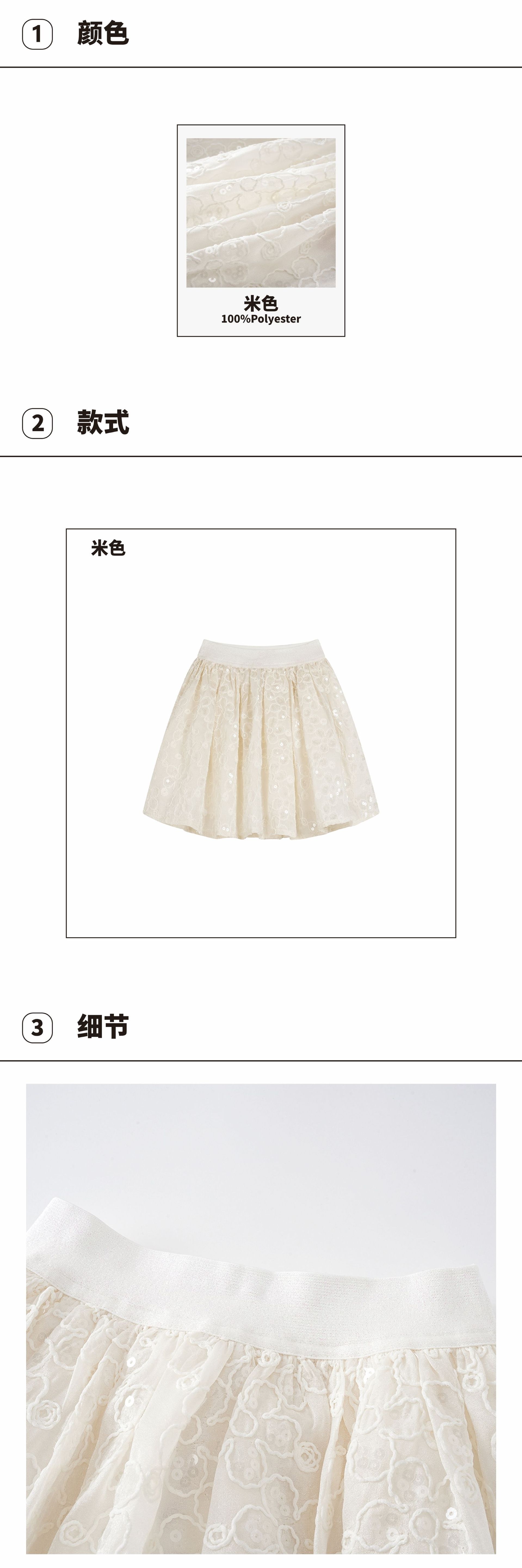 한국 스타일 소녀 레이스 자카드 주름 치마 2025 여름 아동 의류 목가적 신선한 복고풍 숲 스타일 메쉬 다목적 짧은 치마
