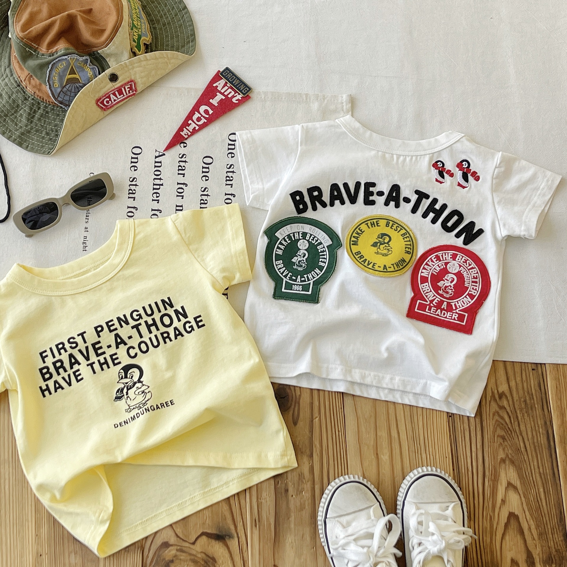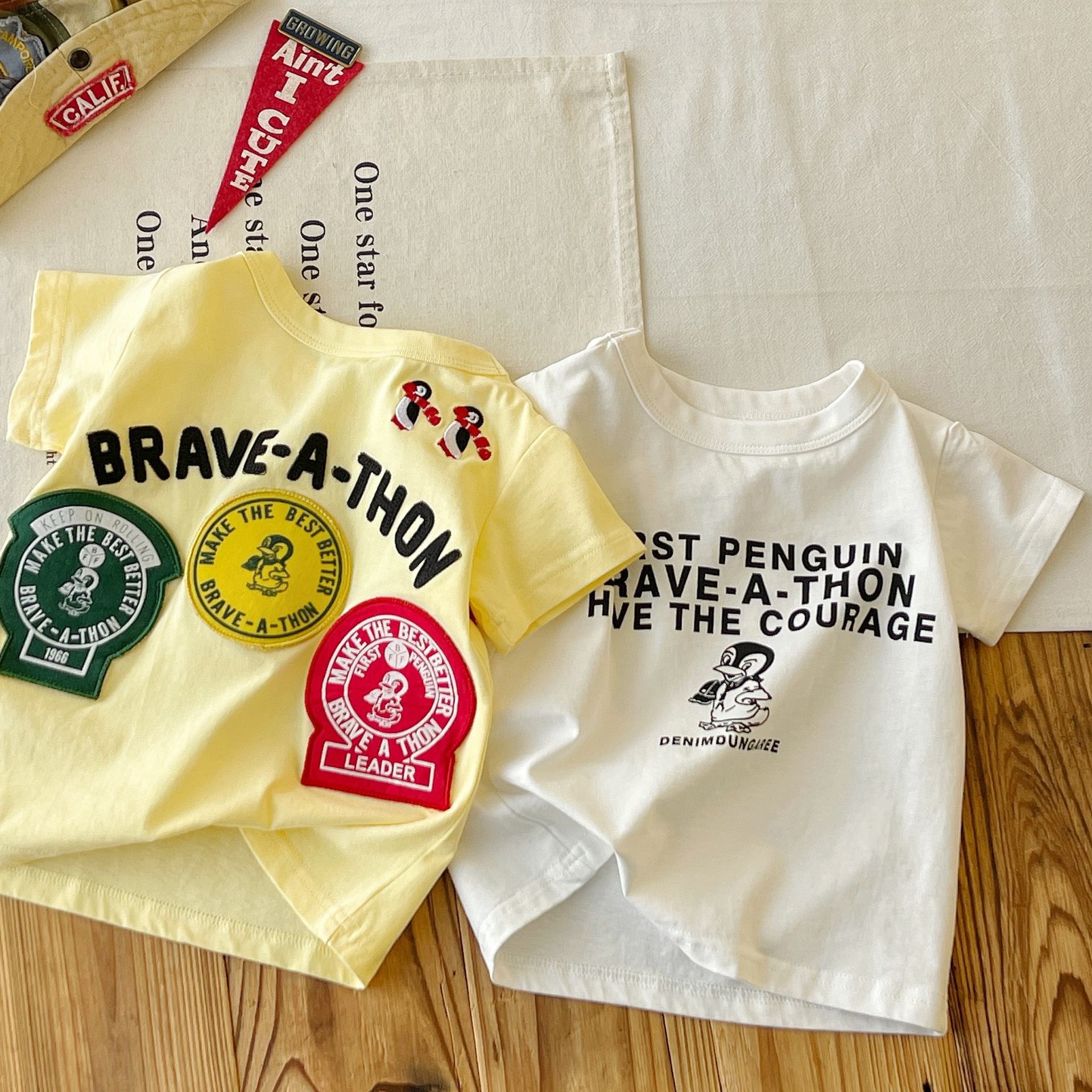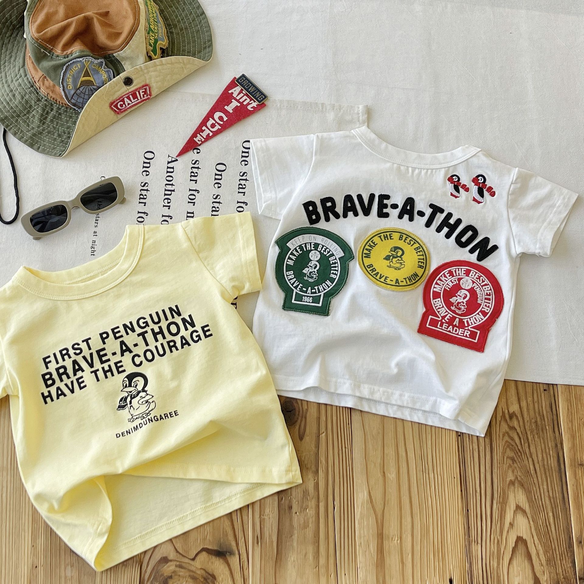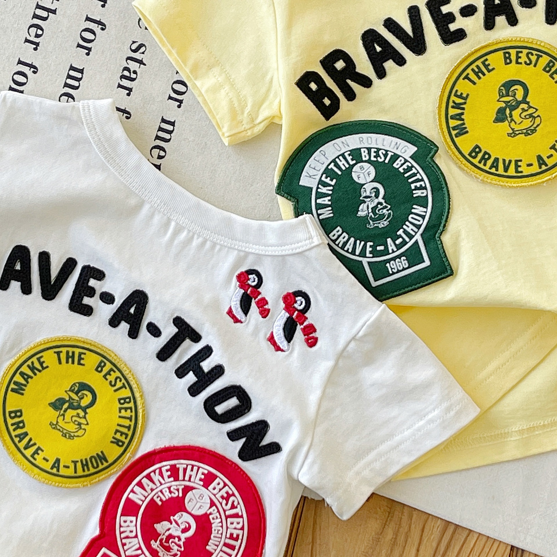 [재고 있음] 일본 아동복 중고 DD 아동 여름 티셔츠 배지 코튼 반팔스토어 가기