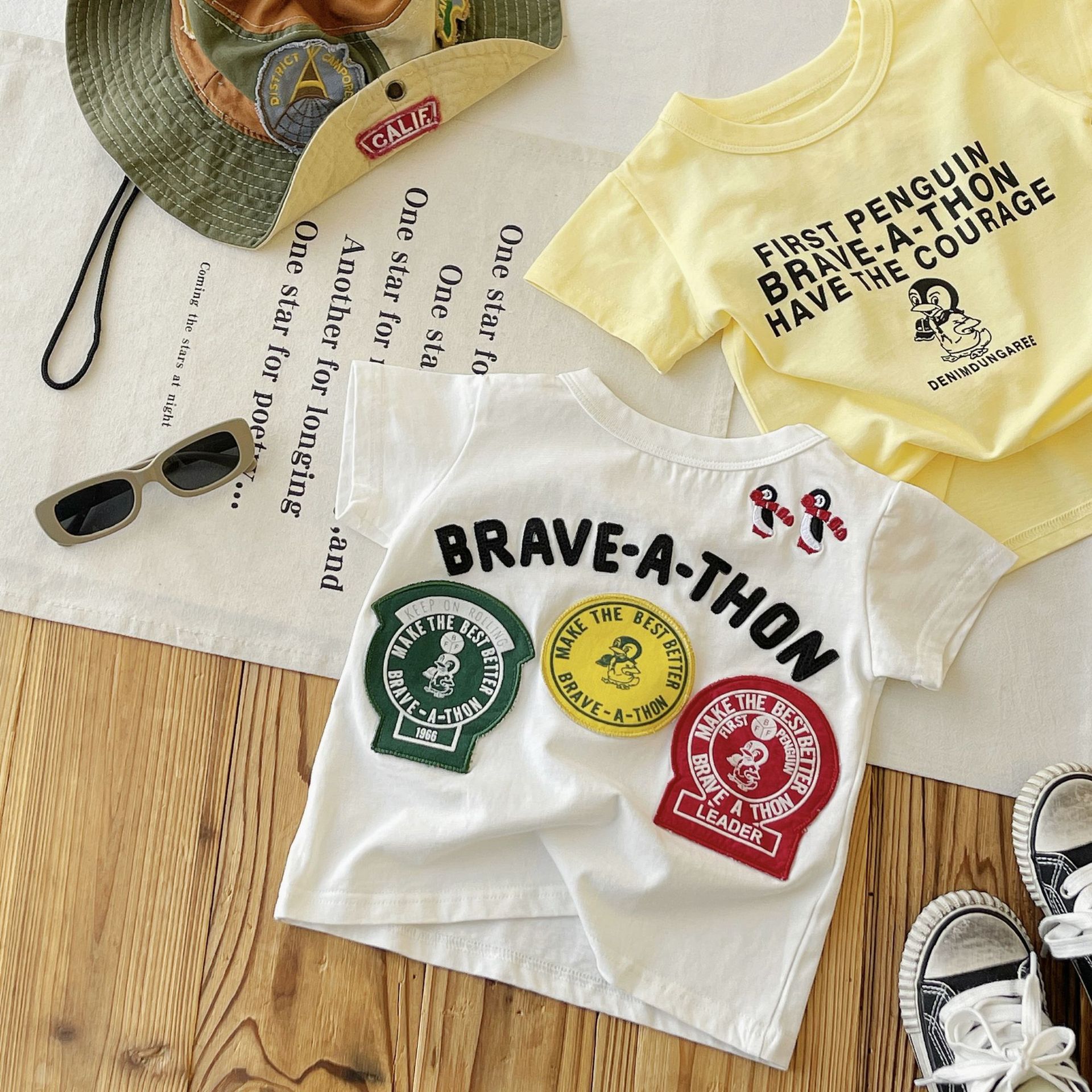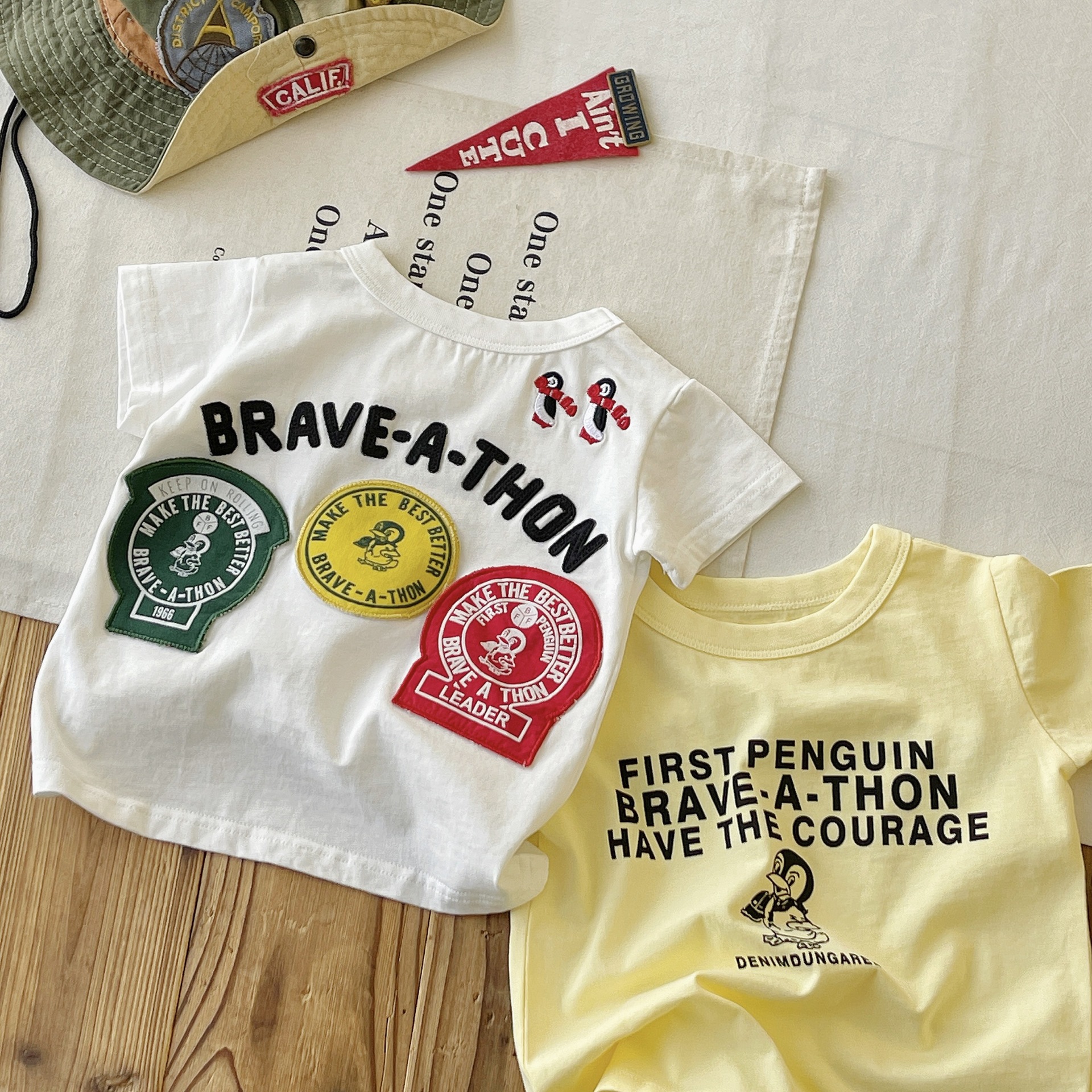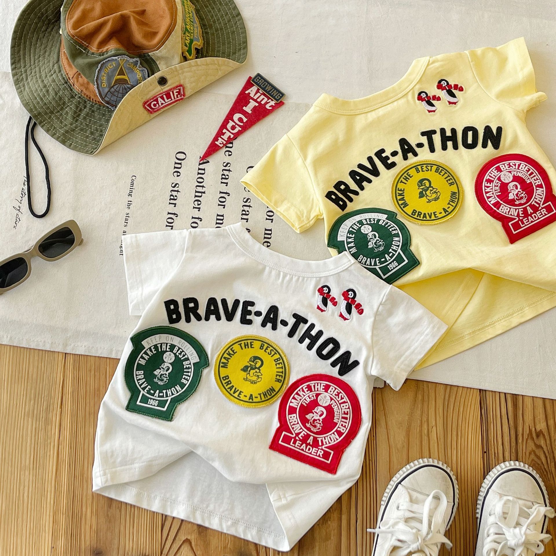[재고 있음] 일본 아동복 중고 DD 아동 여름 티셔츠 배지 코튼 반팔스토어 가기