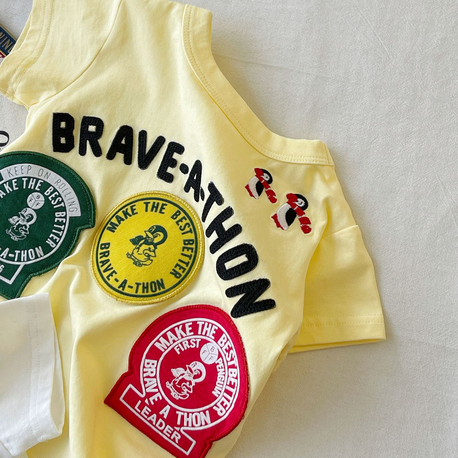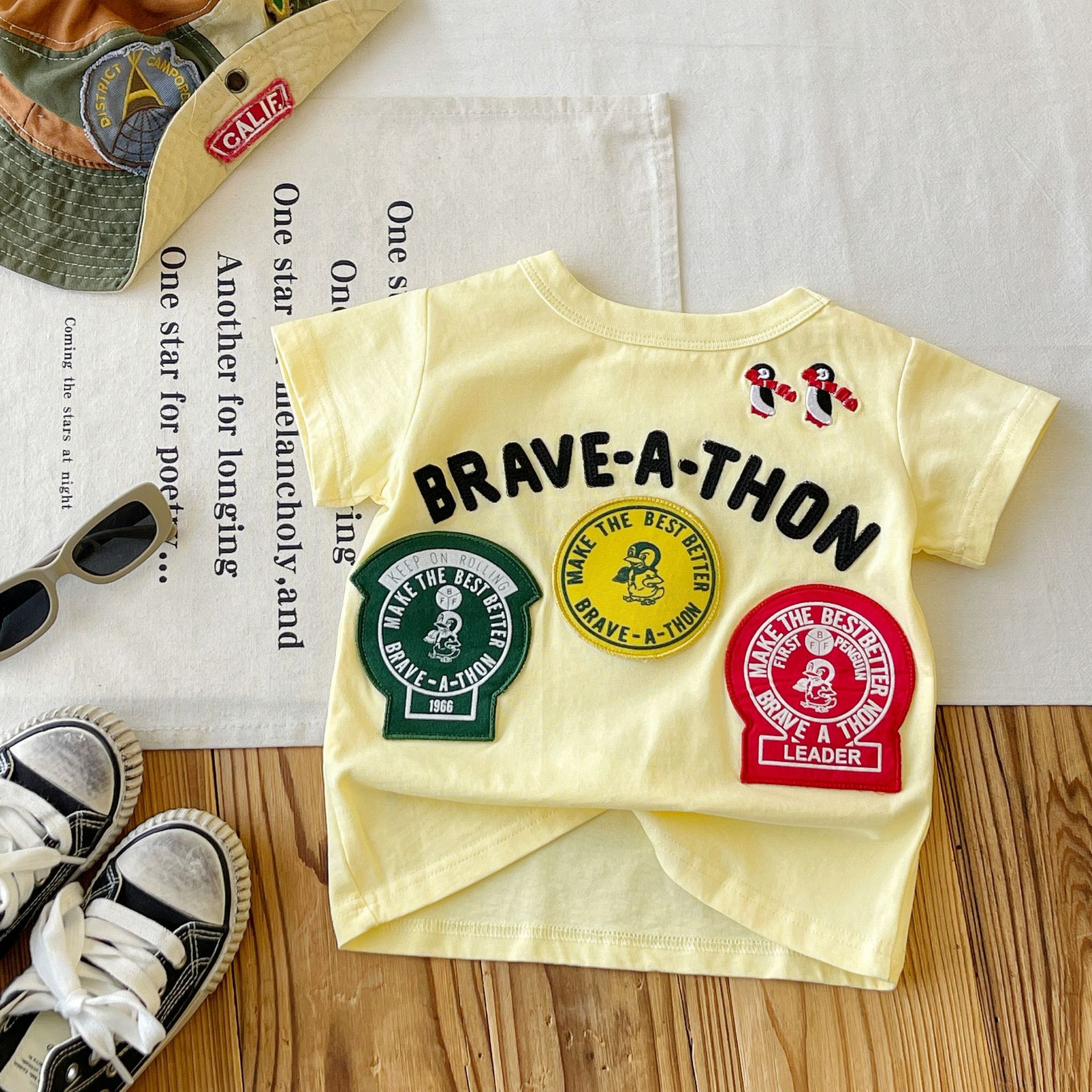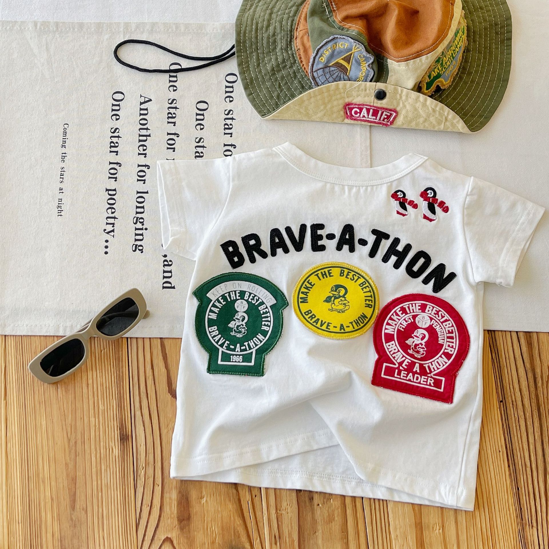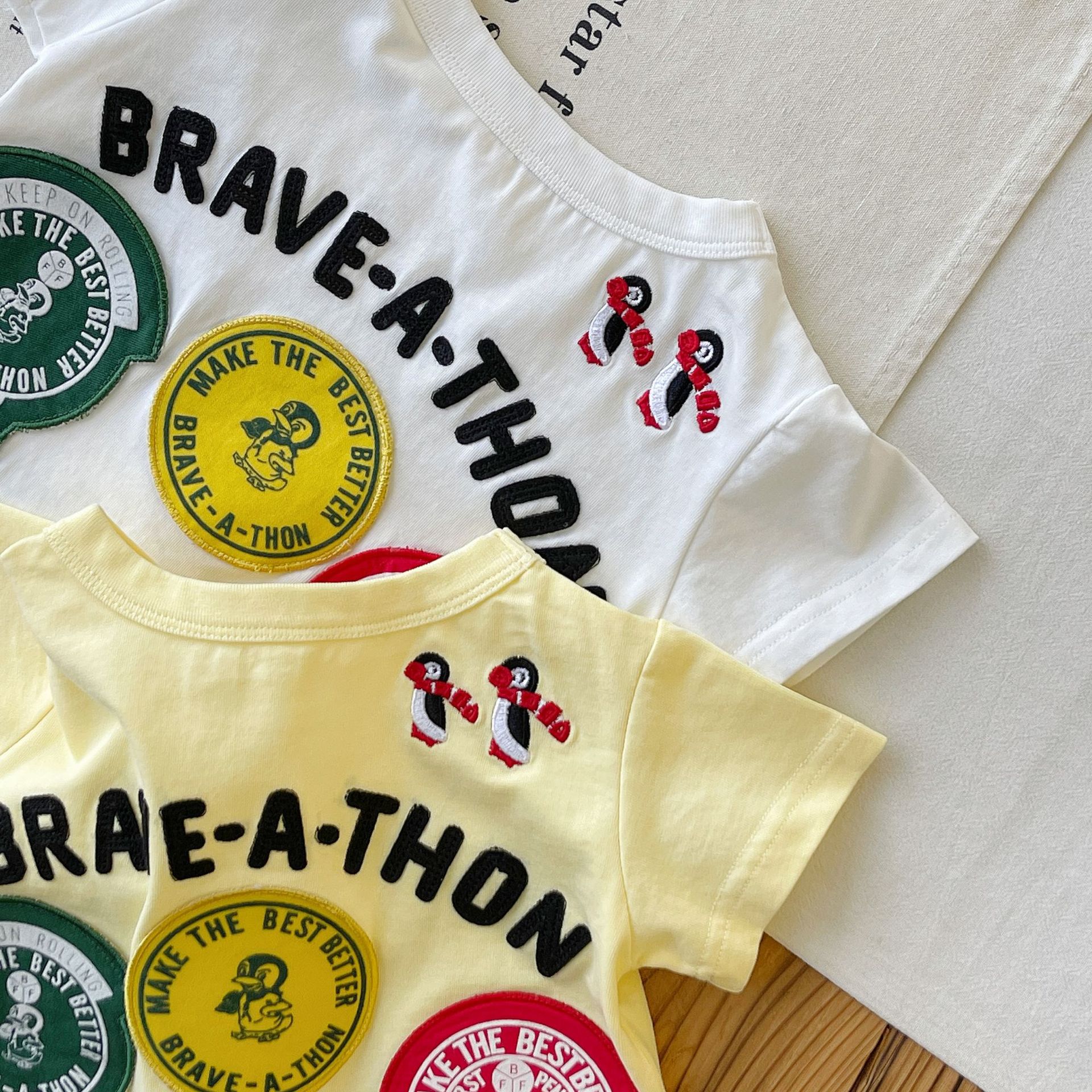 [재고 있음] 일본 아동복 중고 DD 아동 여름 티셔츠 배지 코튼 반팔스토어 가기
