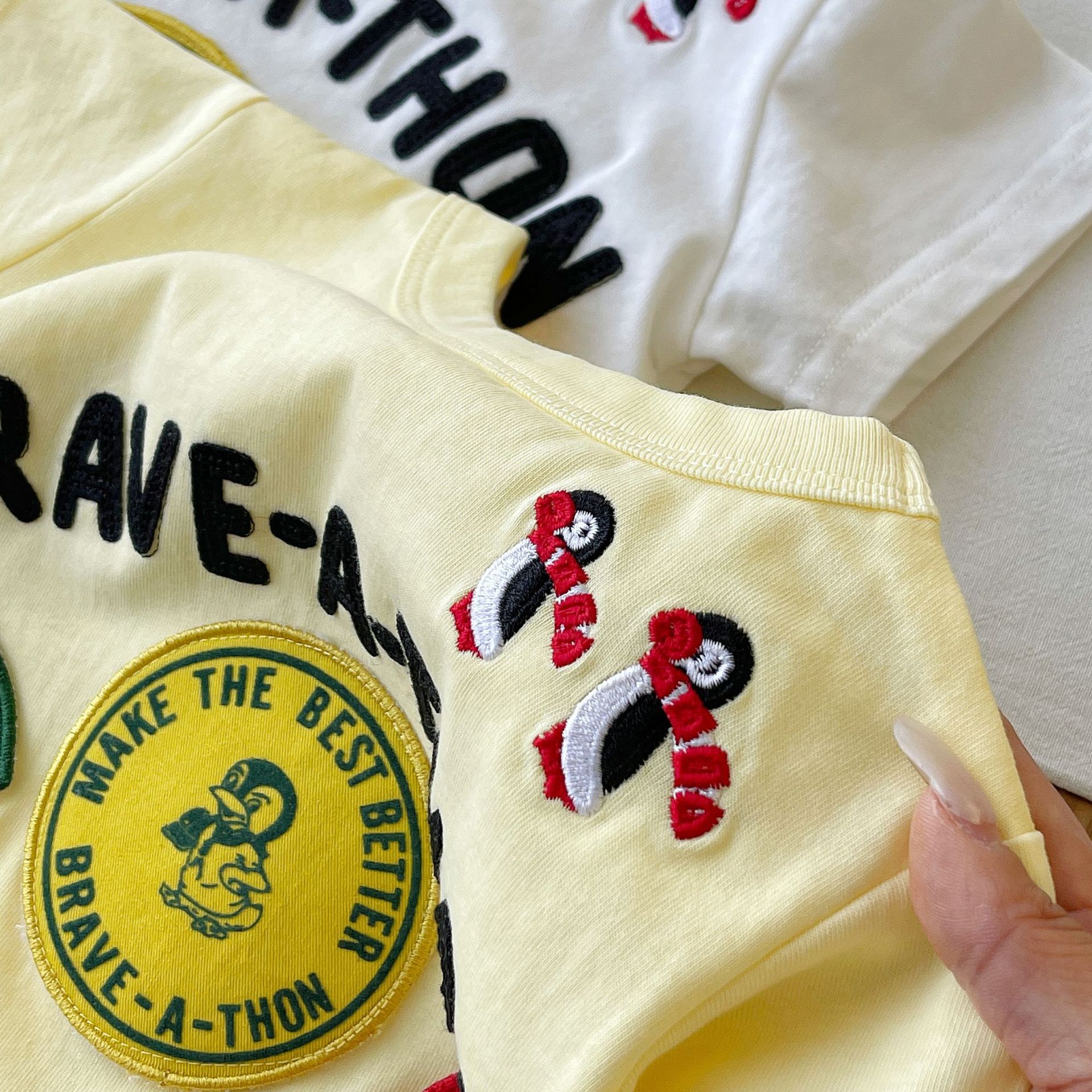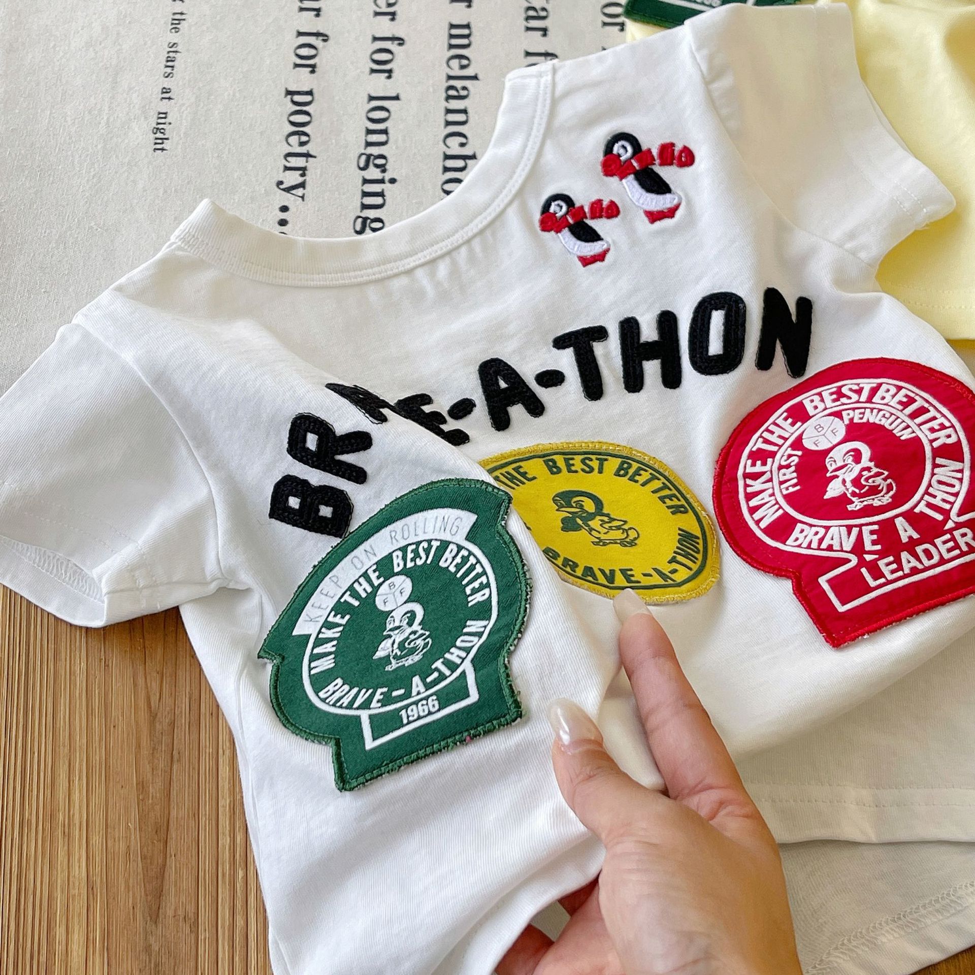 [재고 있음] 일본 아동복 중고 DD 아동 여름 티셔츠 배지 코튼 반팔