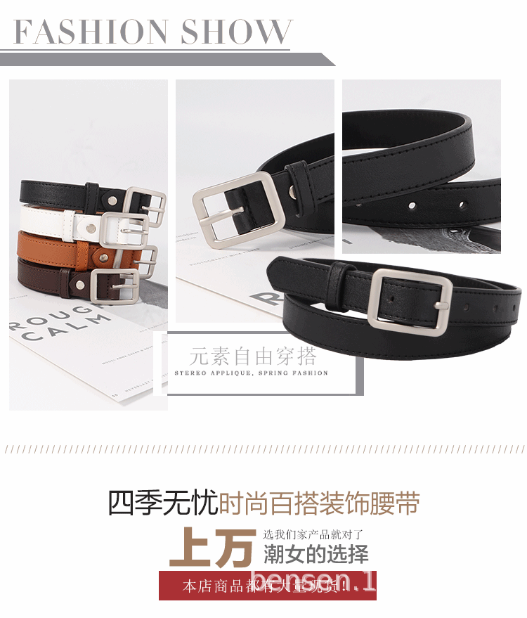 여성용 사각 버클 벨트, 심플하고 다재다능한 한국 시크 학생 패션 트렌드 맞춤형 장식 바지 벨트 여성용 벨트스토어 가기