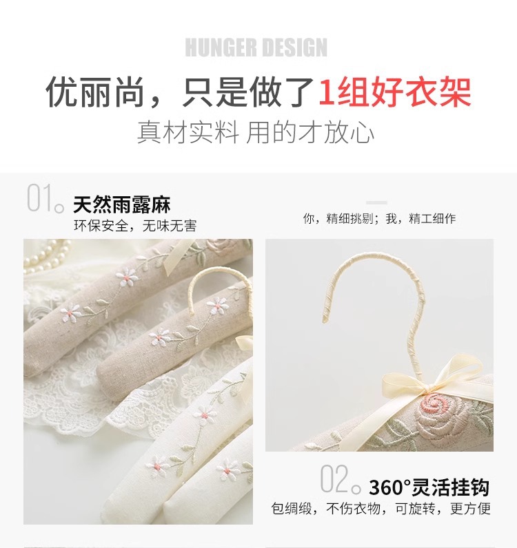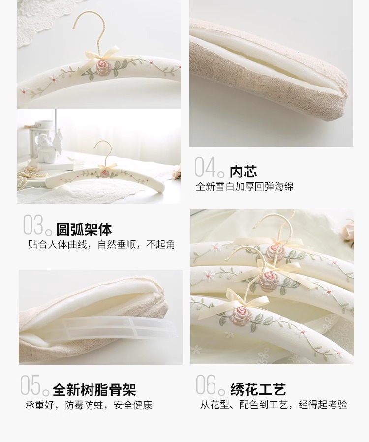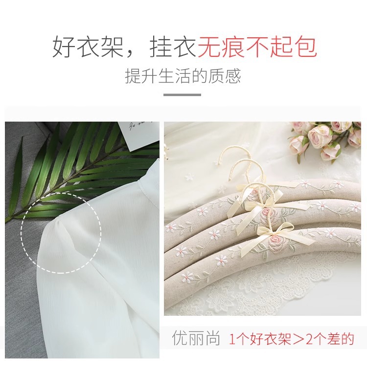 유럽식 천으로 덮인 옷걸이, 가정용 미끄럼 방지 및 흔적 없는 옷걸이, 웨딩 드레스 자수 스폰지, 옷가게 옷걸이, 옷걸이