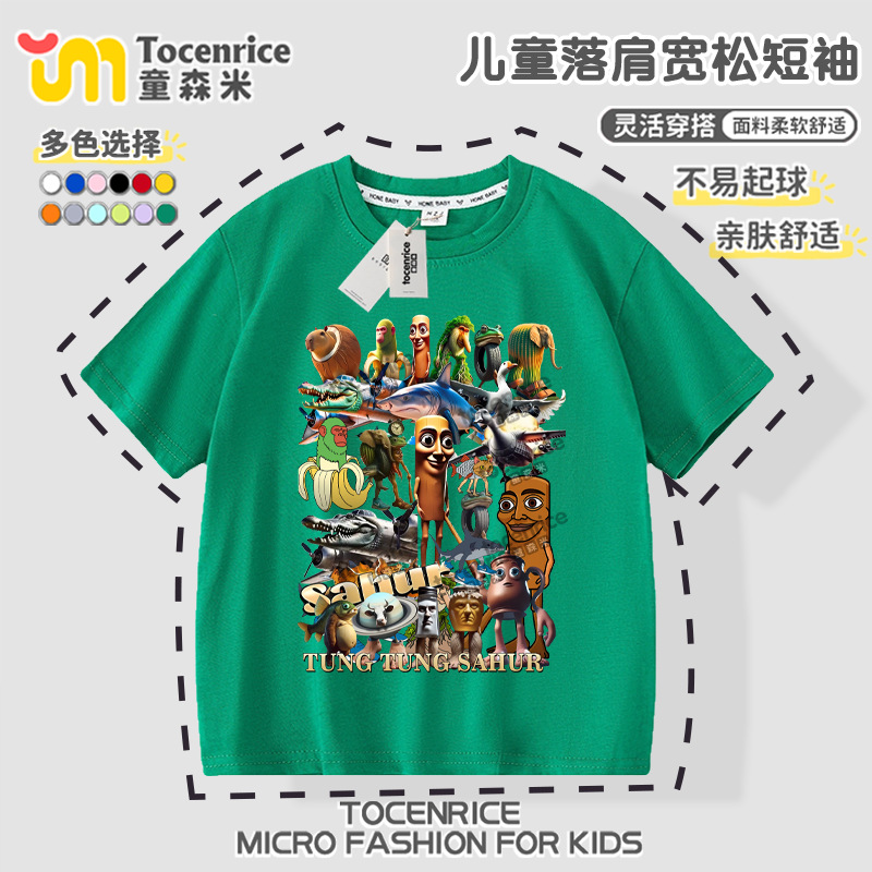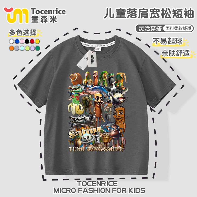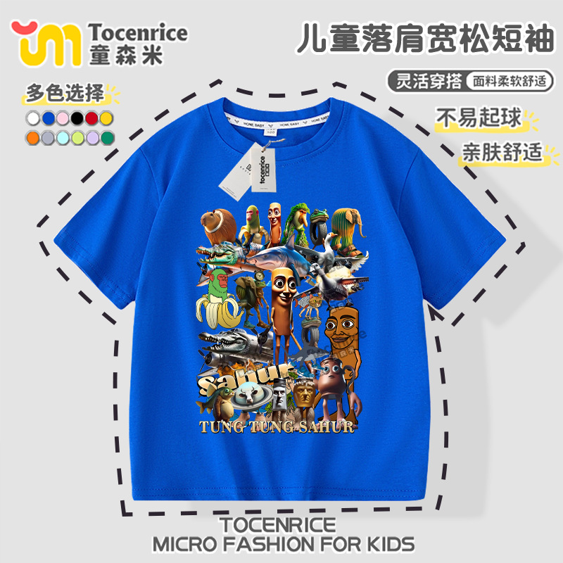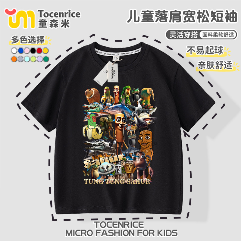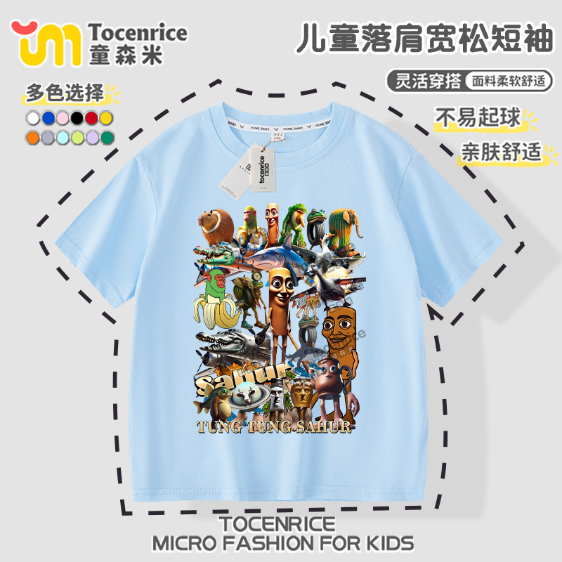 Tungtungsahur 티셔츠 아동용 반팔 의류 tungtungsahur 탑 순면 여름 소년 반팔스토어 가기