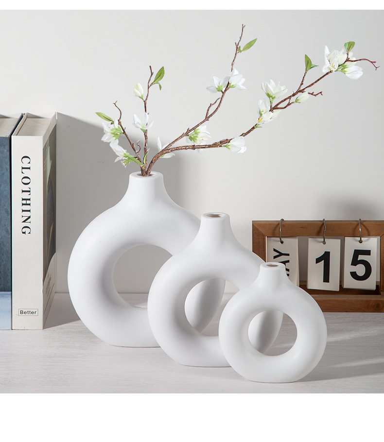 국경 간 핫 서클 꽃병 고급 장식품 창조적 인 독특한 복도 장식 중국 스타일 플라스틱 꽃병 2 반 바느질
