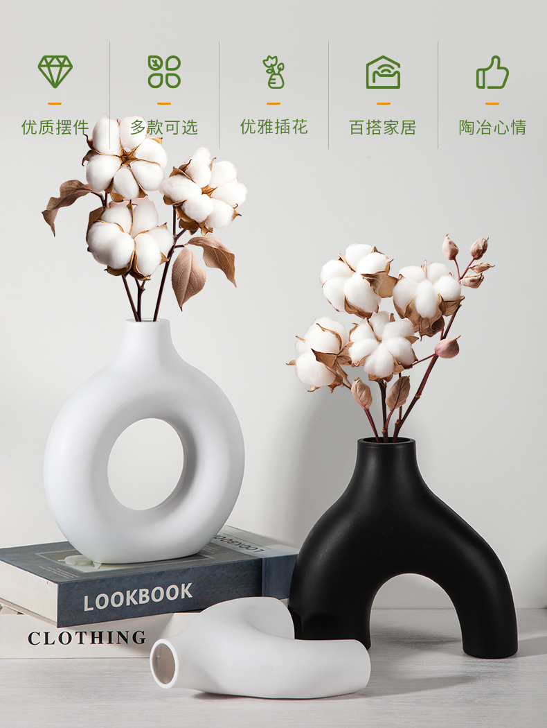 국경 간 핫 서클 꽃병 고급 장식품 창조적 인 독특한 복도 장식 중국 스타일 플라스틱 꽃병 2 반 바느질스토어 가기