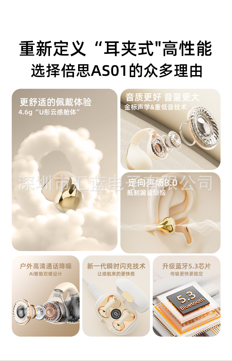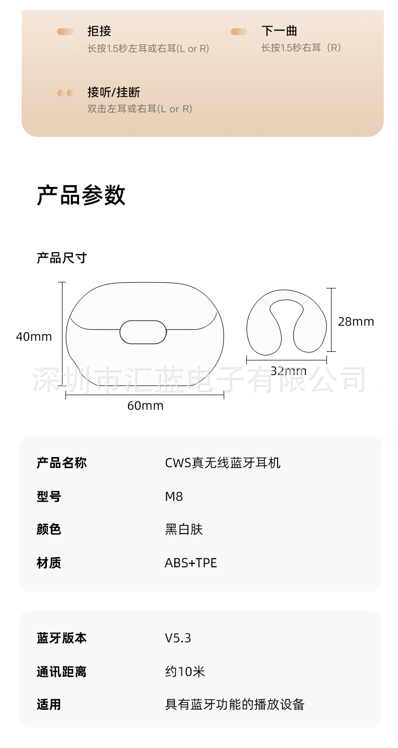 M8 국경 간 인기 OWS 이어 클립 블루투스 헤드셋 디지털 디스플레이 5.3 매직 사운드에 적합한 개인 모델 스포츠 비인이어 헤드셋