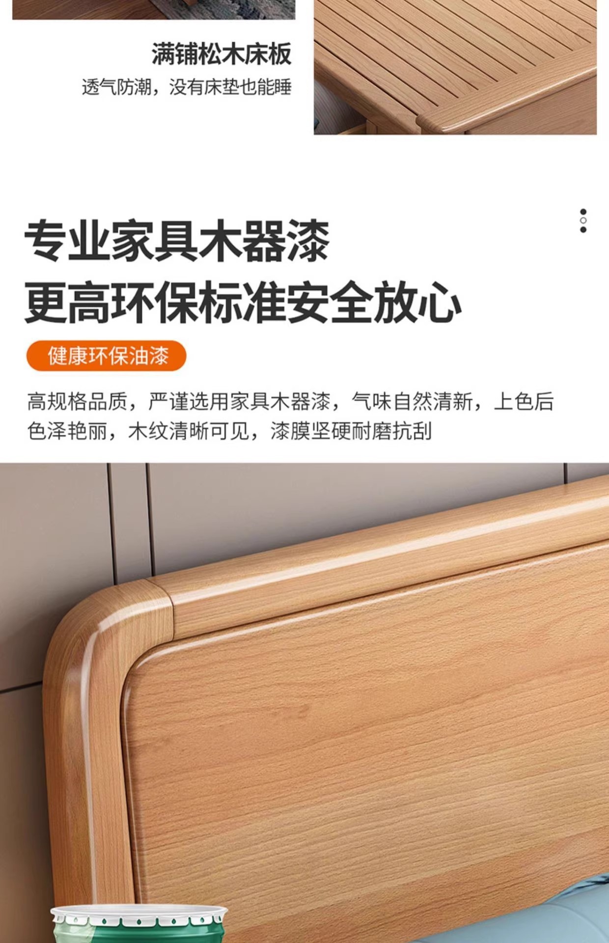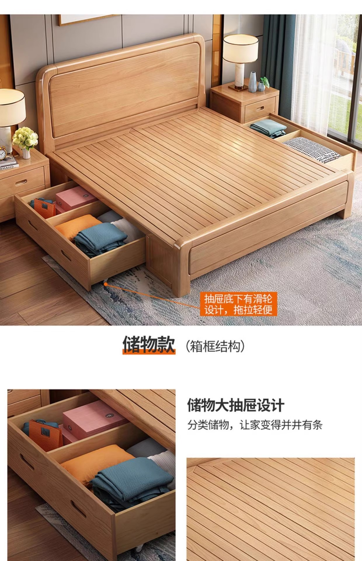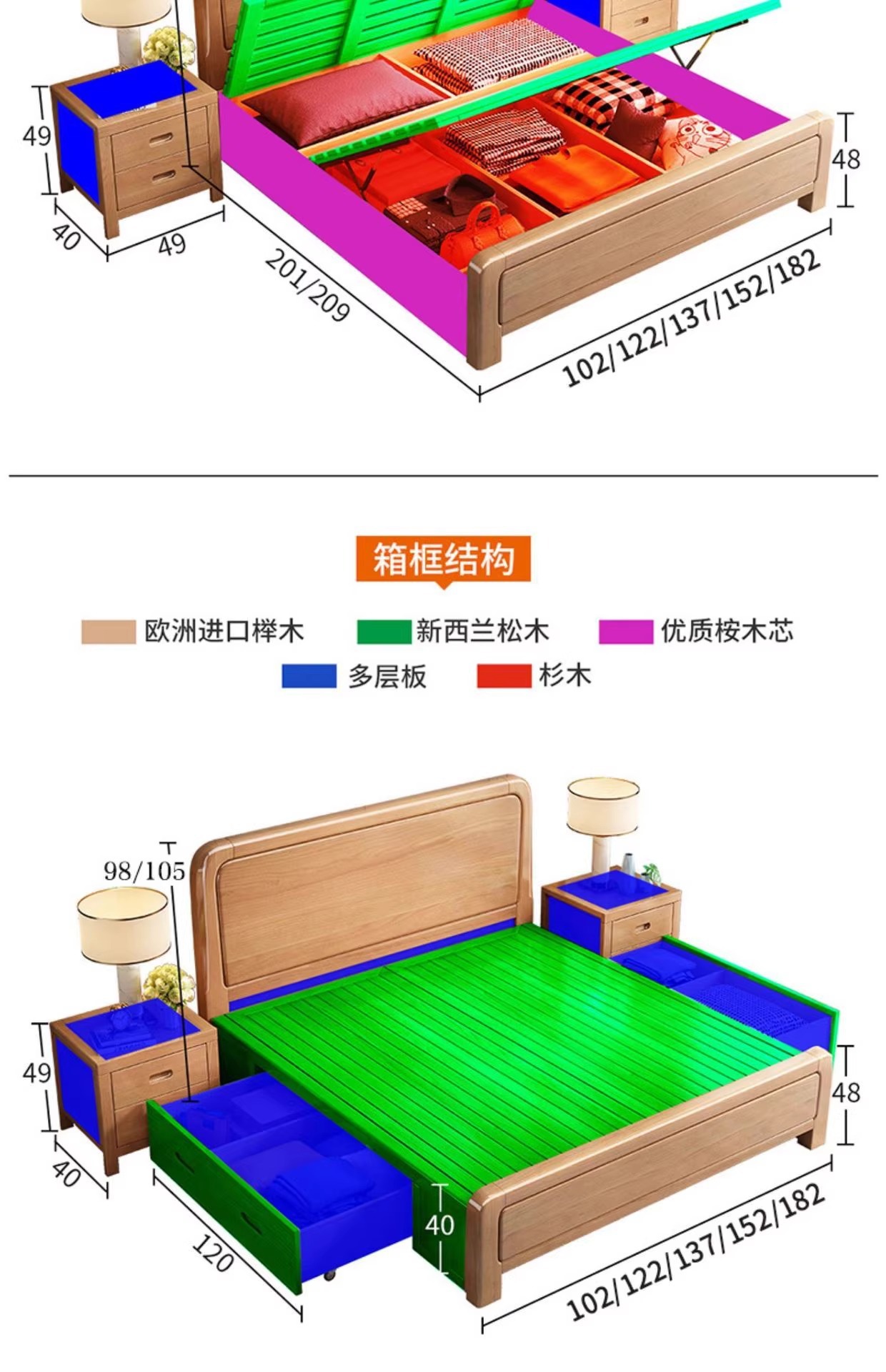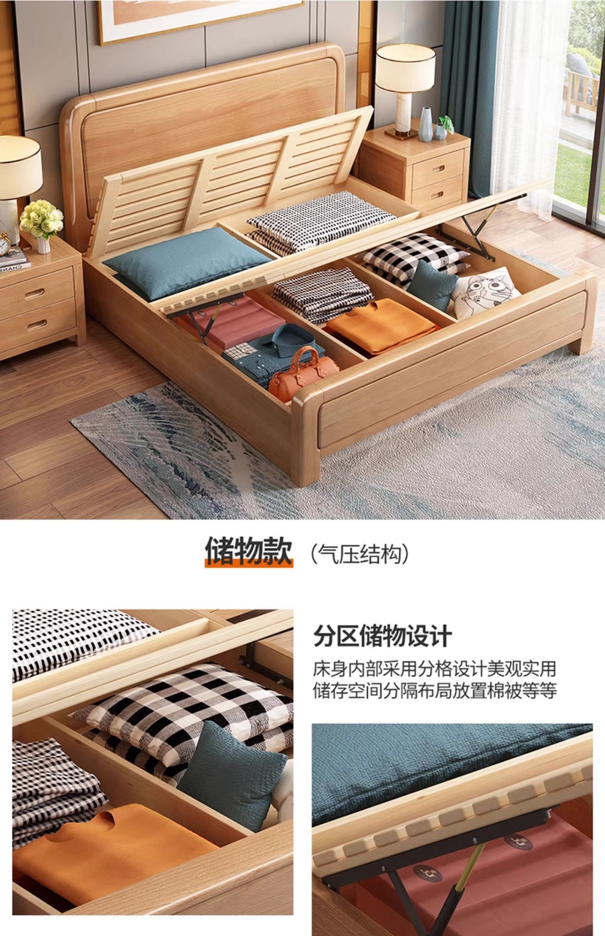 새로운 1.2m 로그 컬러 단단한 나무 침대 현대 미니멀리스트 너도밤 나무 침대 홈 1.8m 스토리지 공기 압력 높은 상자 웨딩 침대스토어 가기