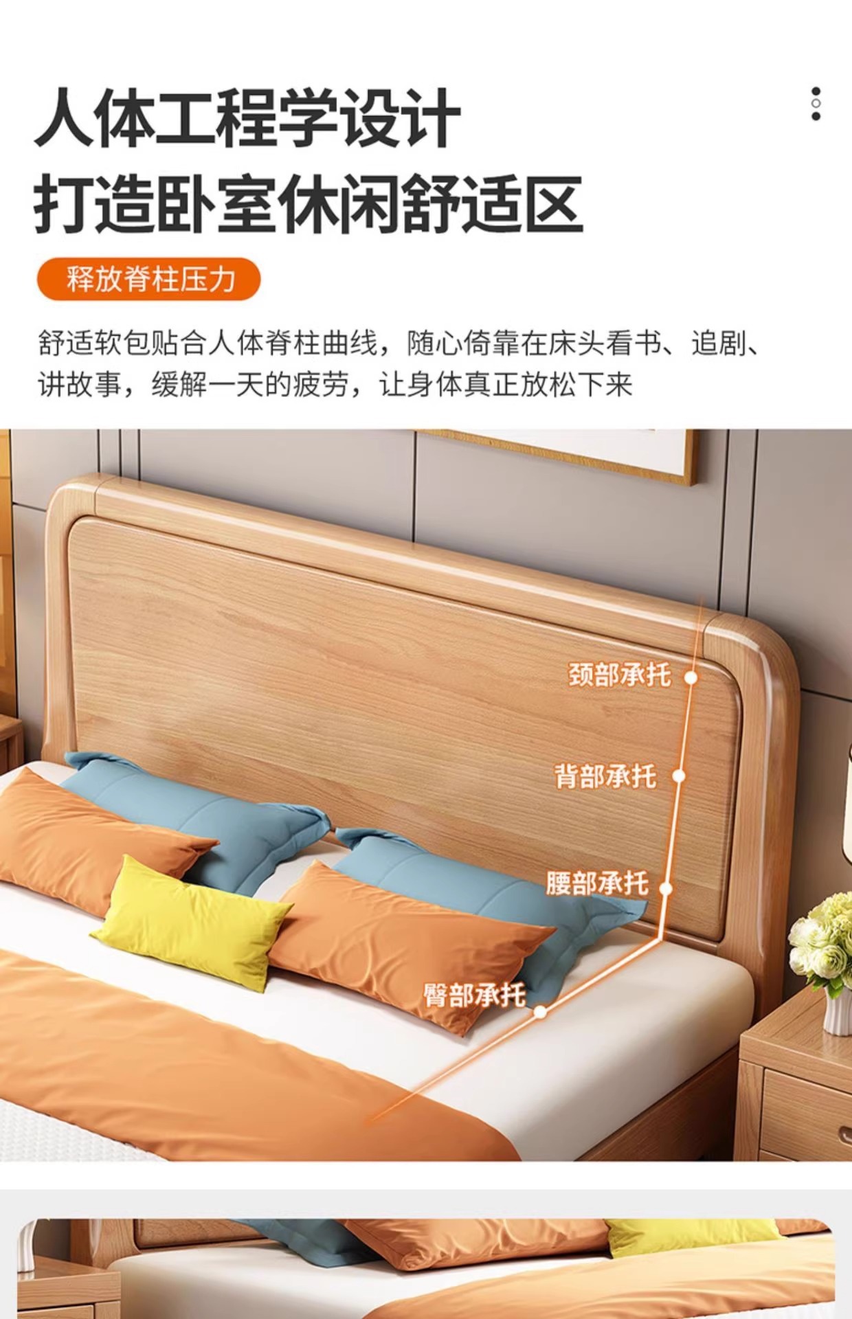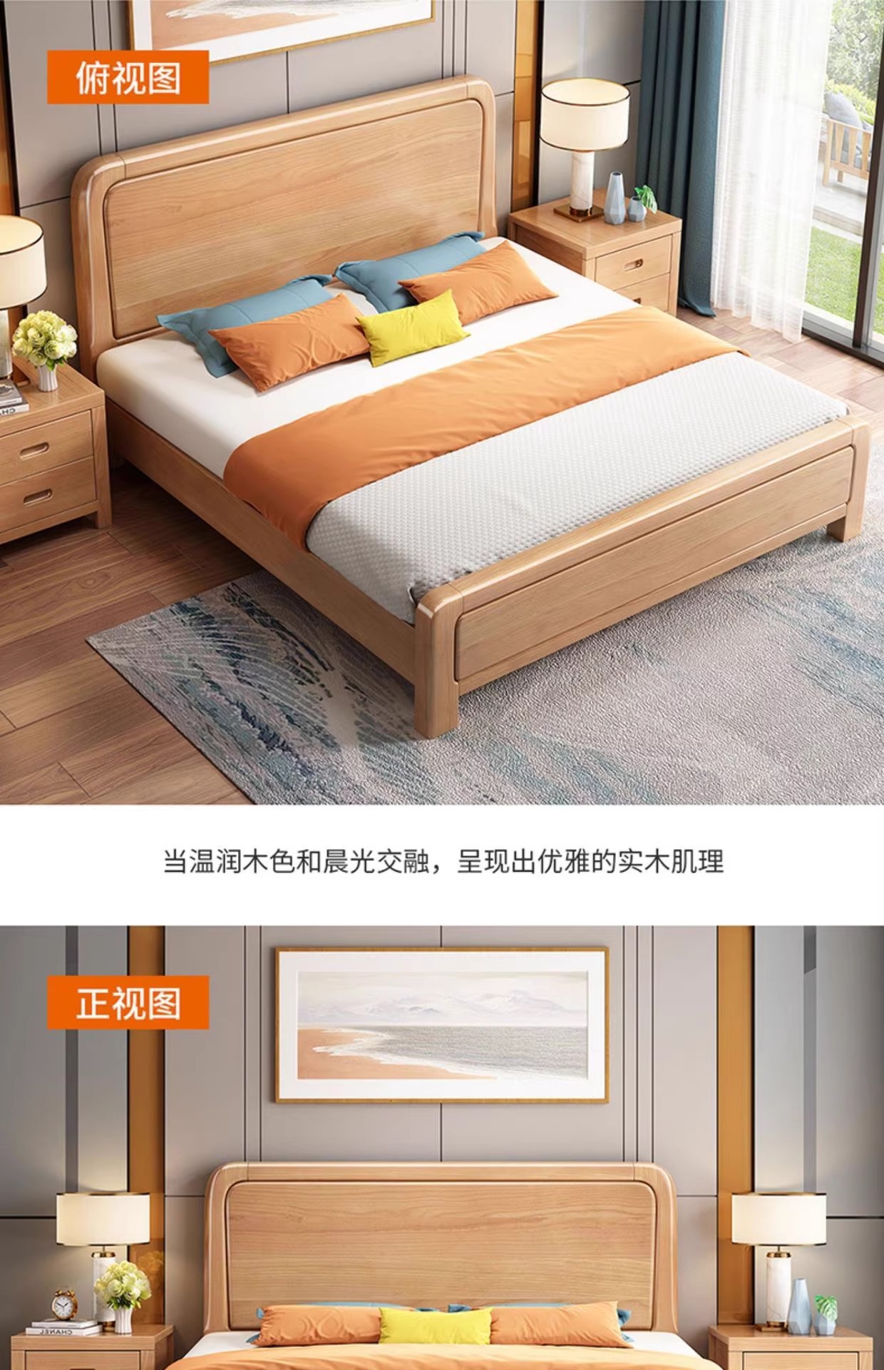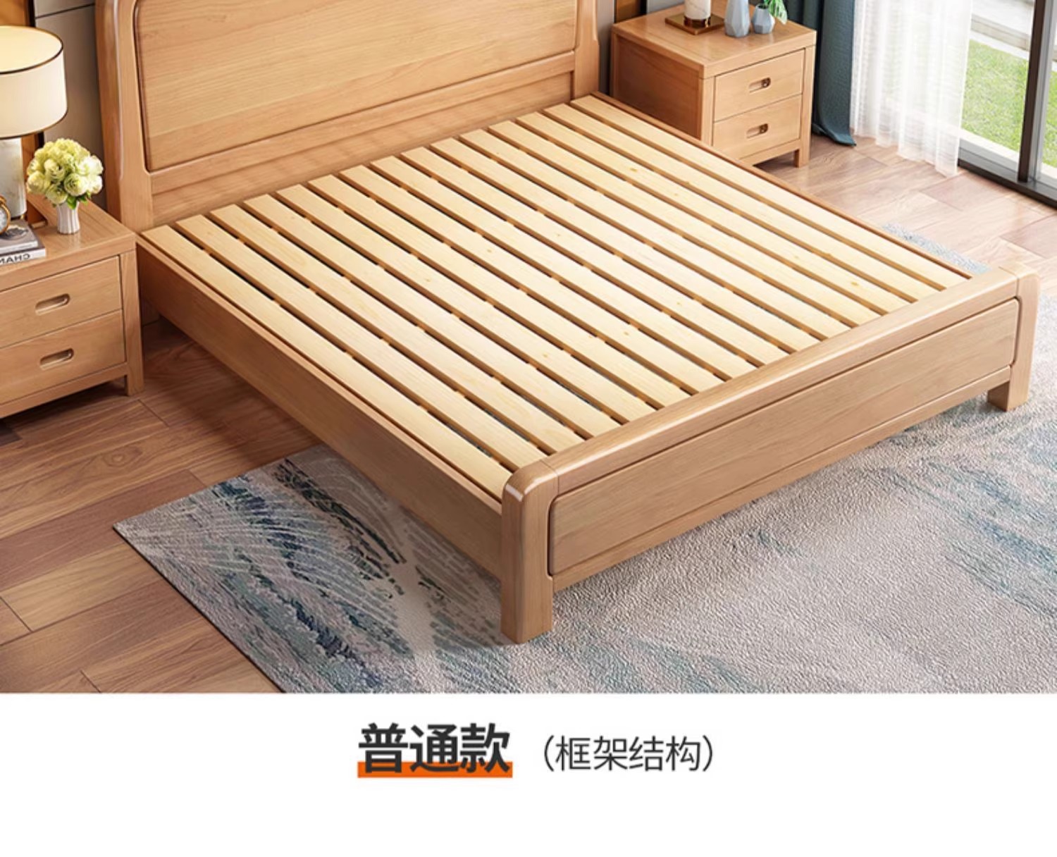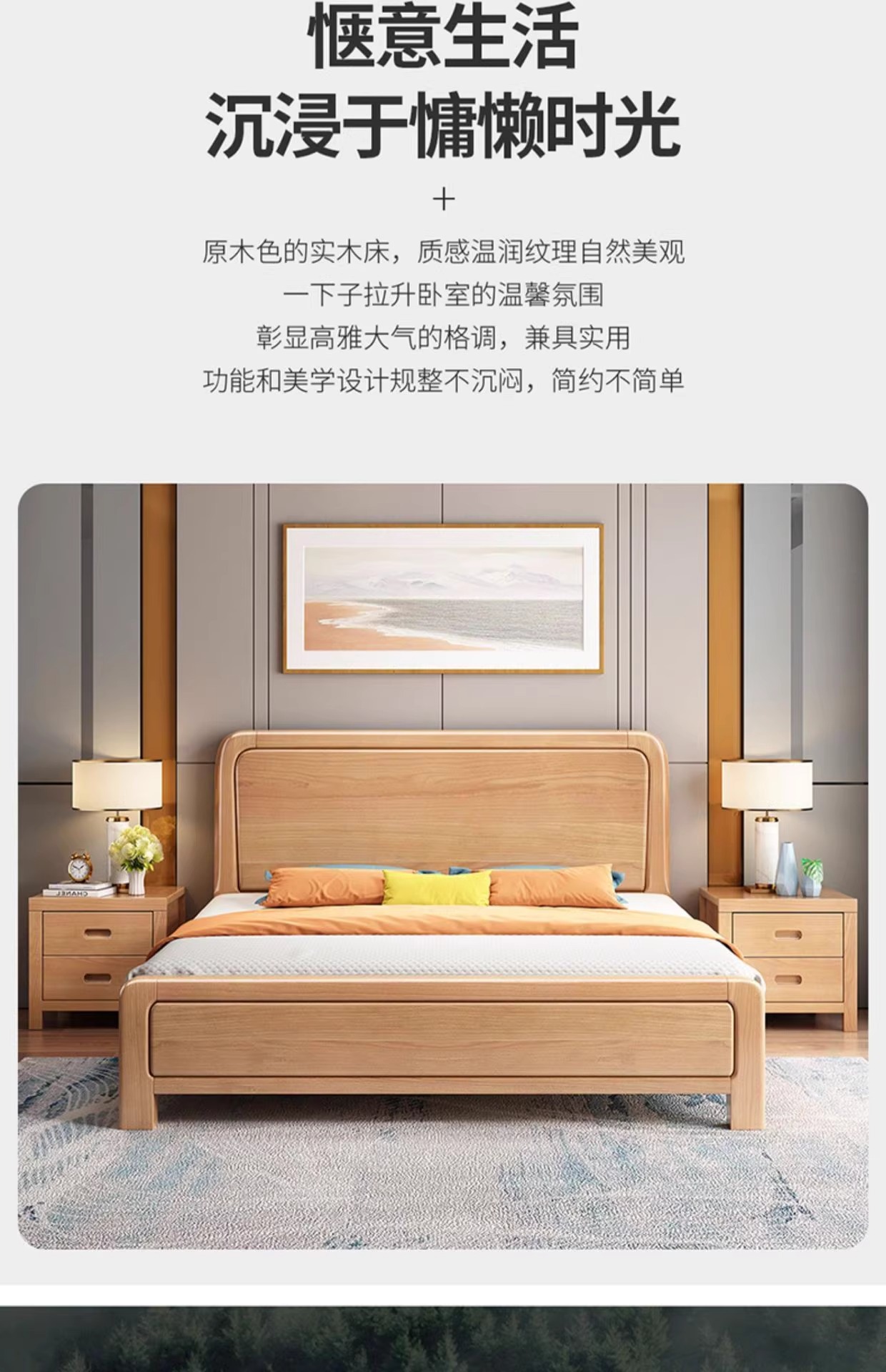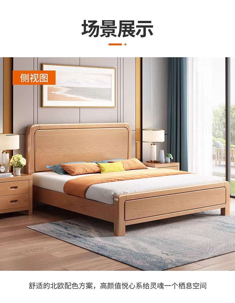 새로운 1.2m 로그 컬러 단단한 나무 침대 현대 미니멀리스트 너도밤 나무 침대 홈 1.8m 스토리지 공기 압력 높은 상자 웨딩 침대스토어 가기