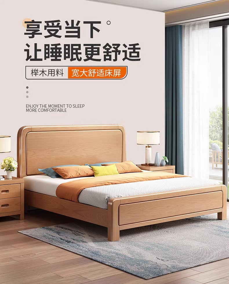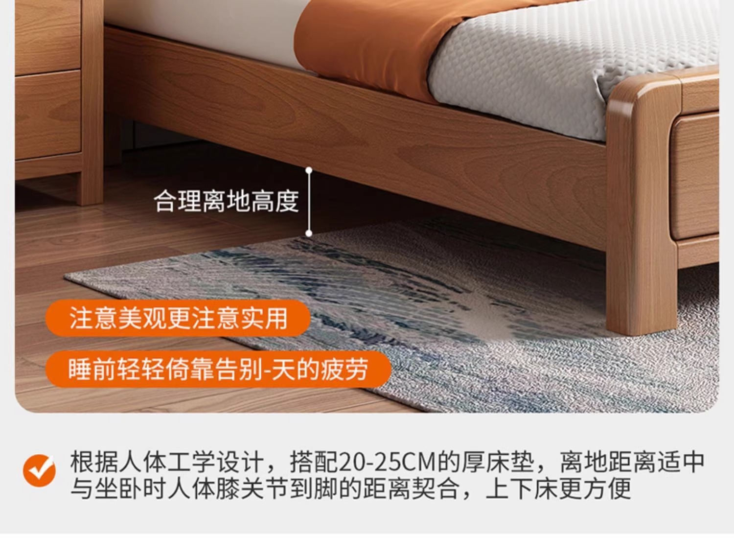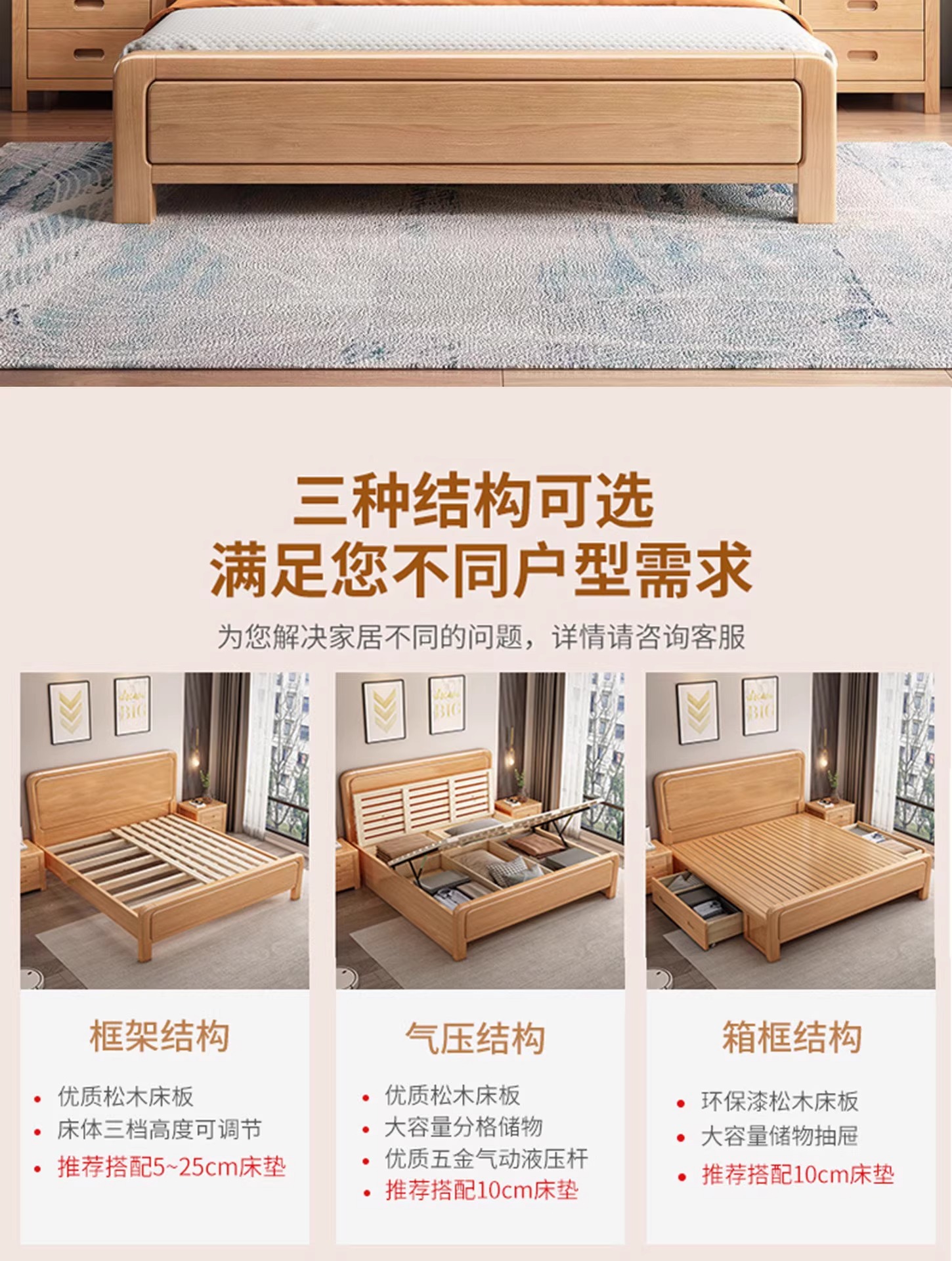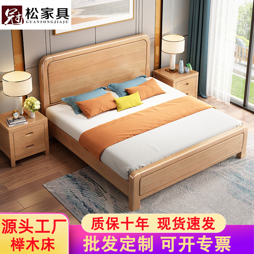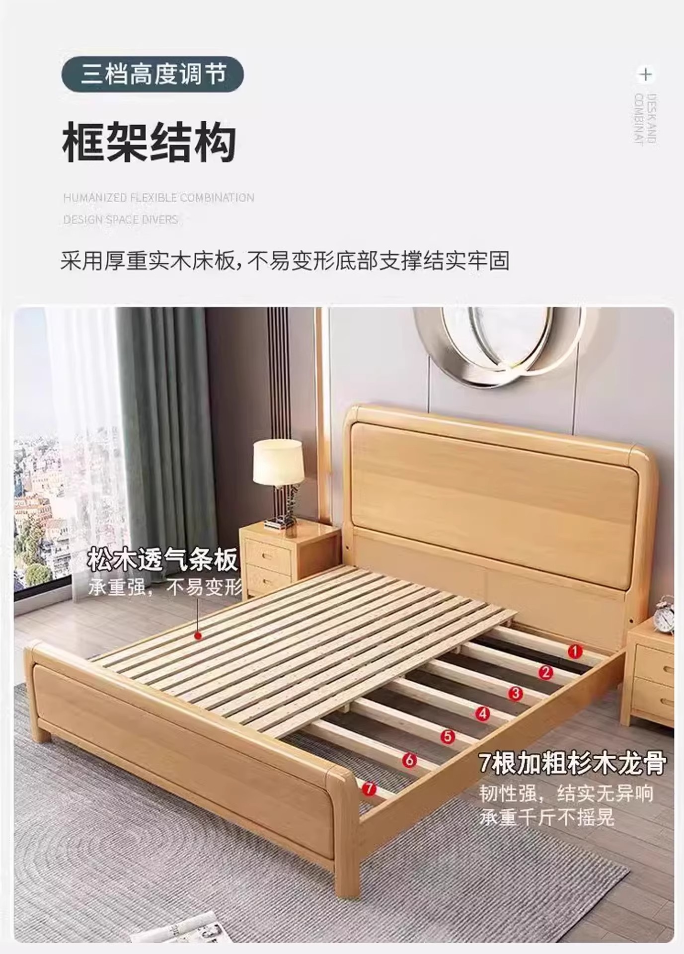 새로운 1.2m 로그 컬러 단단한 나무 침대 현대 미니멀리스트 너도밤 나무 침대 홈 1.8m 스토리지 공기 압력 높은 상자 웨딩 침대스토어 가기