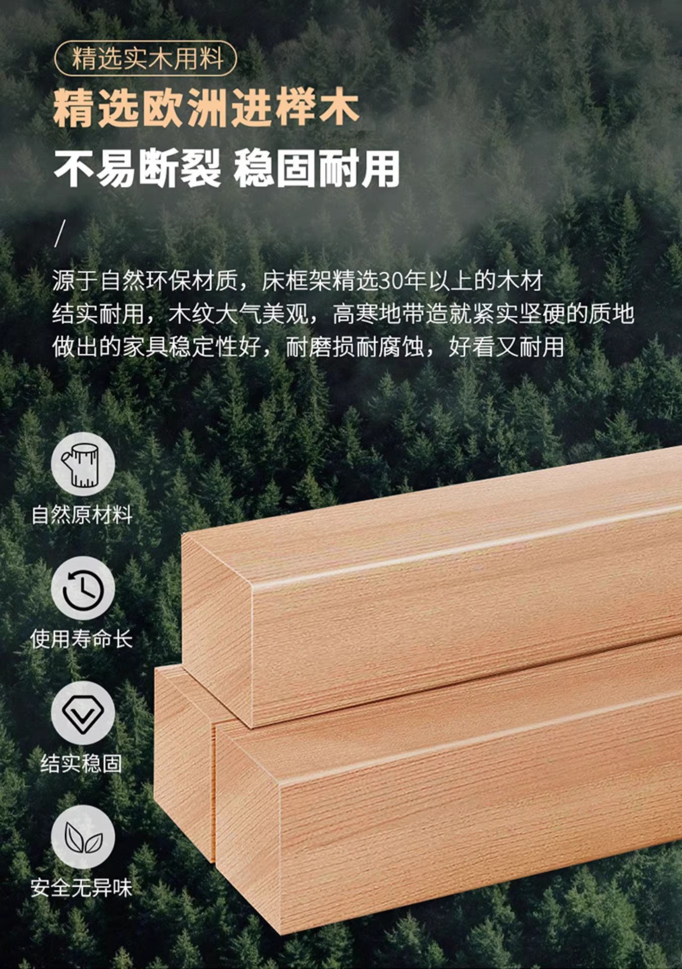 • 너도밤나무 침대 + 침대 옆 테이블 1개 + 라텍스 매트리스