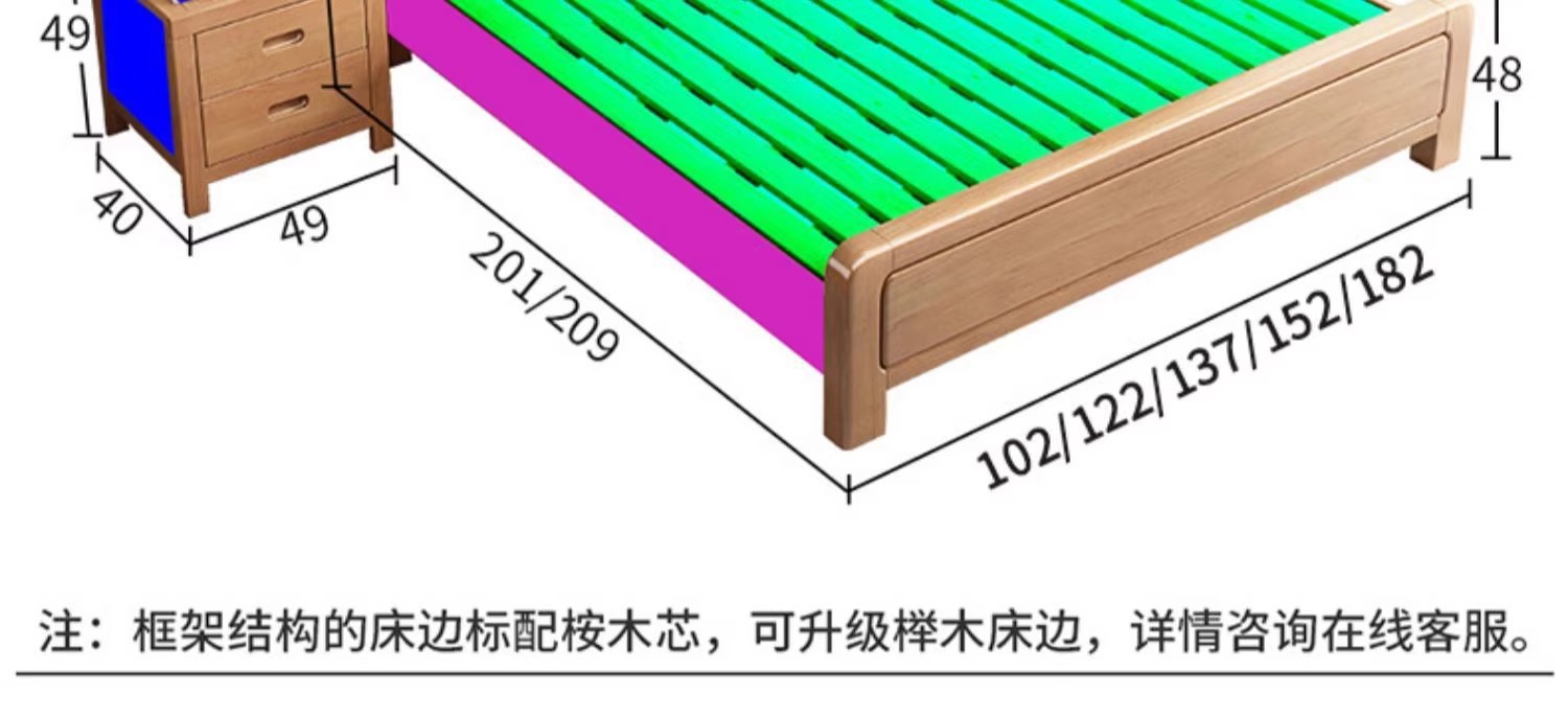 • 너도밤나무 침대 + 침대 옆 테이블 1개