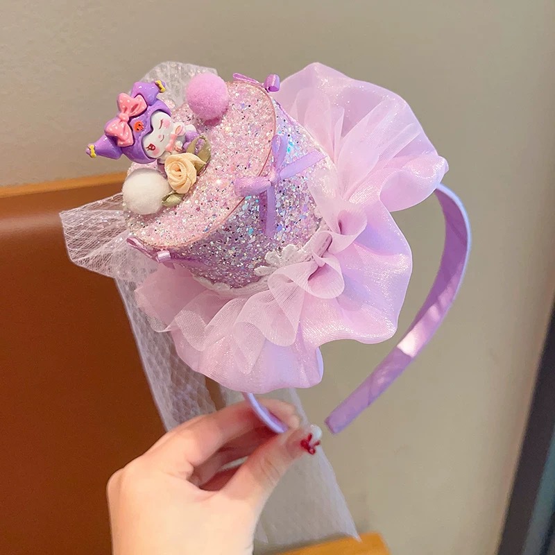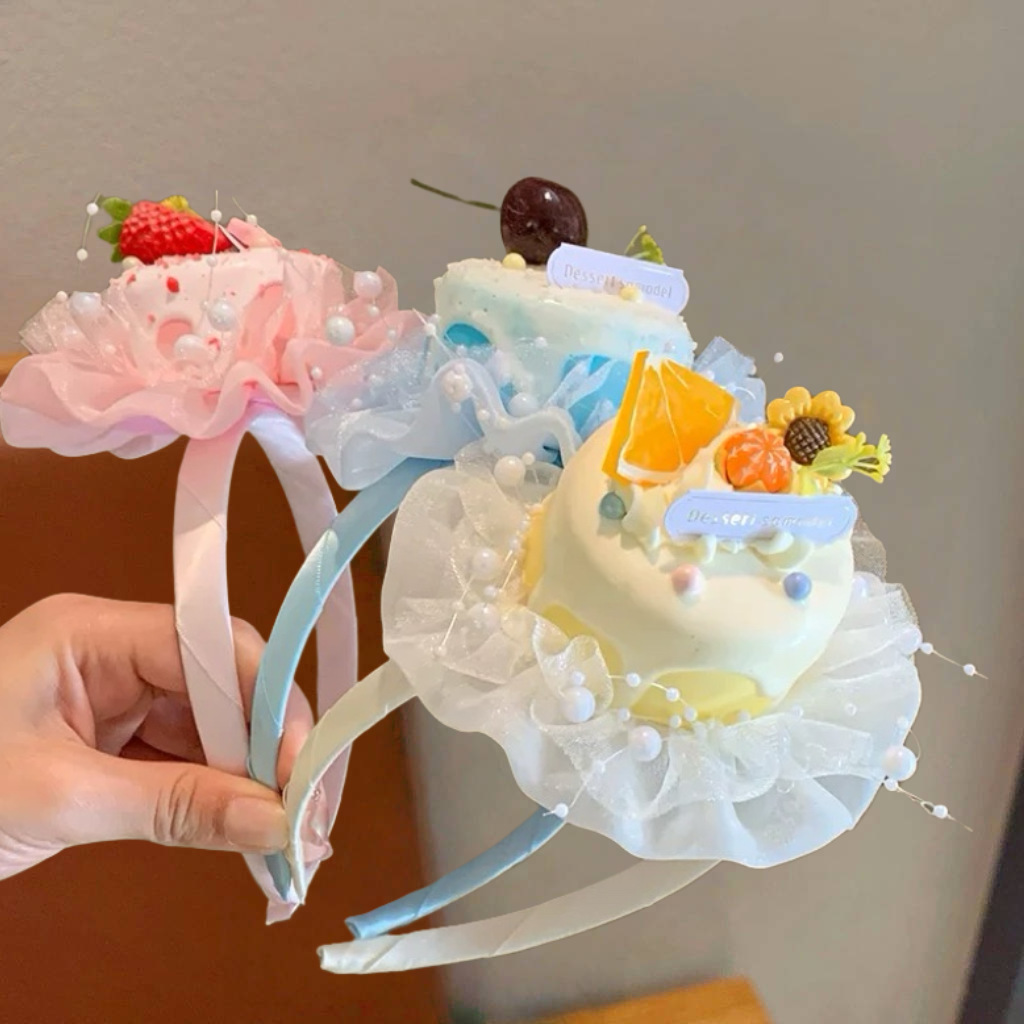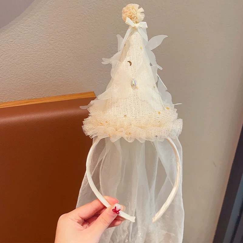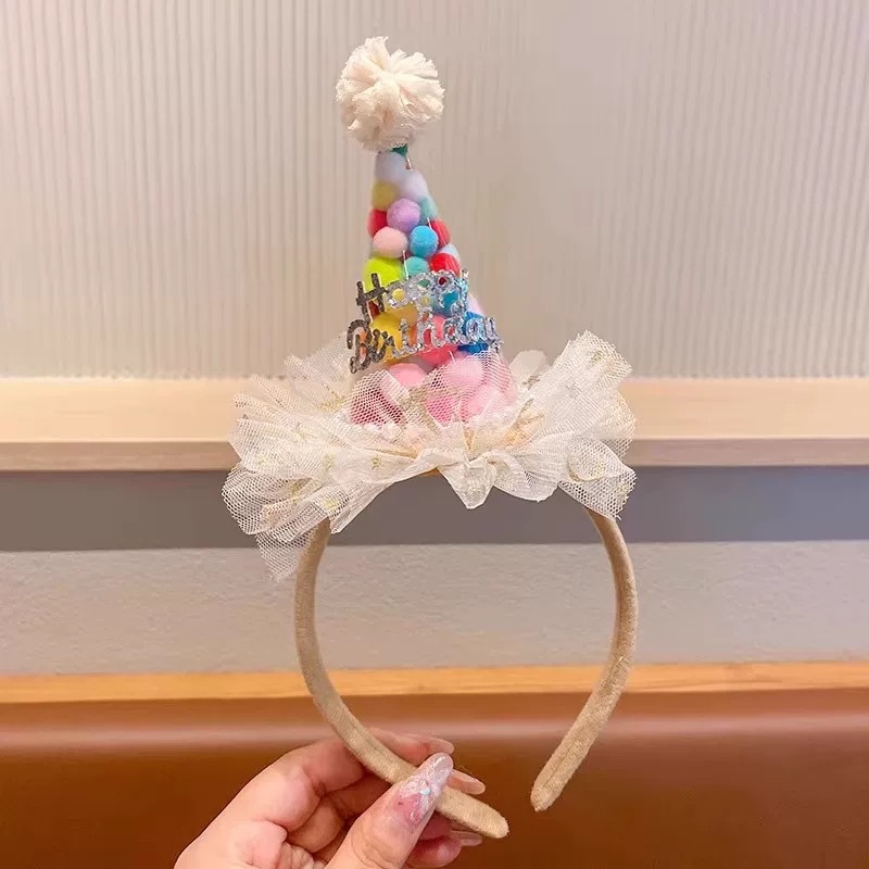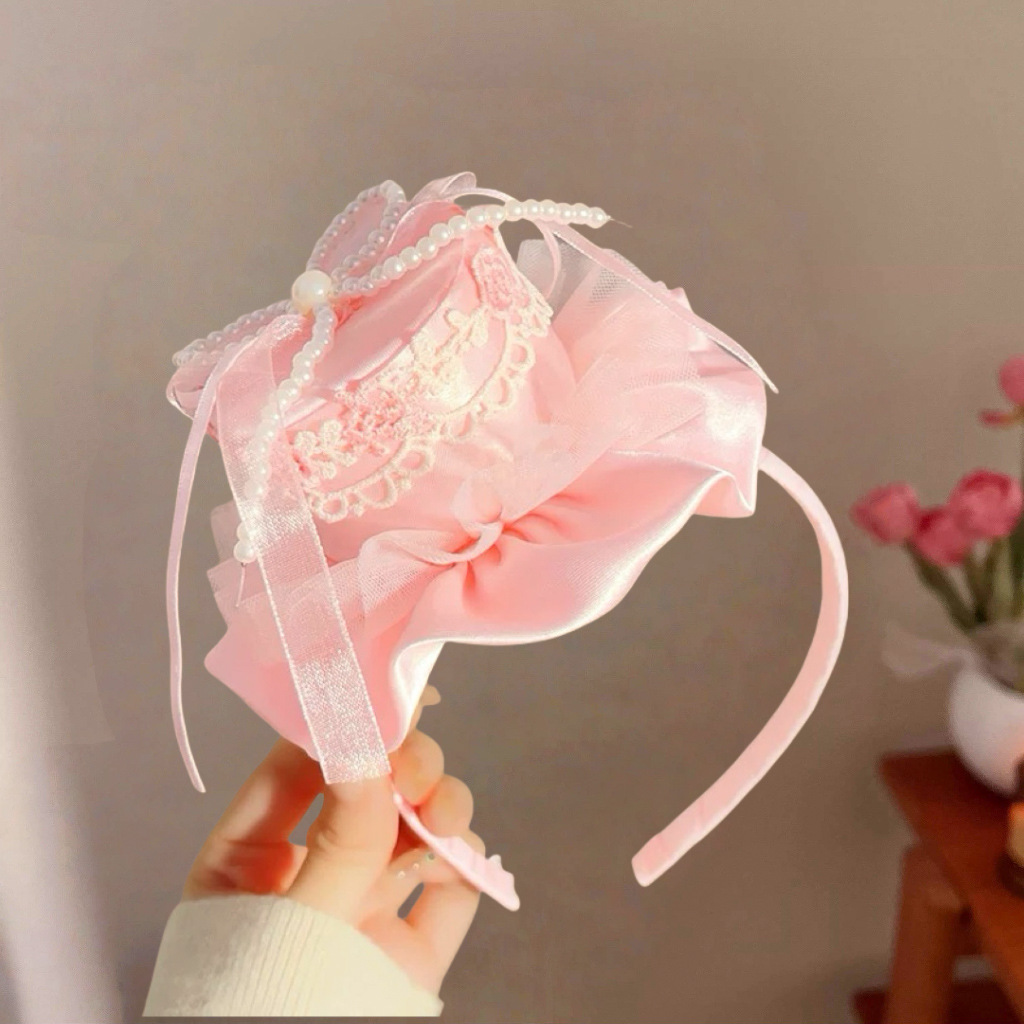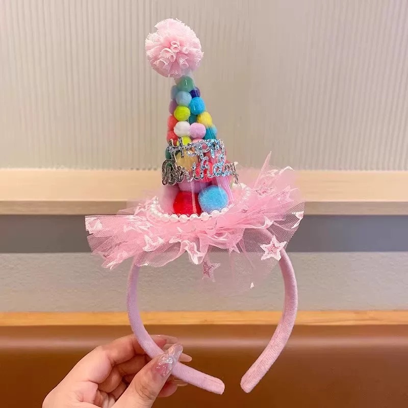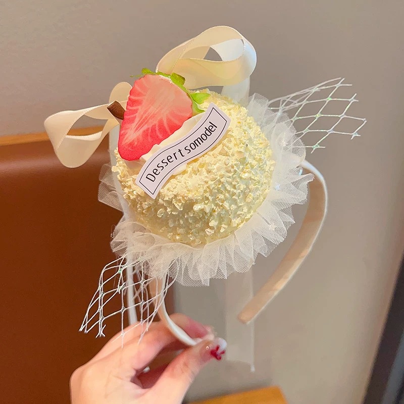 어린이 생일 케이크 글로우 머리띠 공주 진주 크라운 모자 머리띠 작은 소녀 귀여운 메쉬 헤어 액세서리