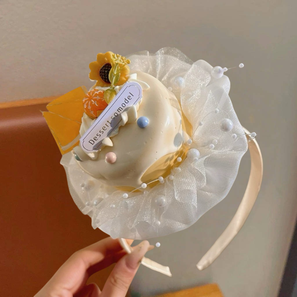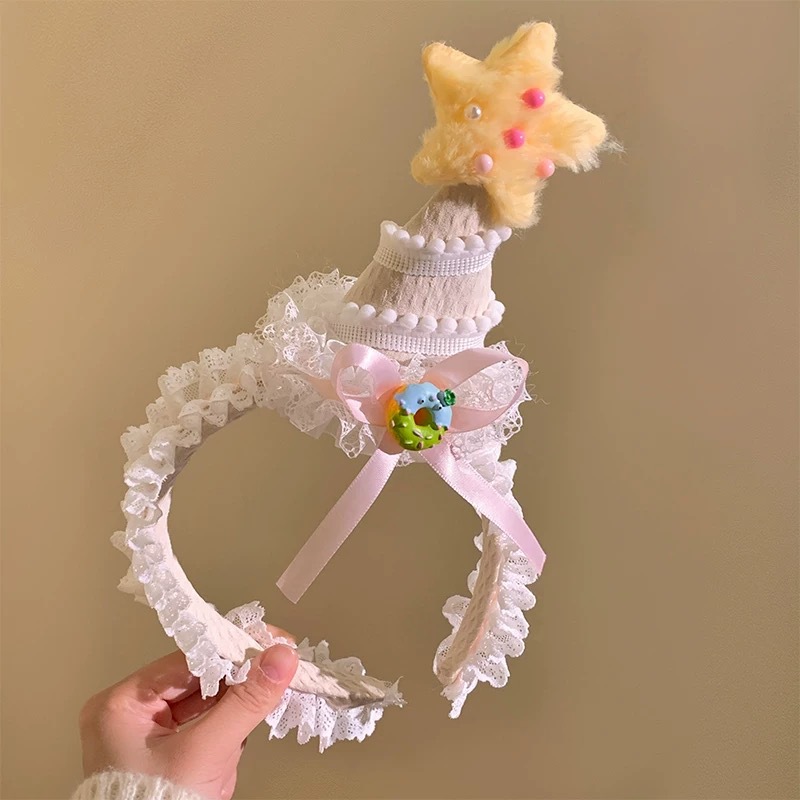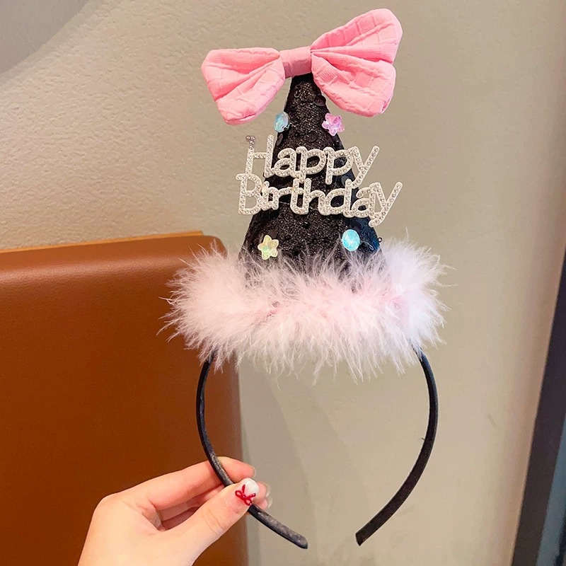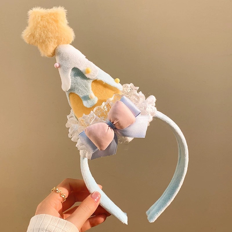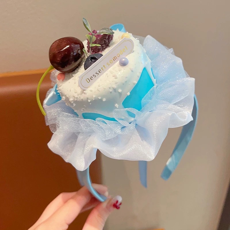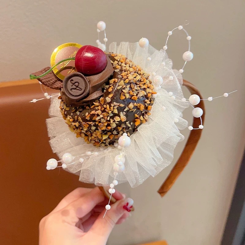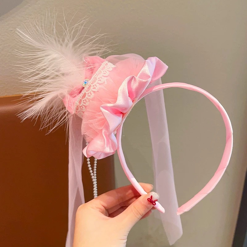 어린이 생일 케이크 글로우 머리띠 공주 진주 크라운 모자 머리띠 작은 소녀 귀여운 메쉬 헤어 액세서리