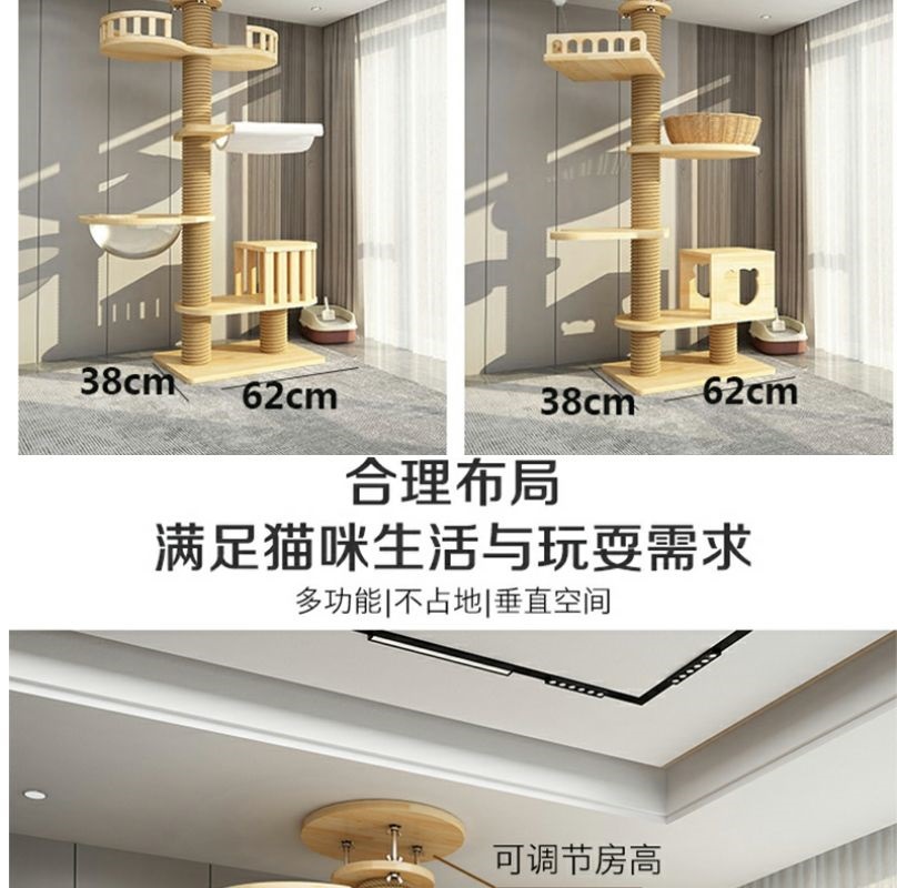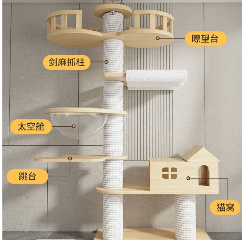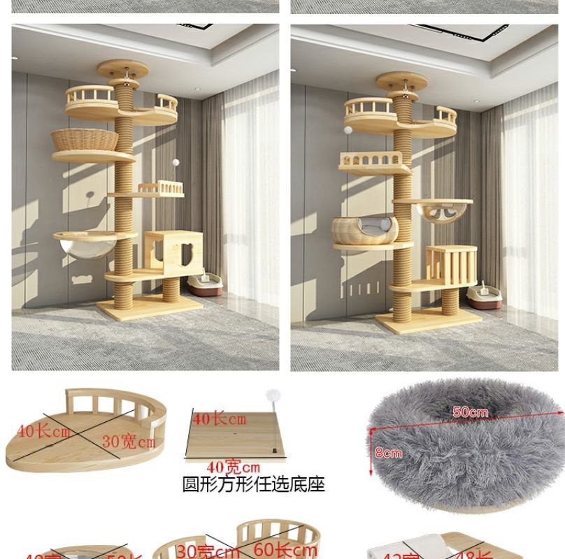 고양이 클라이밍 프레임, 종이 튜브, 원목, 다층, 공간 절약형, 펀칭 없음, 고양이 둥지, 나무, 일체형, 대형 프레임스토어 가기