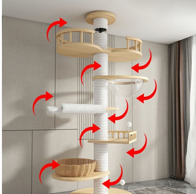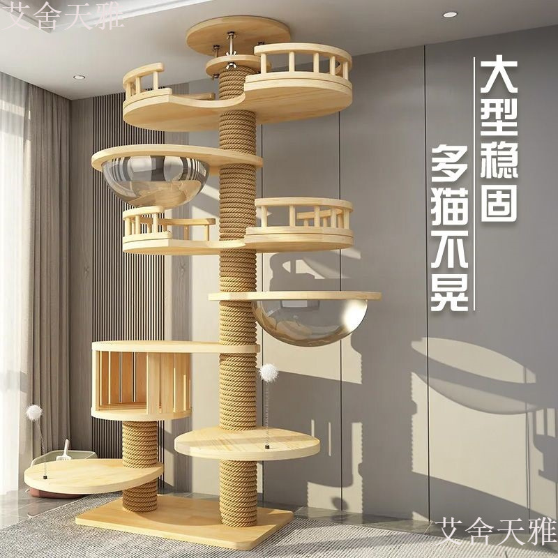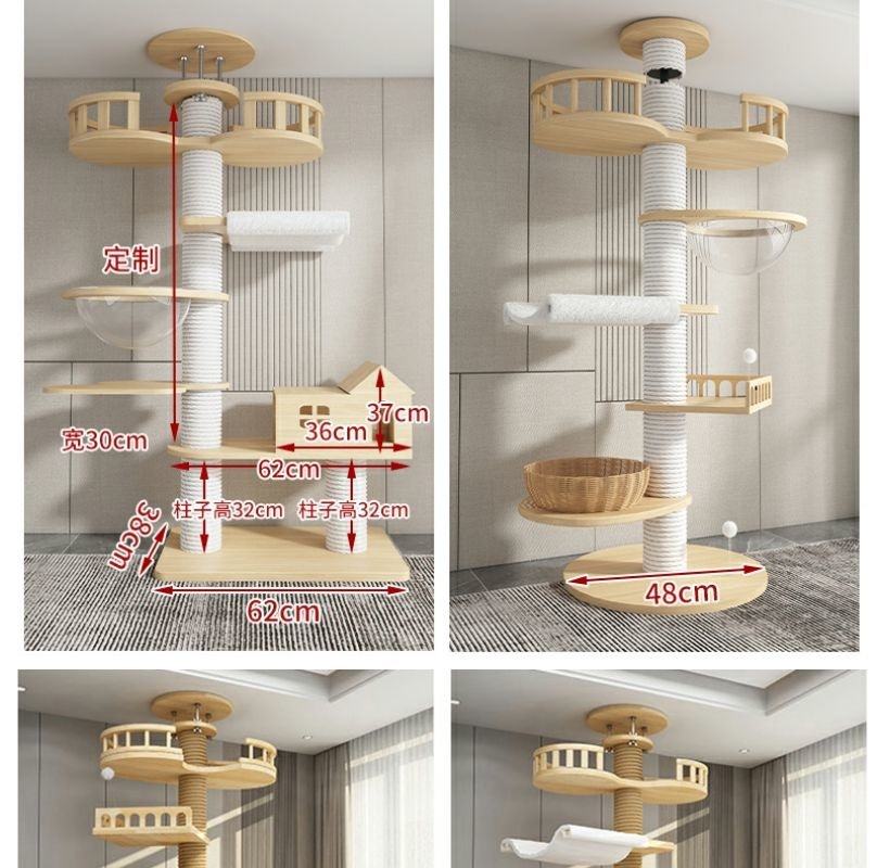 고양이 클라이밍 프레임, 종이 튜브, 원목, 다층, 공간 절약형, 펀칭 없음, 고양이 둥지, 나무, 일체형, 대형 프레임