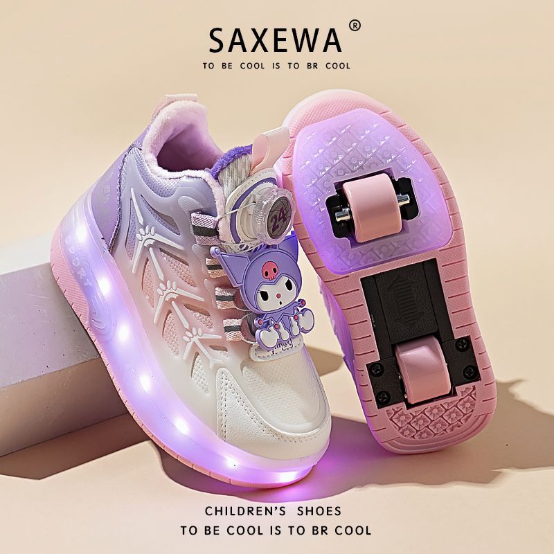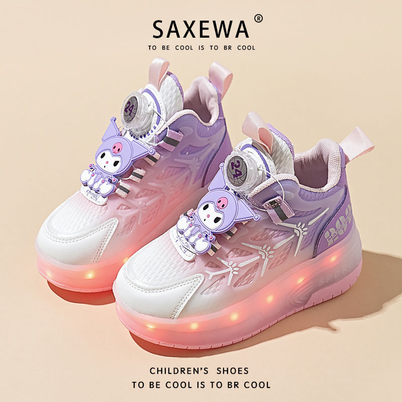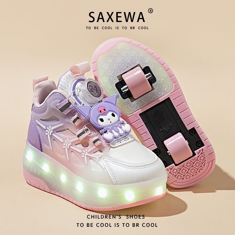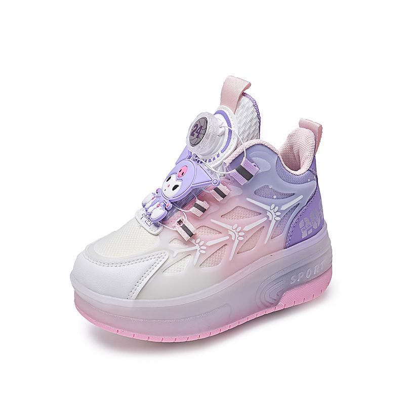 여아용 이륜 스케이트 신발, 봄 신상 아동용 신발, 메쉬 소재, 발광 회전 버튼 스케이트, 접이식 휠 신발