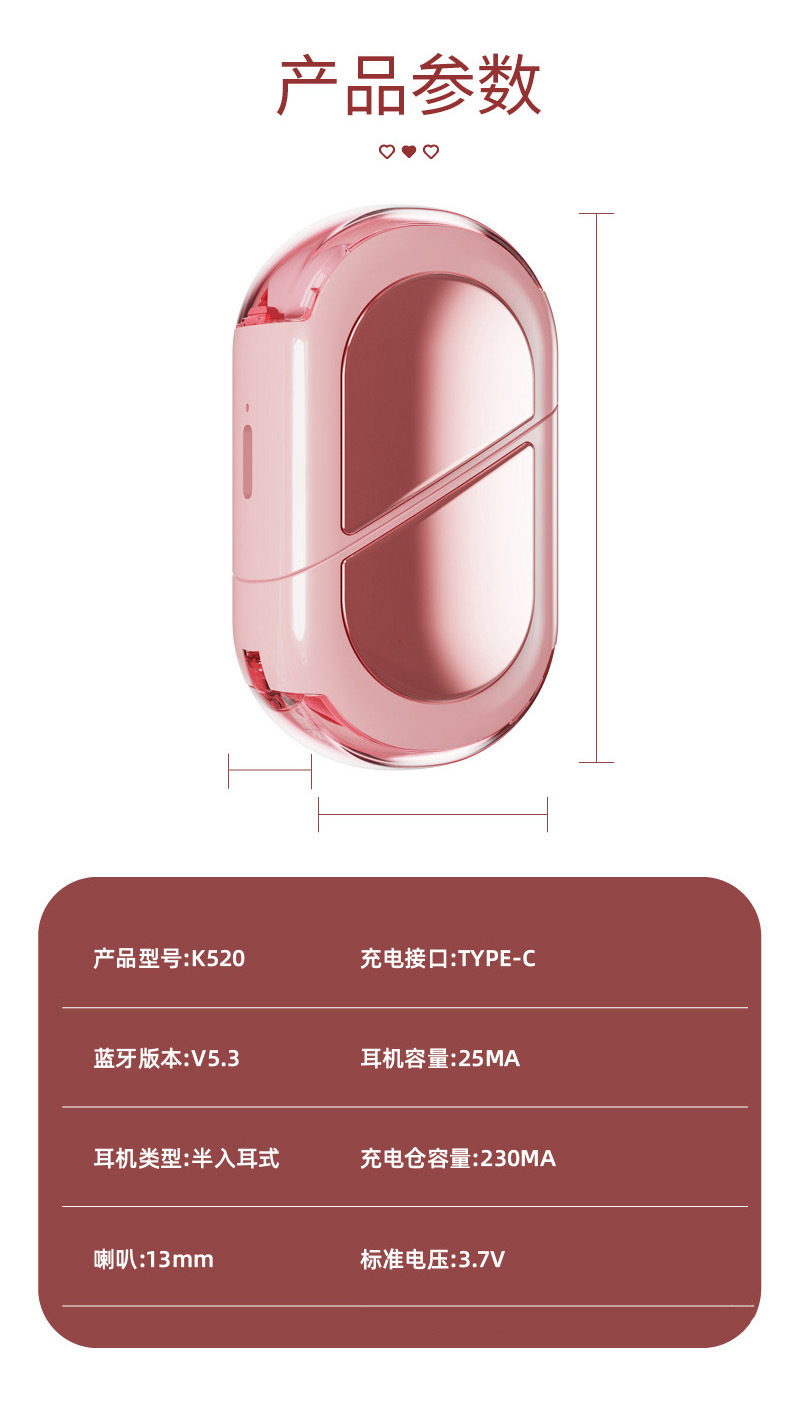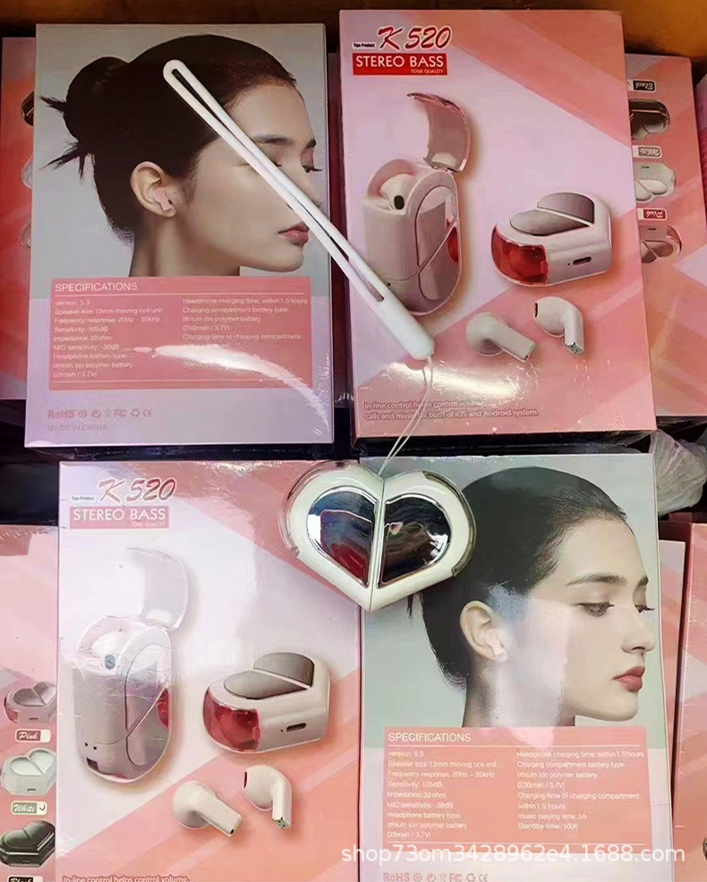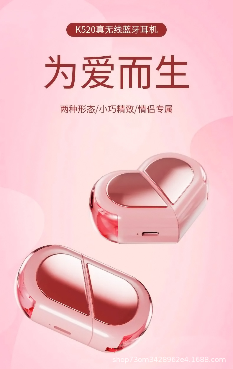 국경 대외 무역 인기 판매 K520 하트 모양의 사랑 블루투스 헤드셋 무선 소녀 모델 소음 감소 새로운 개인 모델스토어 가기