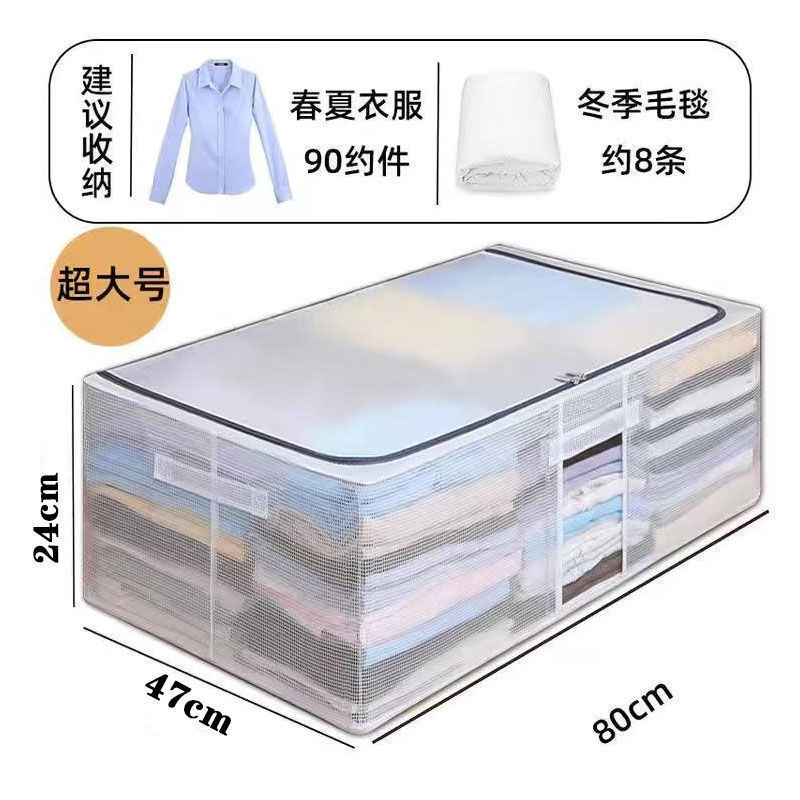 베이너 상자 투명한 대용량 PVC 클립 그물 침대 바닥 직물 옷 저장 캐비닛 스틸 프레임 접이식 저장 상자