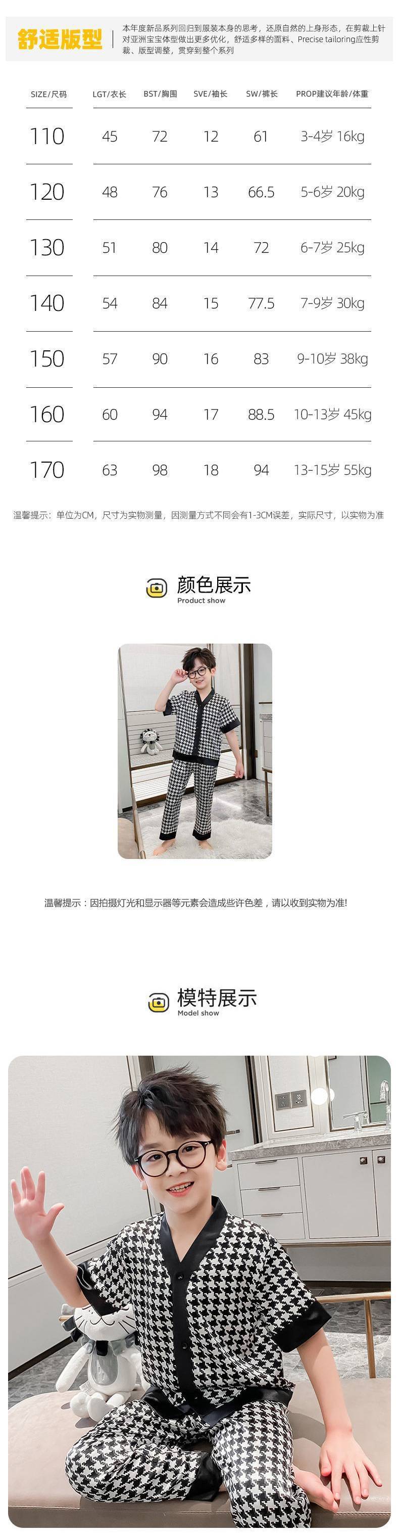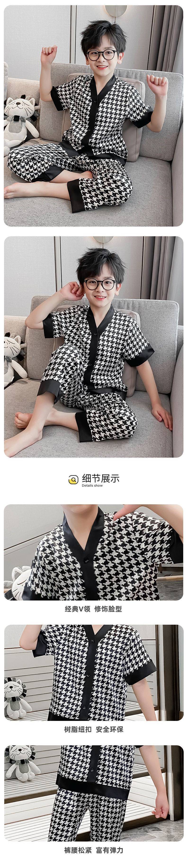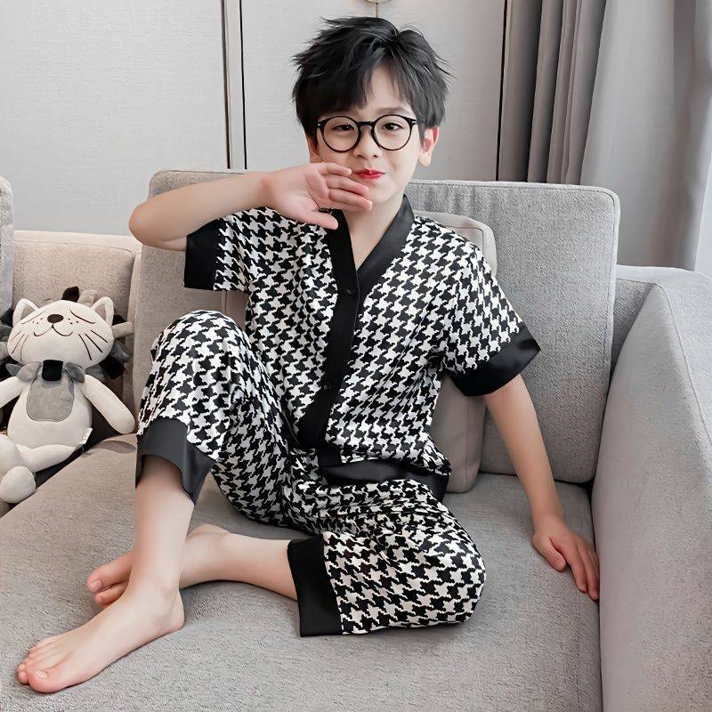아동용 잠옷, 여름 반팔 남아용 가정복, 루즈한 얇은 바지, 큰 아동용 잠옷, 남아용 에어컨 의류스토어 가기