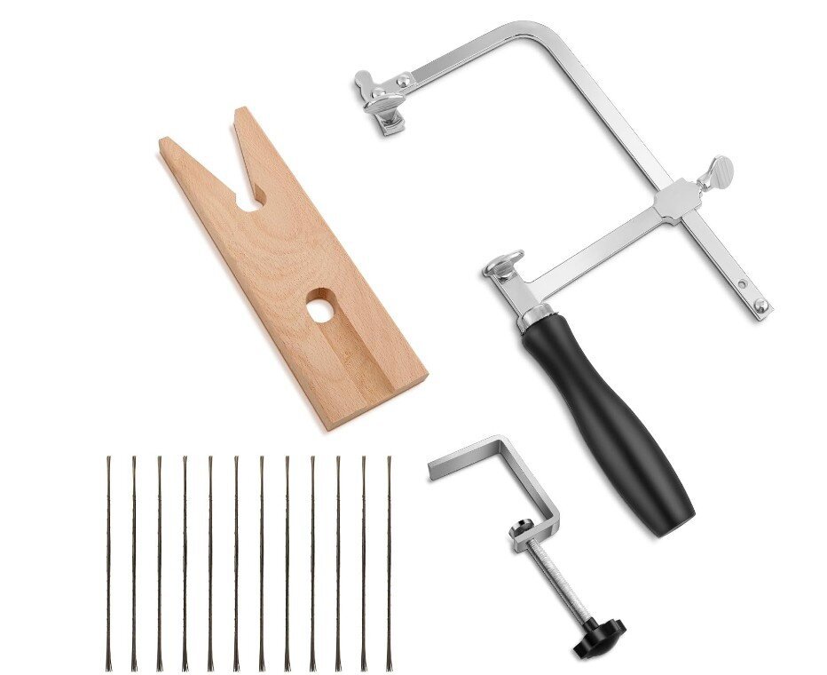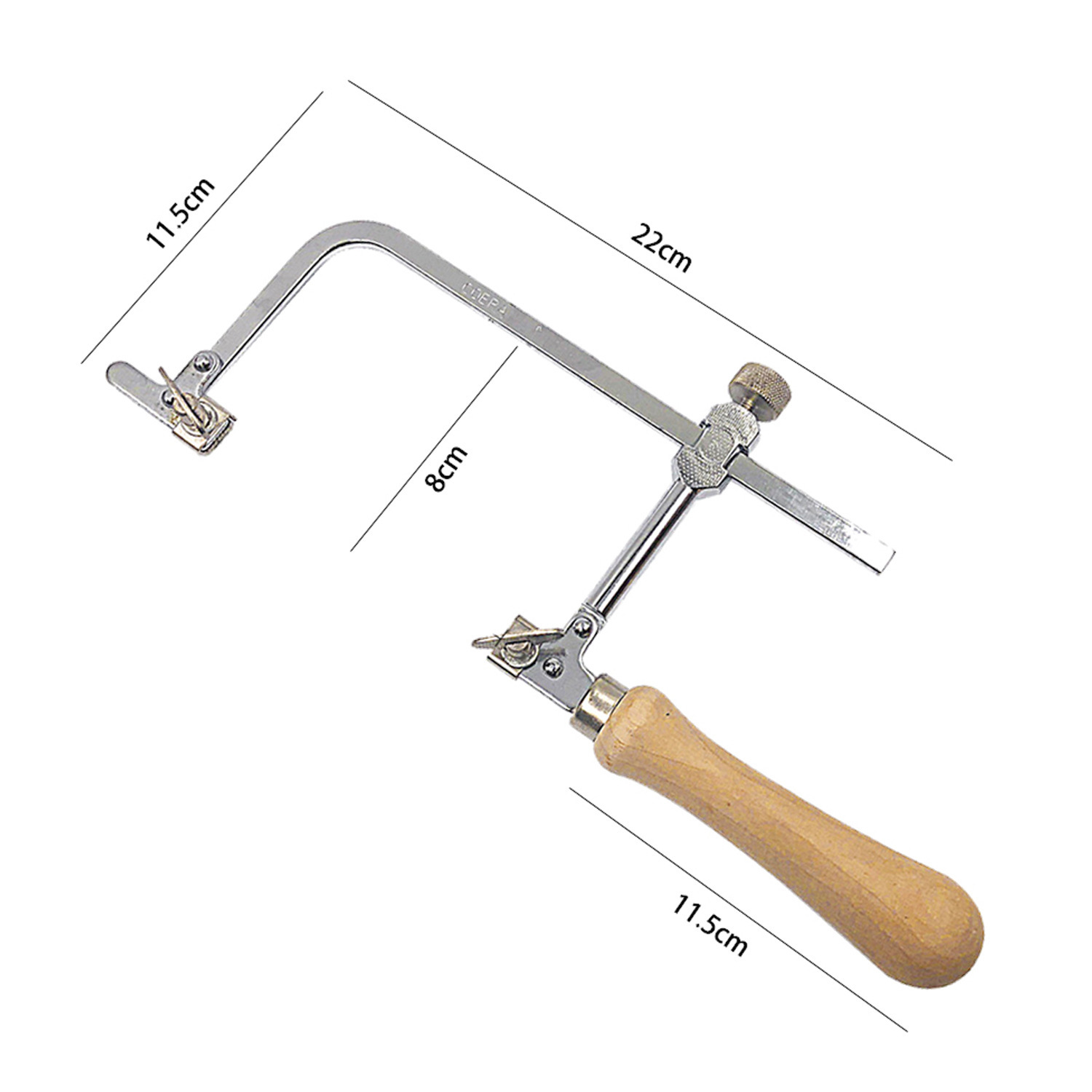 • 톱날 원래 색상 나무 손잡이 이동식 톱 활 + 톱날 12개 + 나무 테이블 클램프