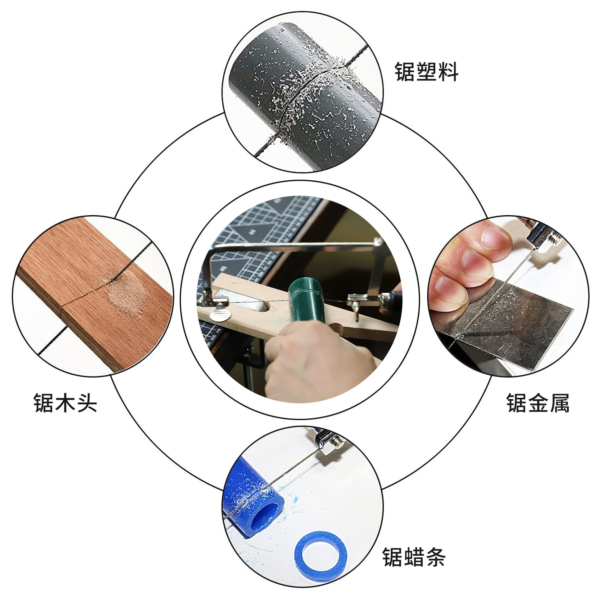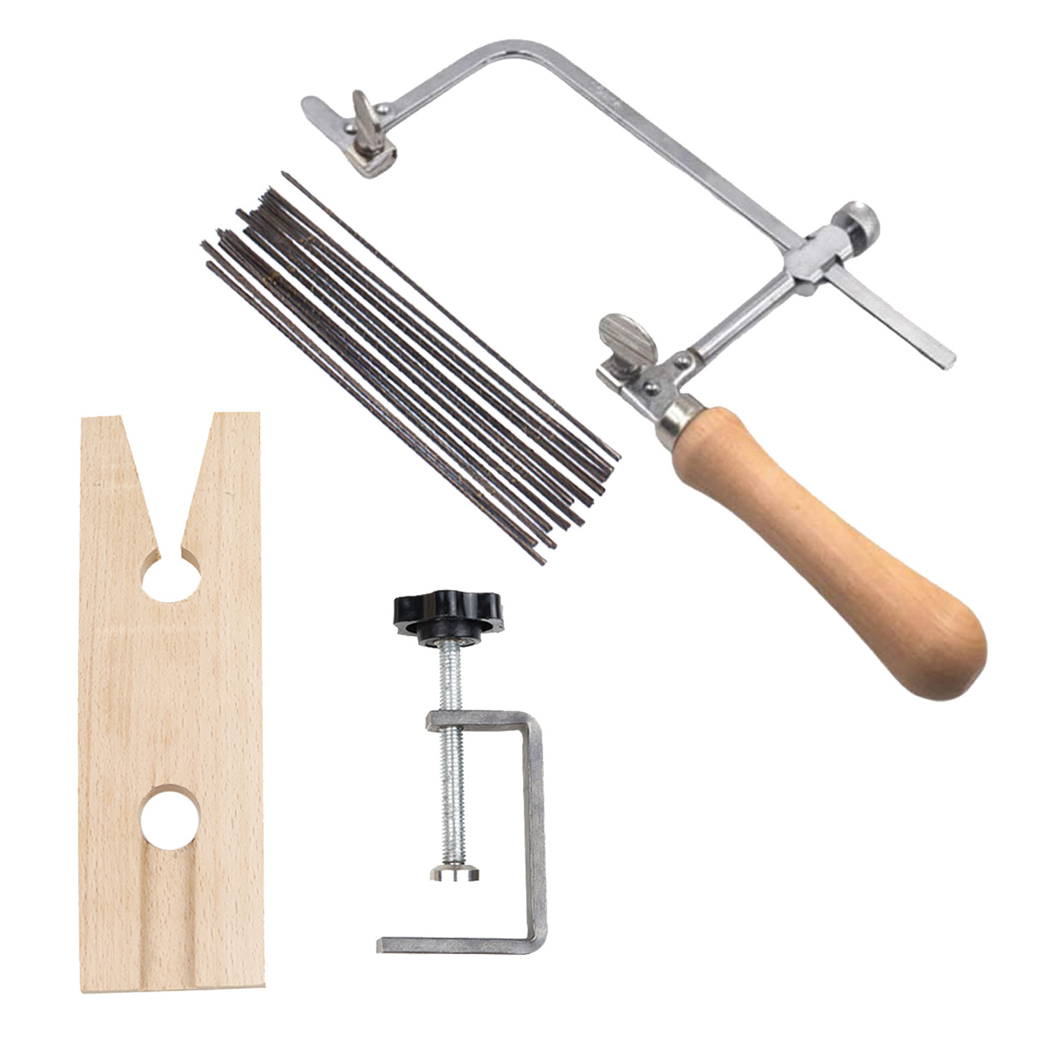 • 원래 색상 나무 손잡이 이동식 톱 활 + 톱날 144개 + 나무 테이블 클램프