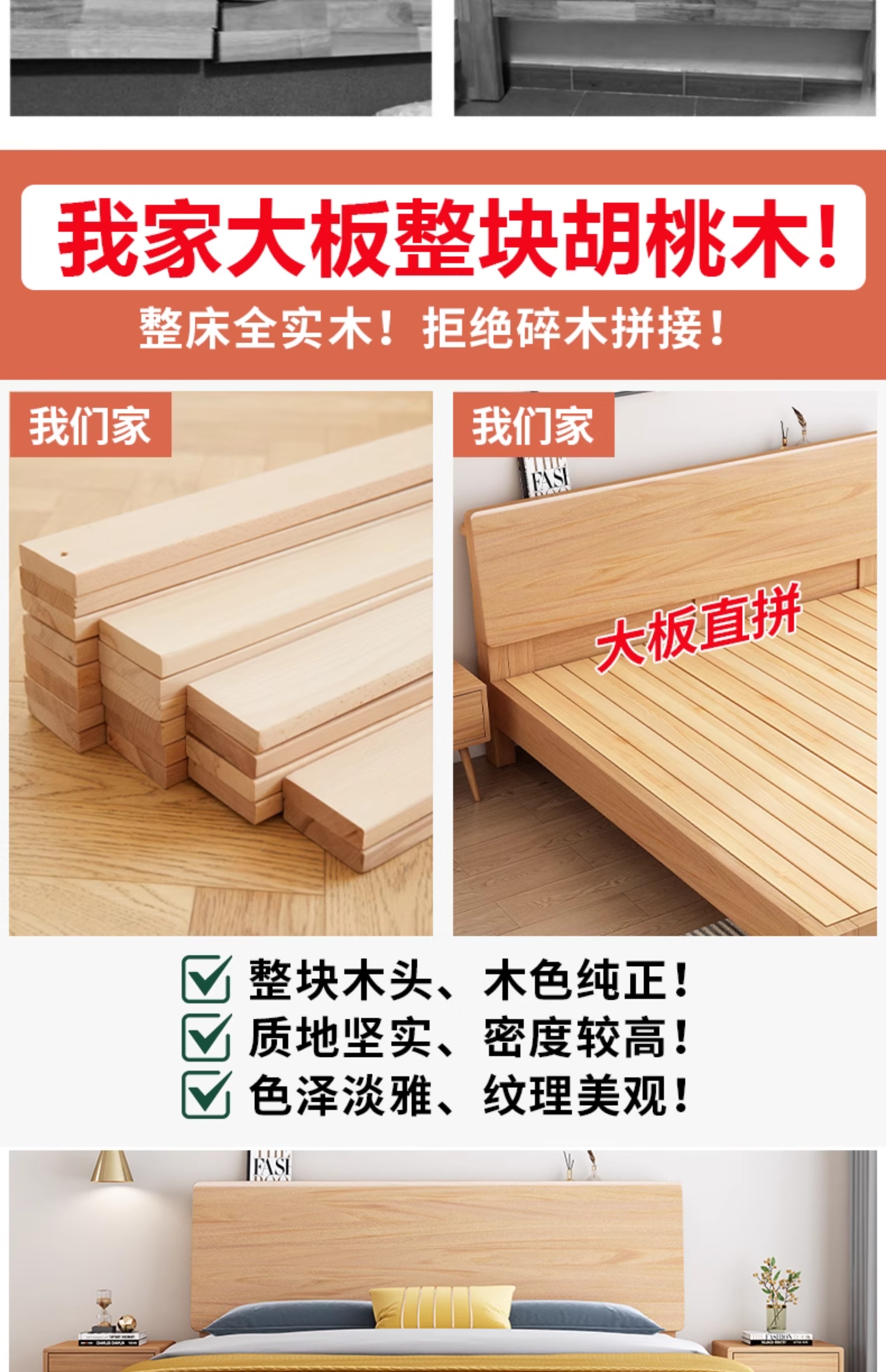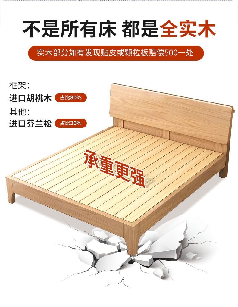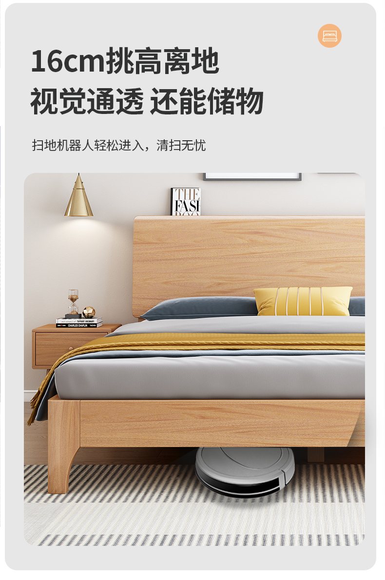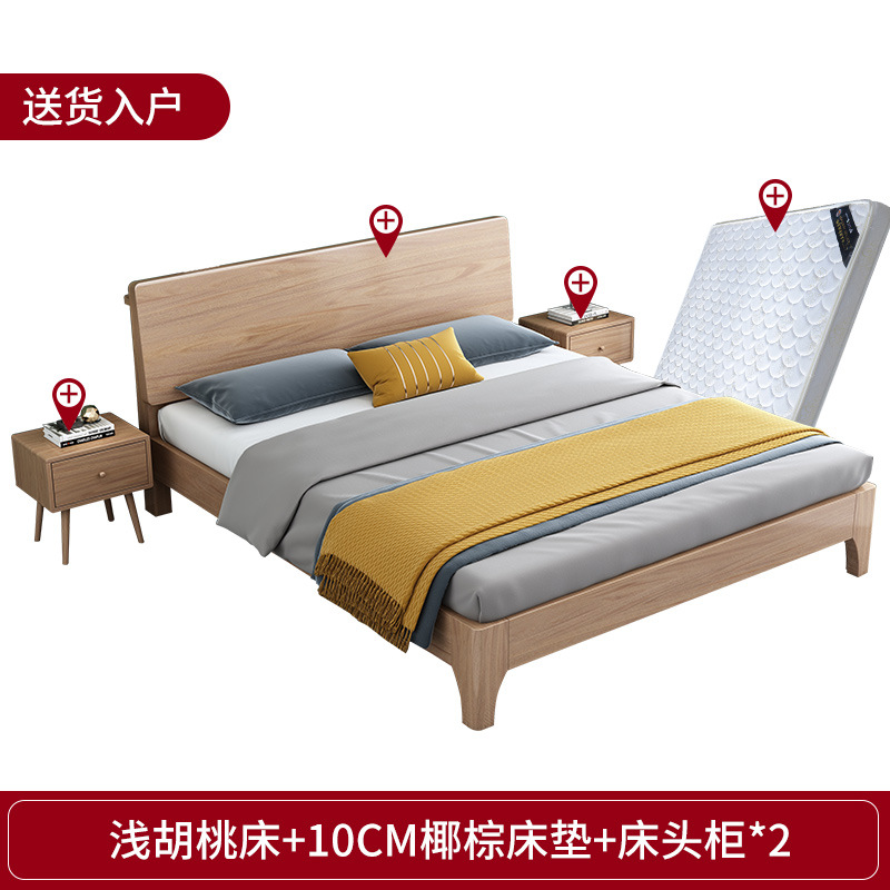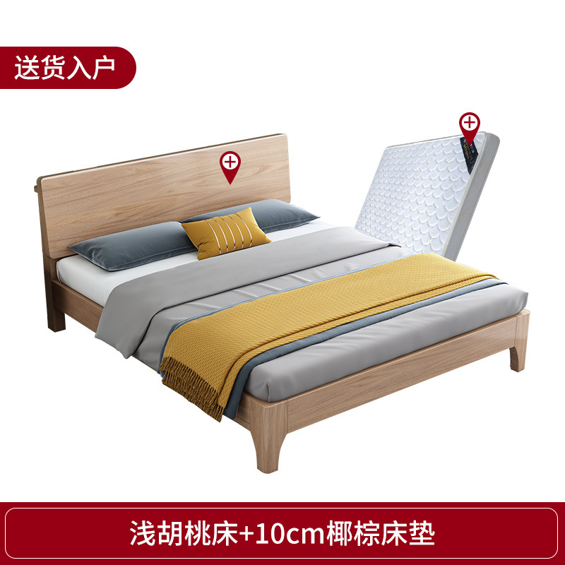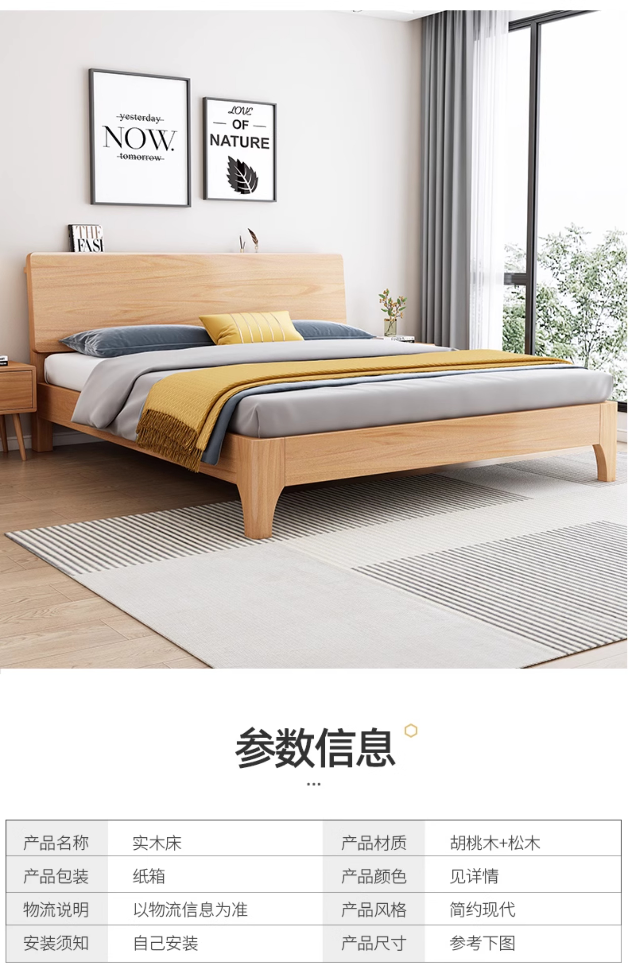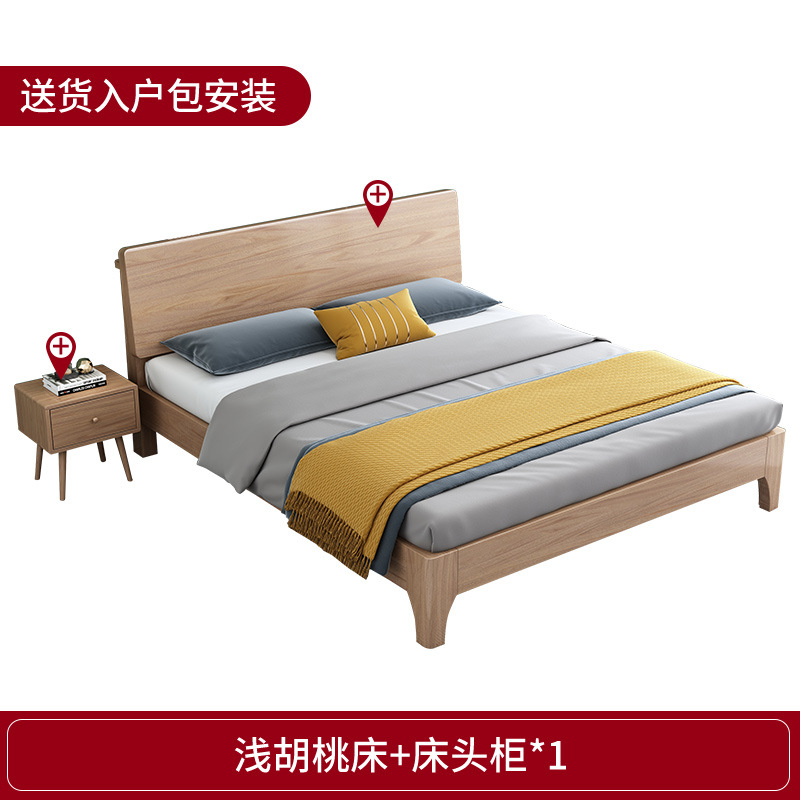 소스 침대 현대적인 미니멀리스트 홈 1.8m 더블 침대 침실 1.5m 싱글 침대 공장 직접 판매 전체 단단한 나무 침대 프레임