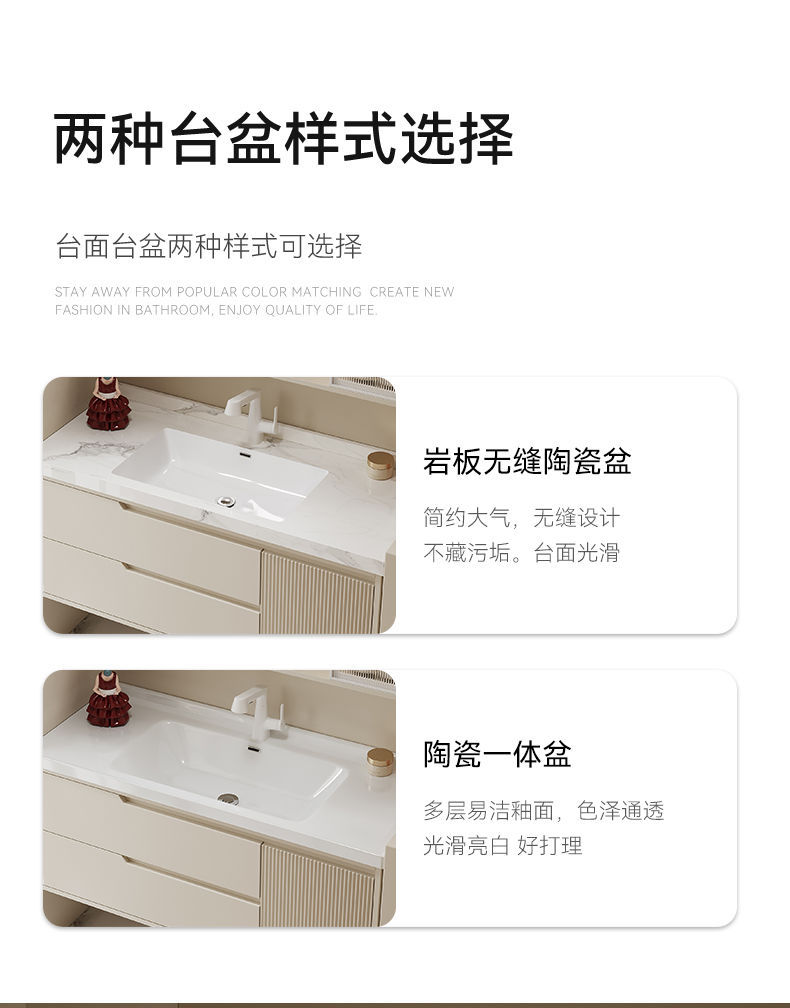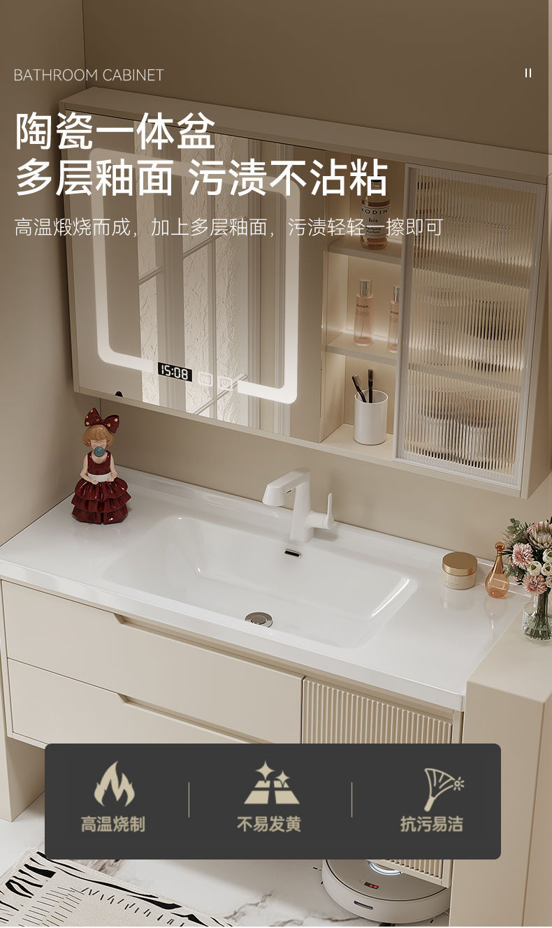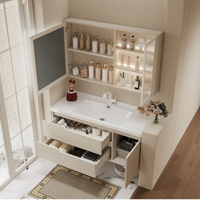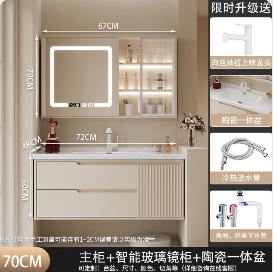 크림 스타일 단단한 참나무 욕실 캐비닛 통합 세라믹 세면대 욕실 세면대 조합 가정용 세면대스토어 가기