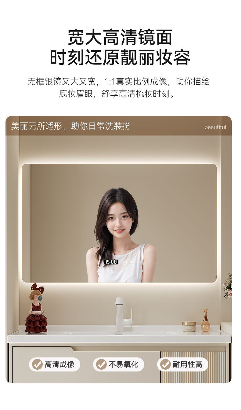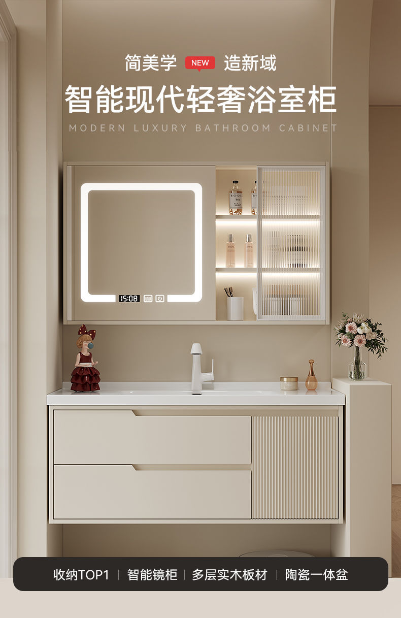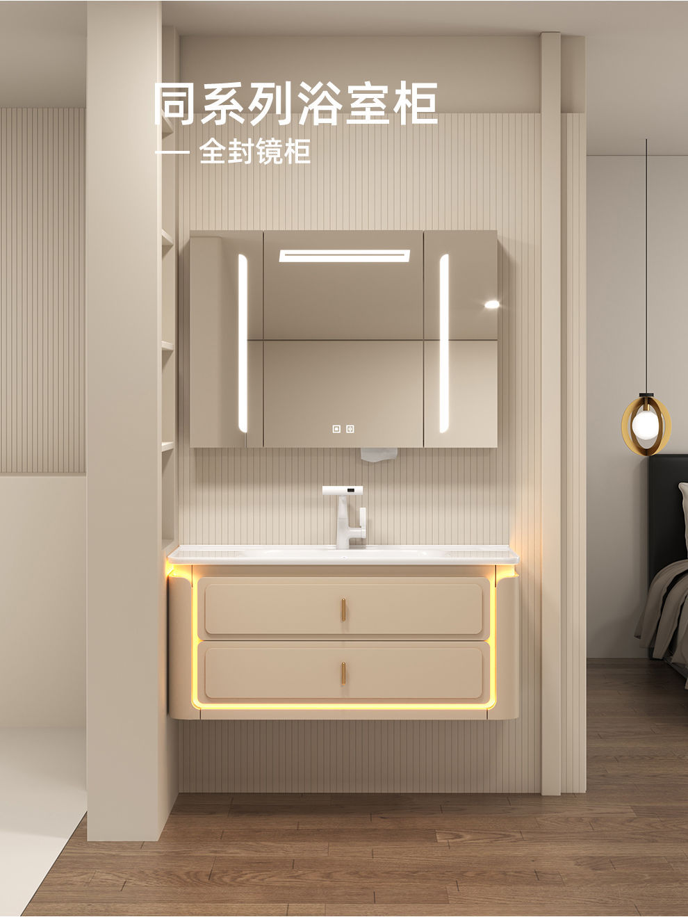 • 110cm 밀크티 컬러/럭셔리 스마트 수납 거울 캐비닛 오크 페인트 도어 패널