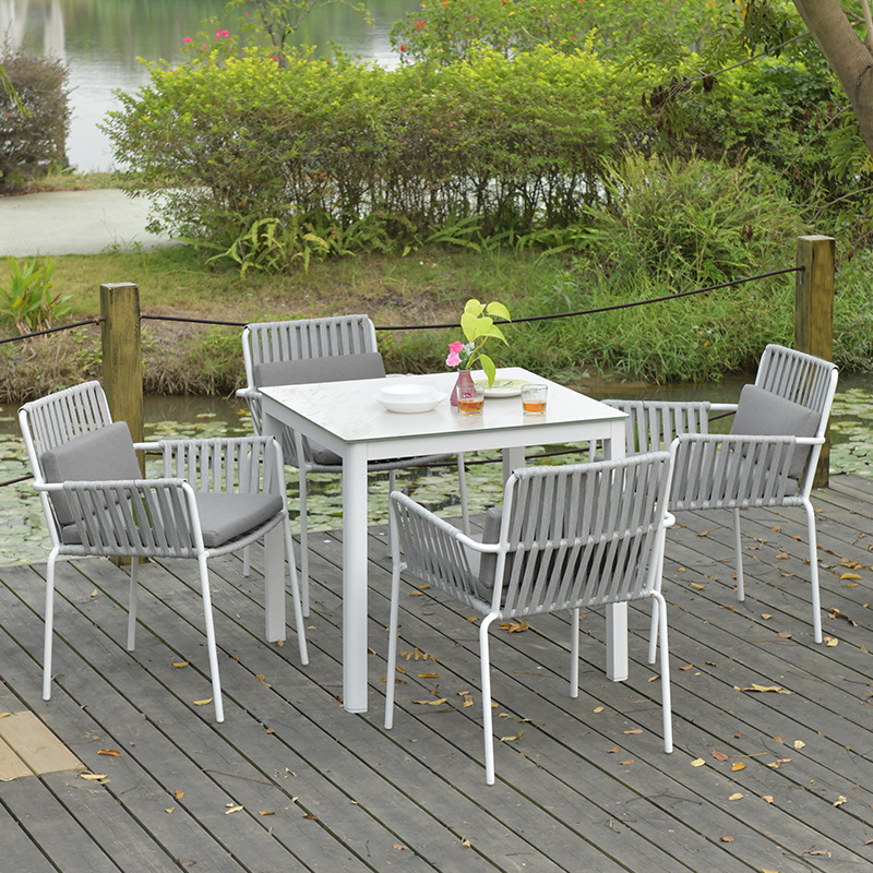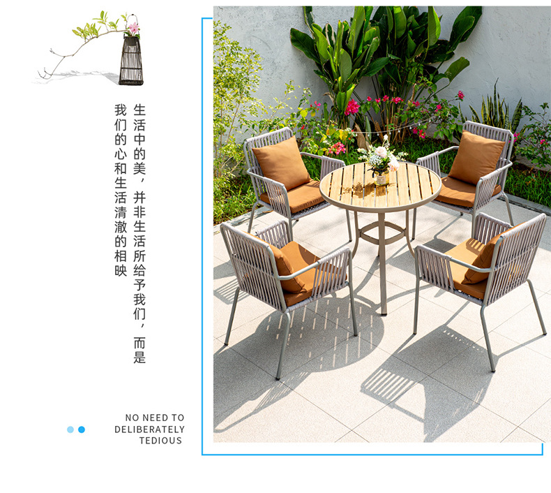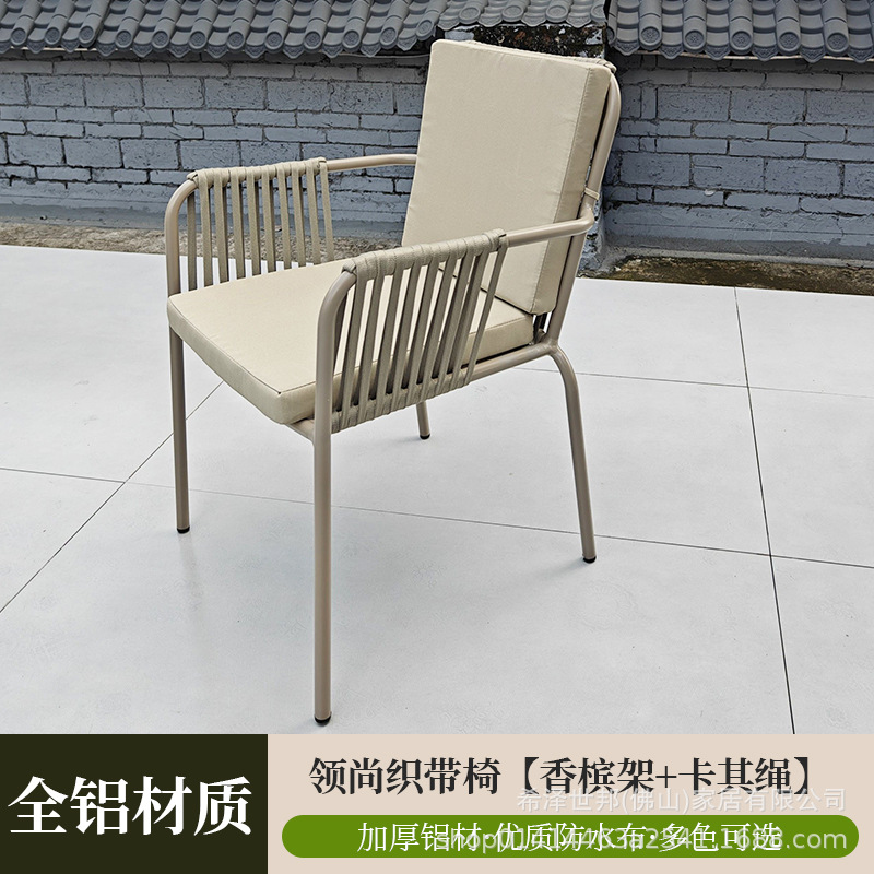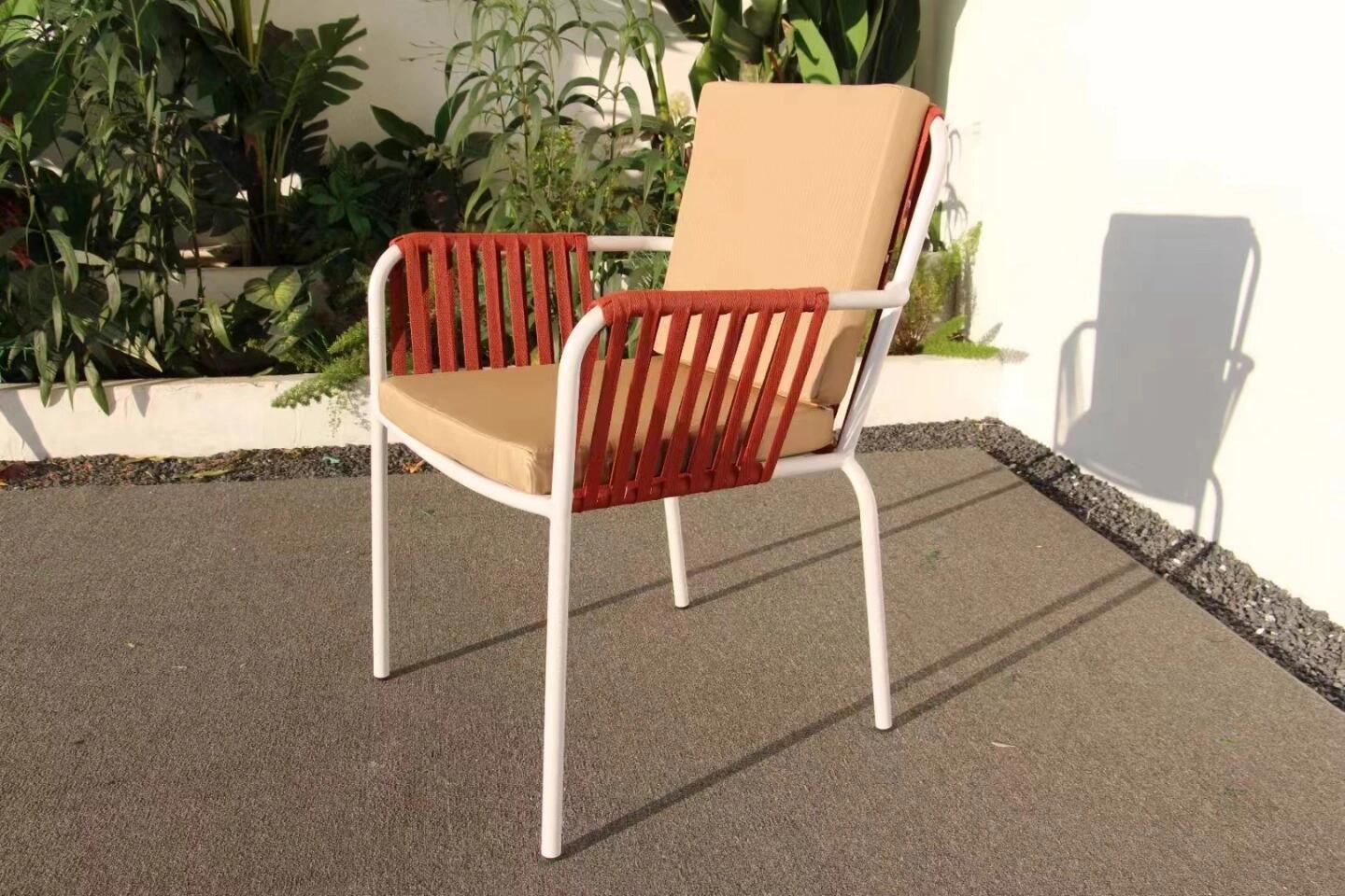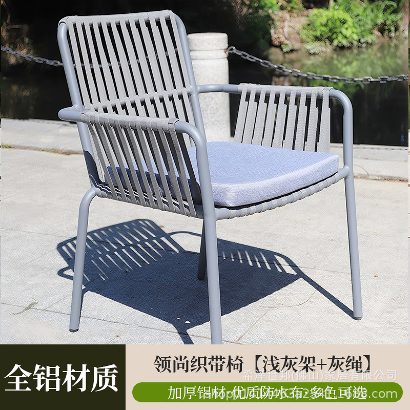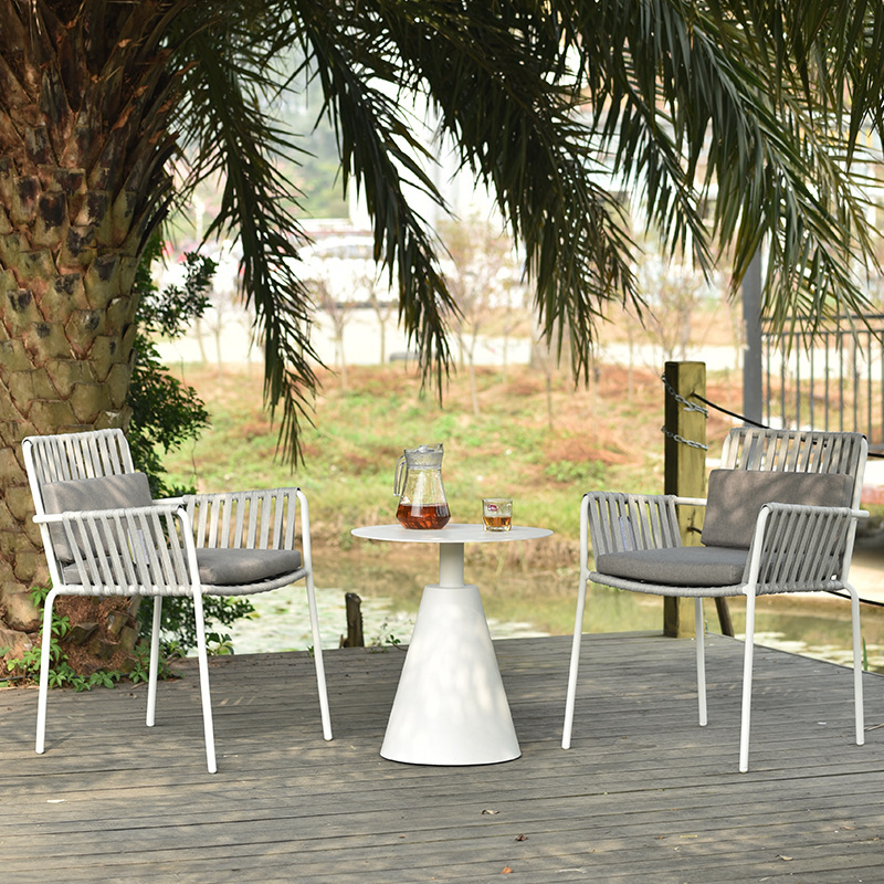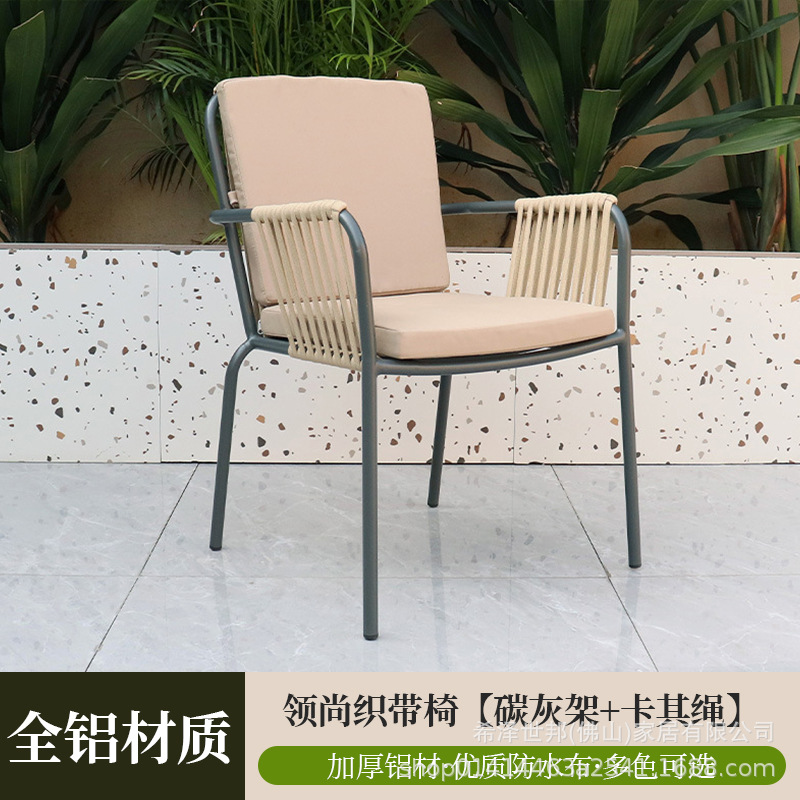 맞춤형 야외 안뜰 손으로 짠 로프 정원 의자 캐주얼 현대 실내 거실 간단한 리본 식탁 및 의자스토어 가기