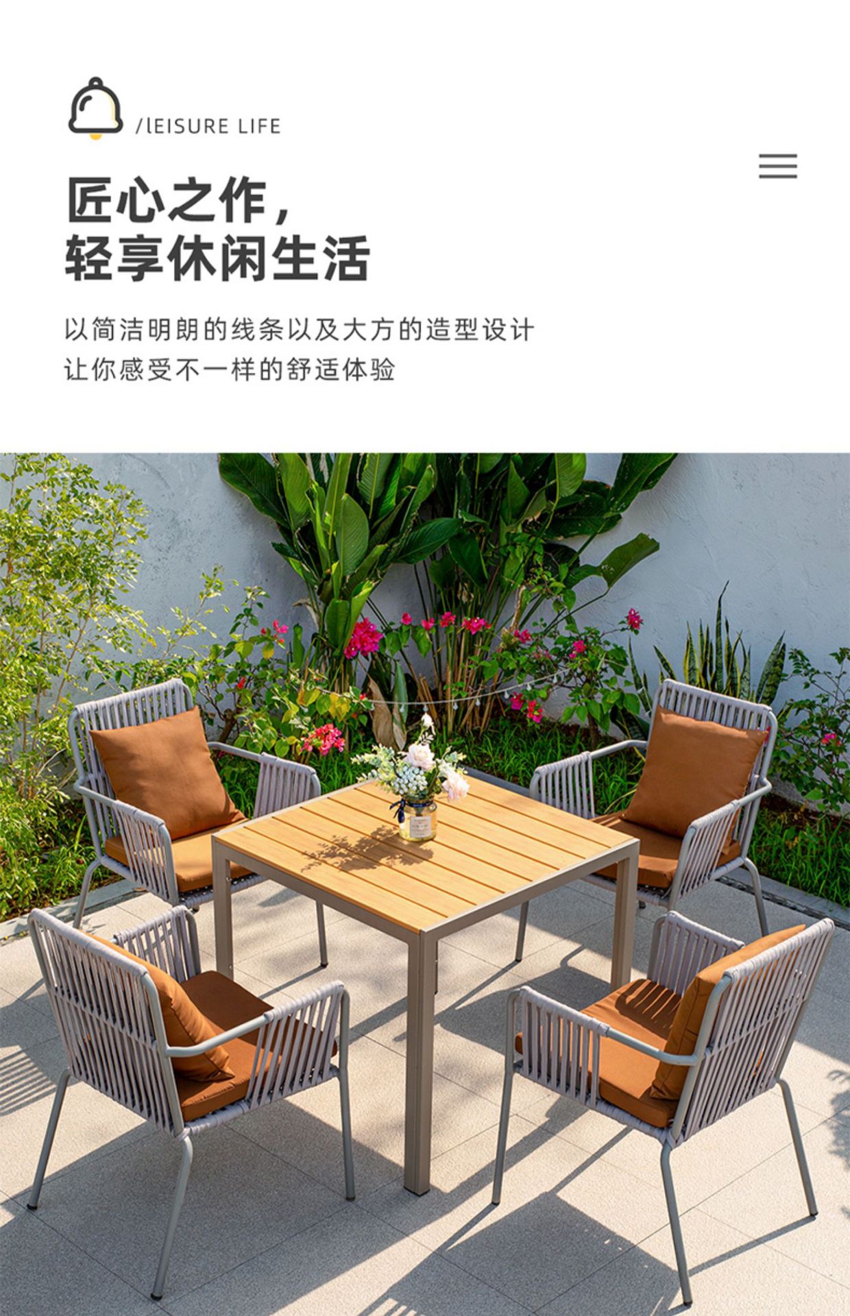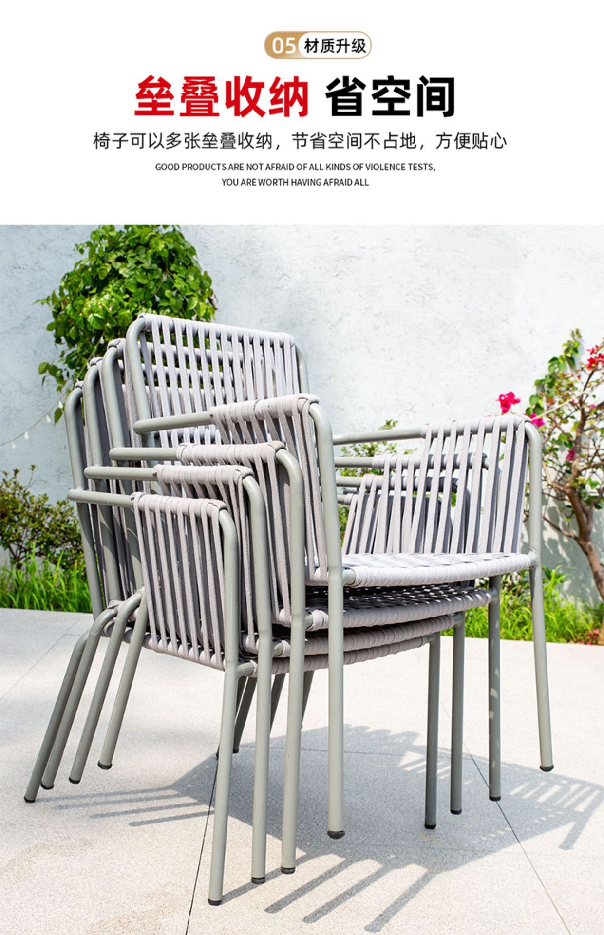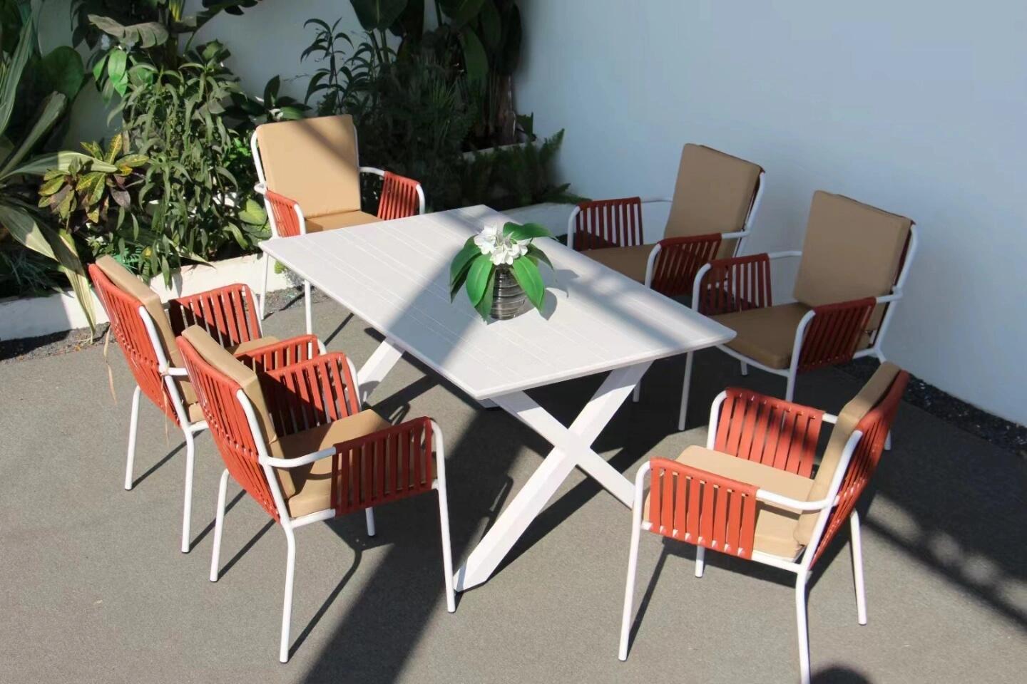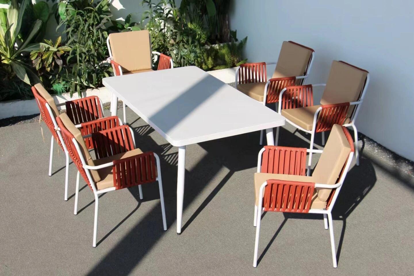 맞춤형 야외 안뜰 손으로 짠 로프 정원 의자 캐주얼 현대 실내 거실 간단한 리본 식탁 및 의자스토어 가기