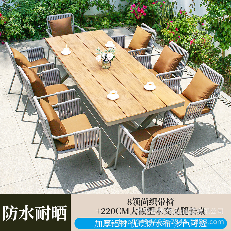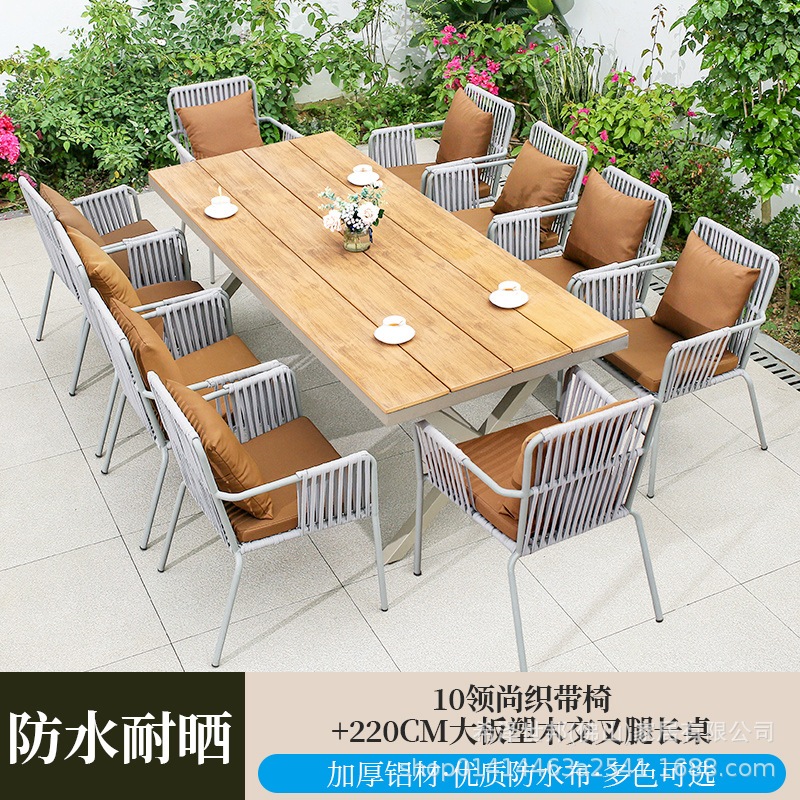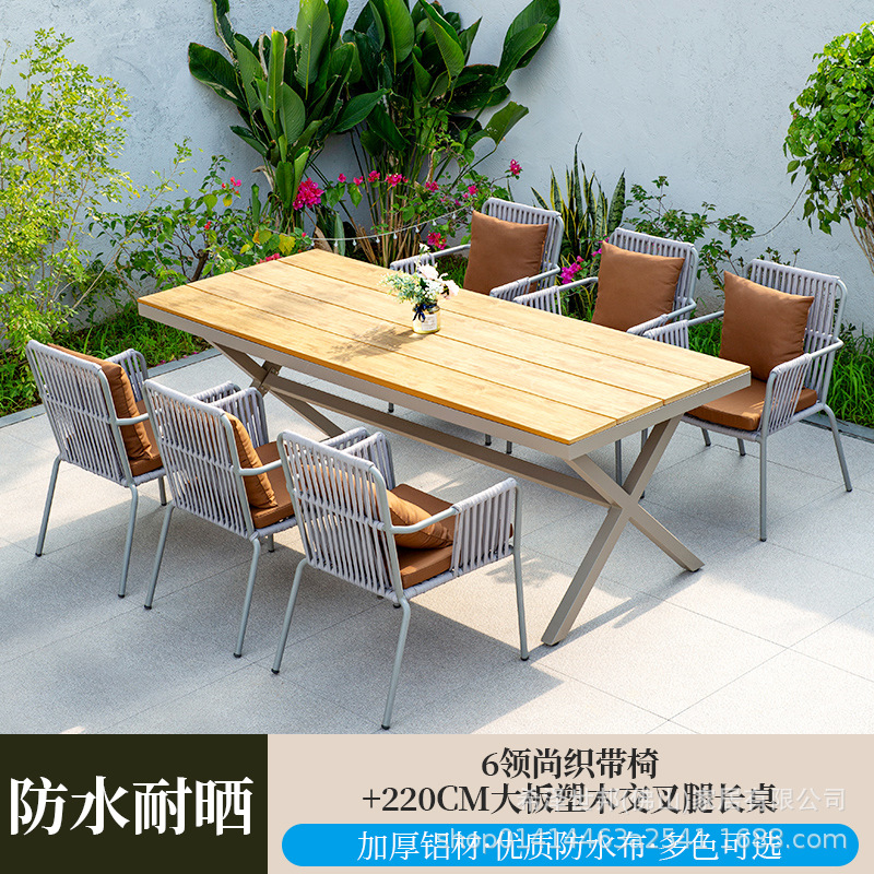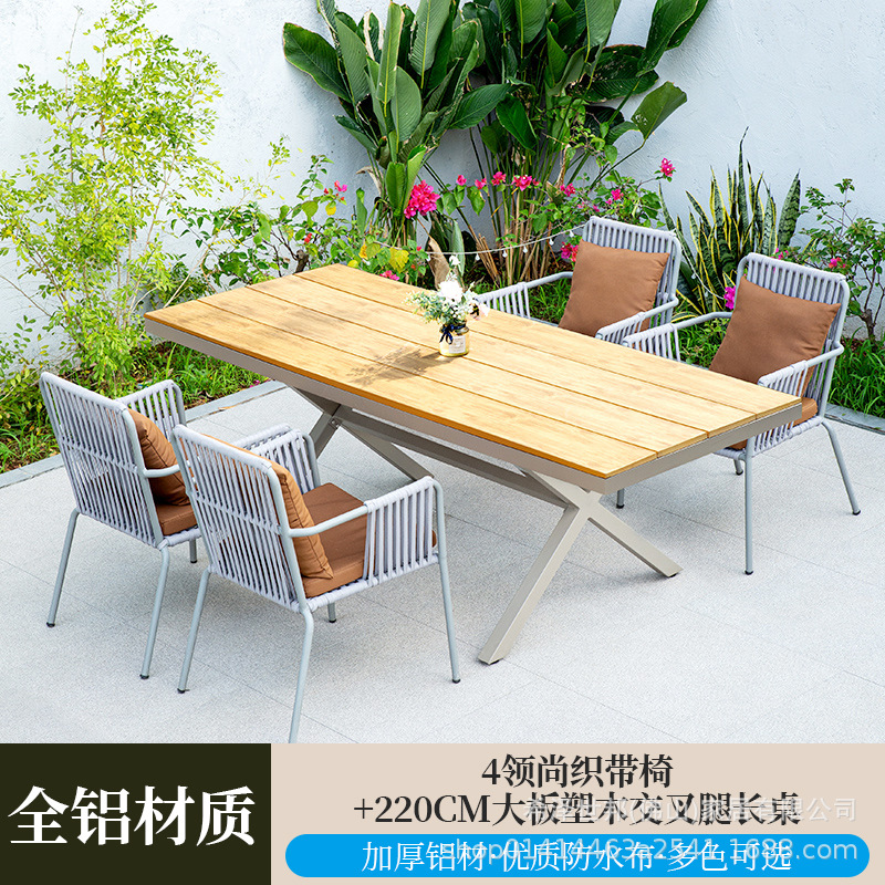 • 4 칼라 웨빙 의자 + 220CM 대형 플라스틱 나무 십자 다리 긴 테이블