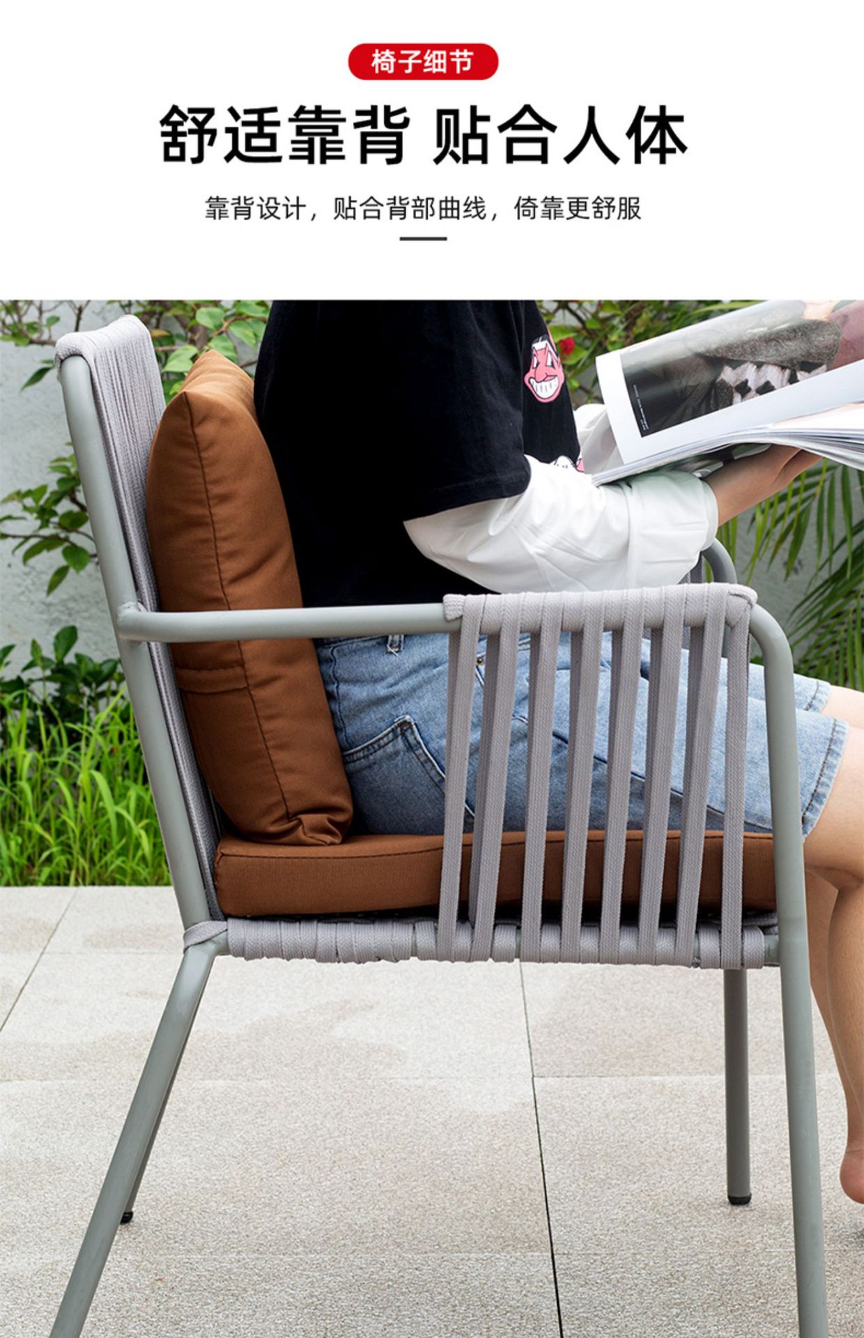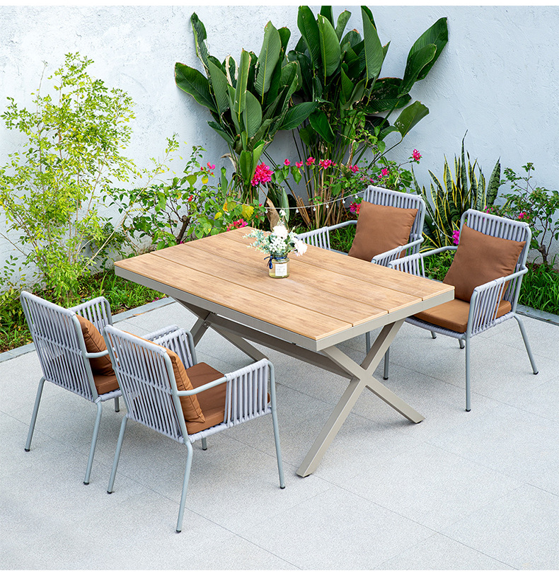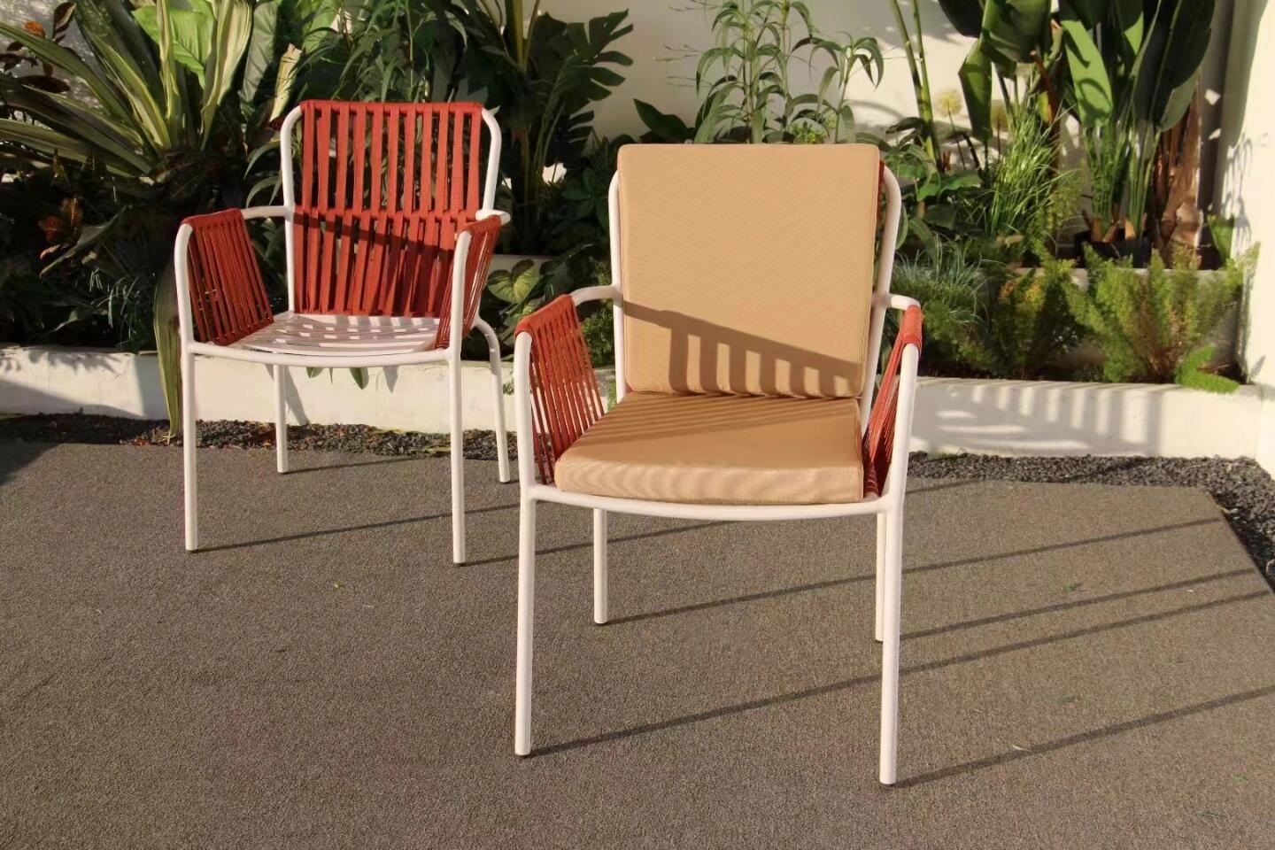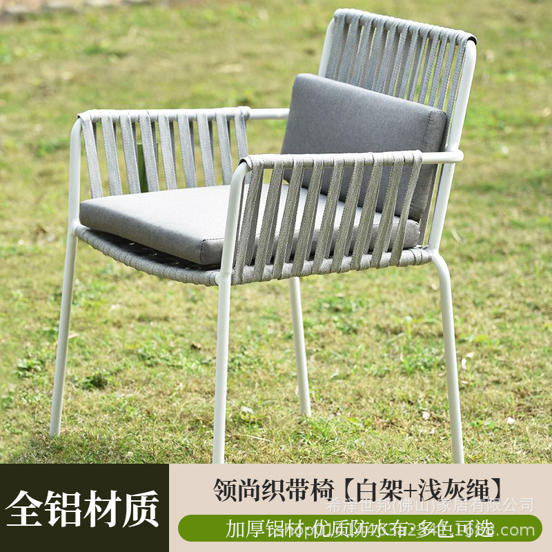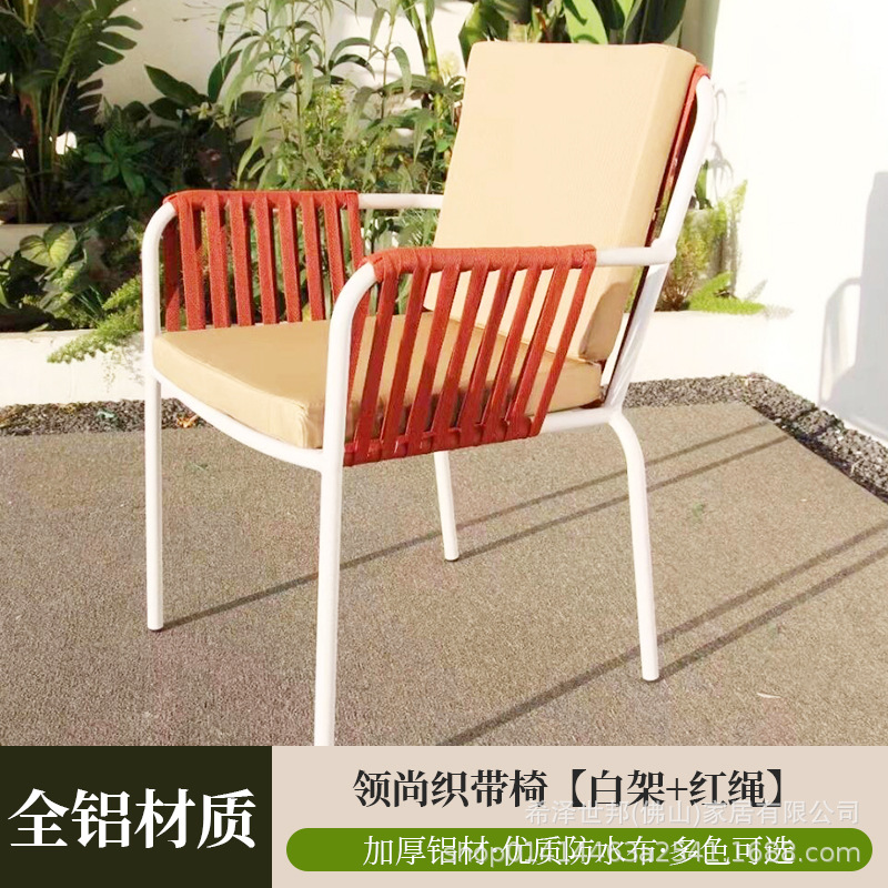맞춤형 야외 안뜰 손으로 짠 로프 정원 의자 캐주얼 현대 실내 거실 간단한 리본 식탁 및 의자