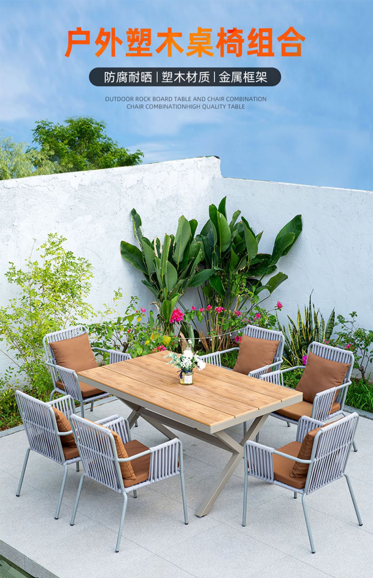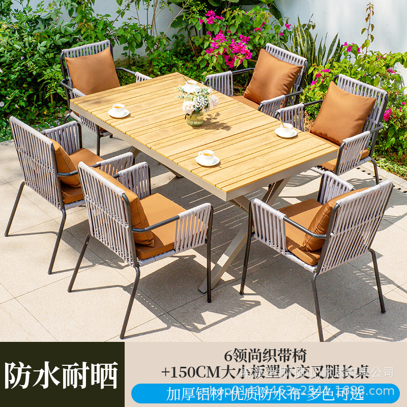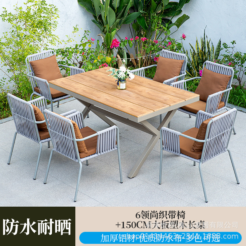 • 6 칼라 웨빙 의자 + 150CM 대형 플라스틱 나무 긴 테이블