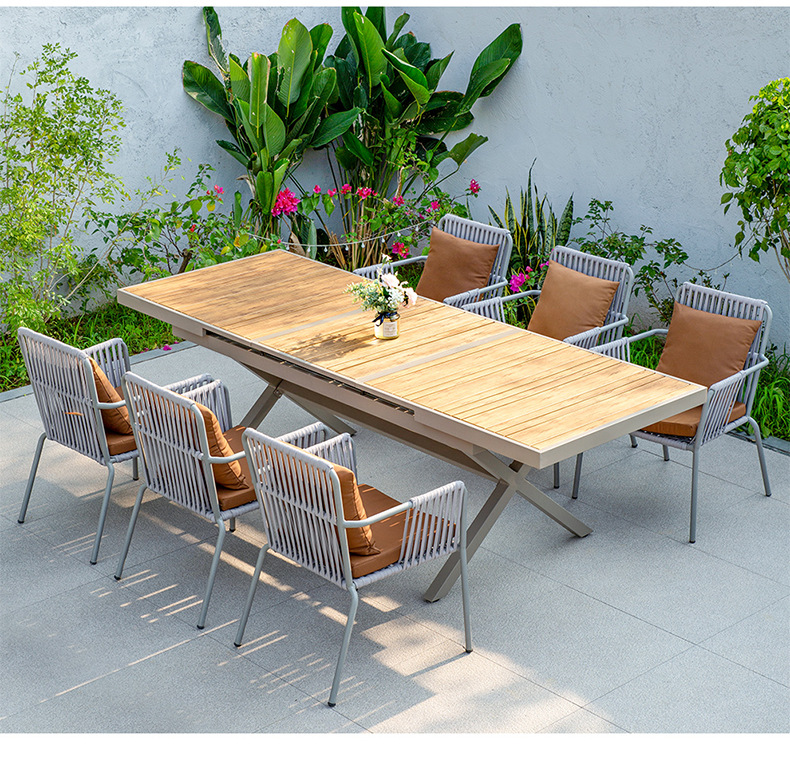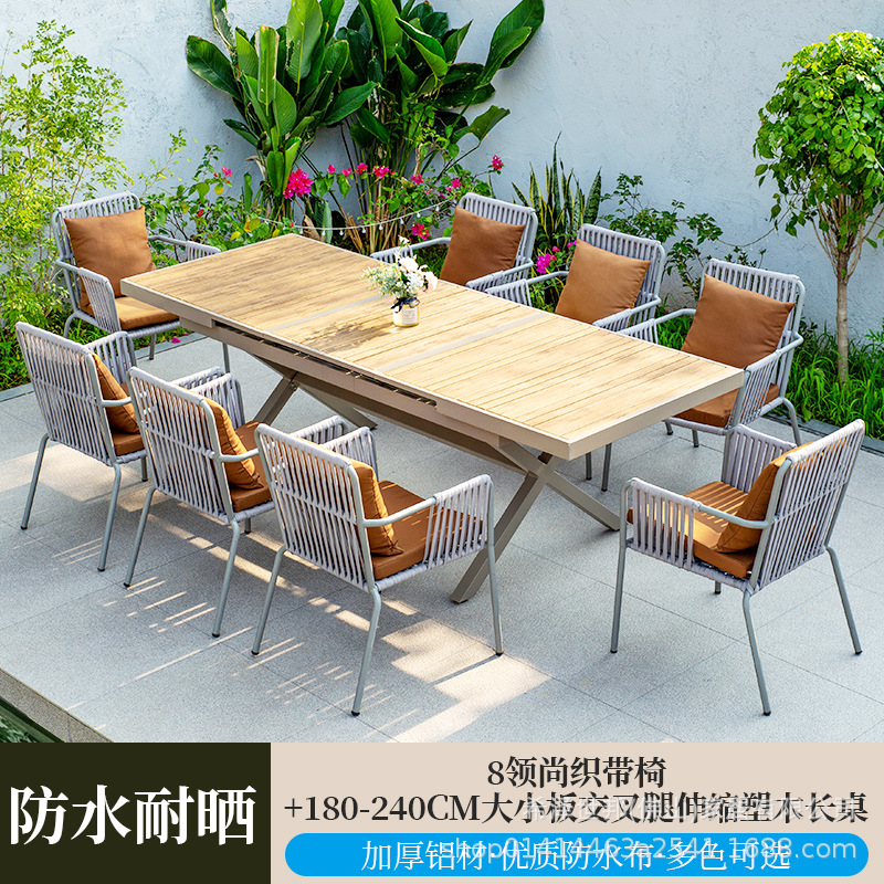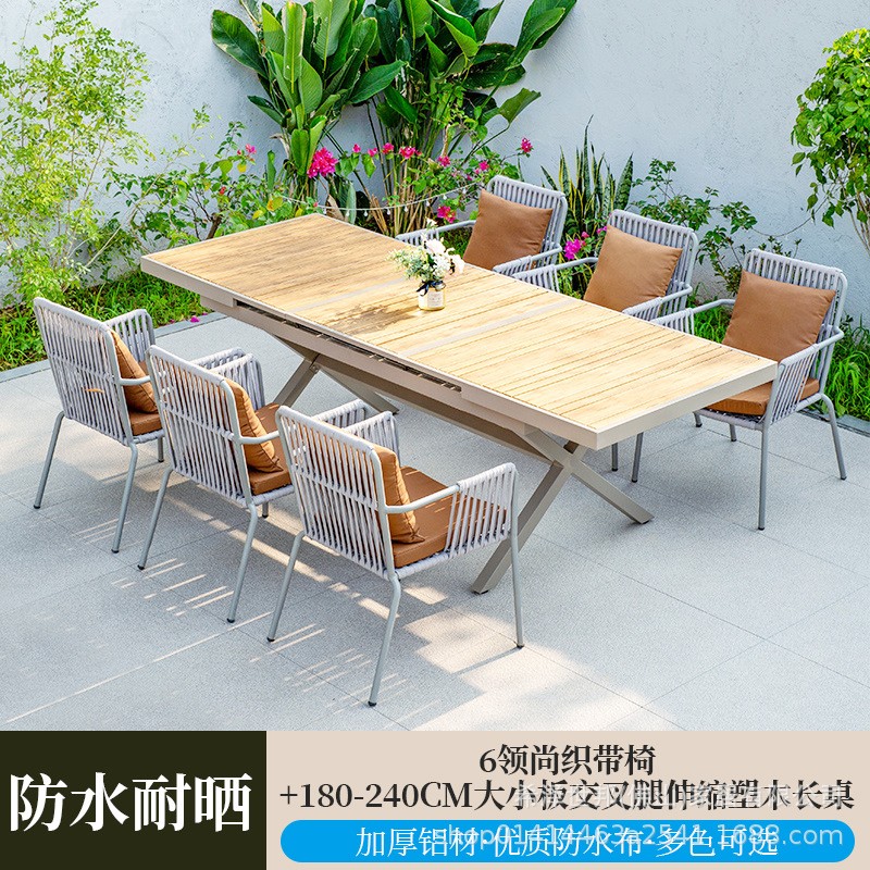 • 6 칼라 웨빙 의자 + 180-240CM 크고 작은 보드 십자 다리 텔레스코픽 플라스틱 나무 긴 테이블