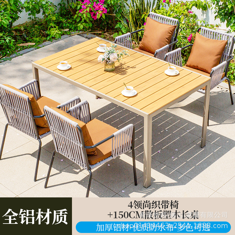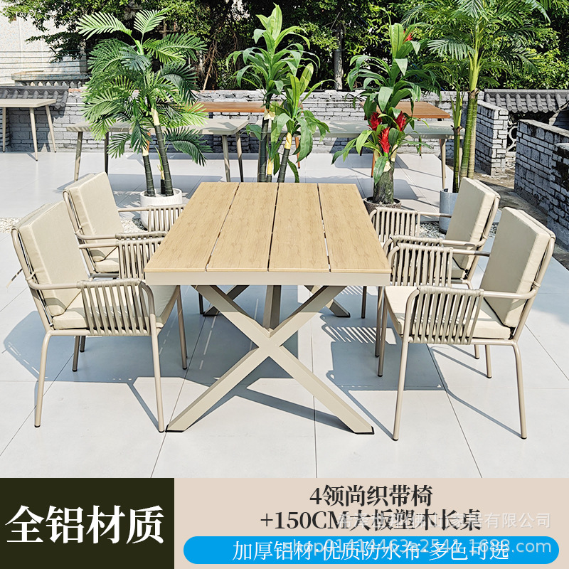 • 4 칼라 웨빙 의자 + 150CM 느슨한 플라스틱 나무 긴 테이블