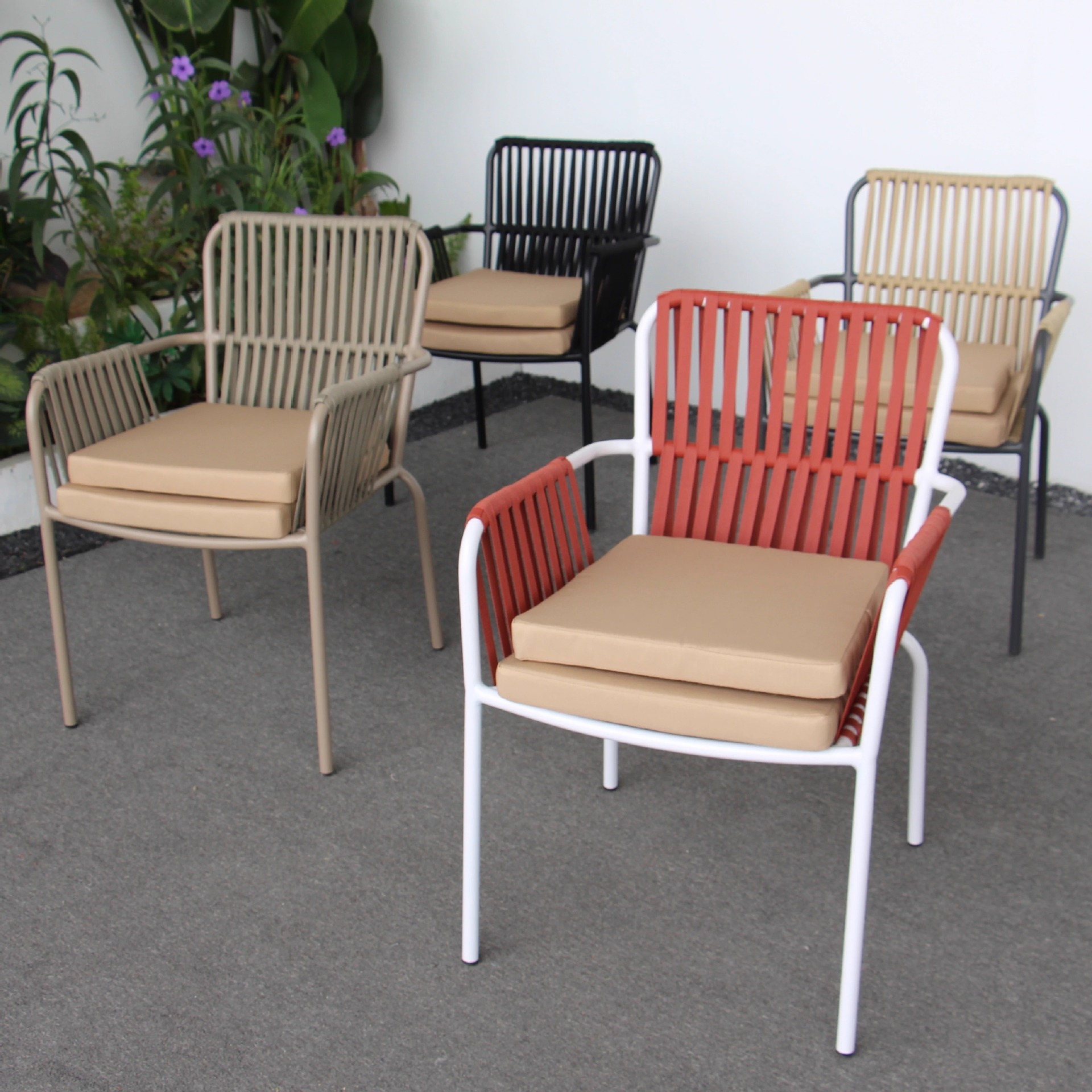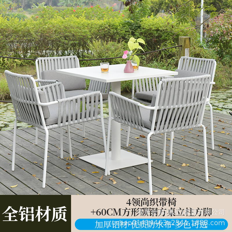 • 4 칼라 웨빙 의자 + 60CM 사각 탄소강 사각 테이블 기둥 평방 피트