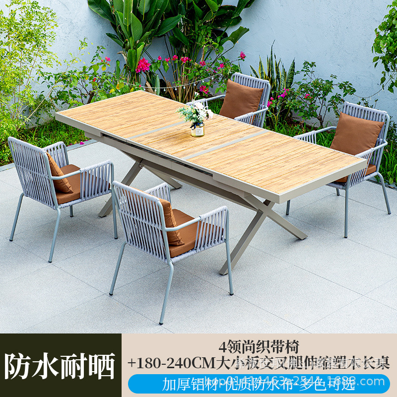 • 4 칼라 웨빙 의자 + 180-240CM 크고 작은 보드 십자 다리 텔레스코픽 플라스틱 나무 긴 테이블