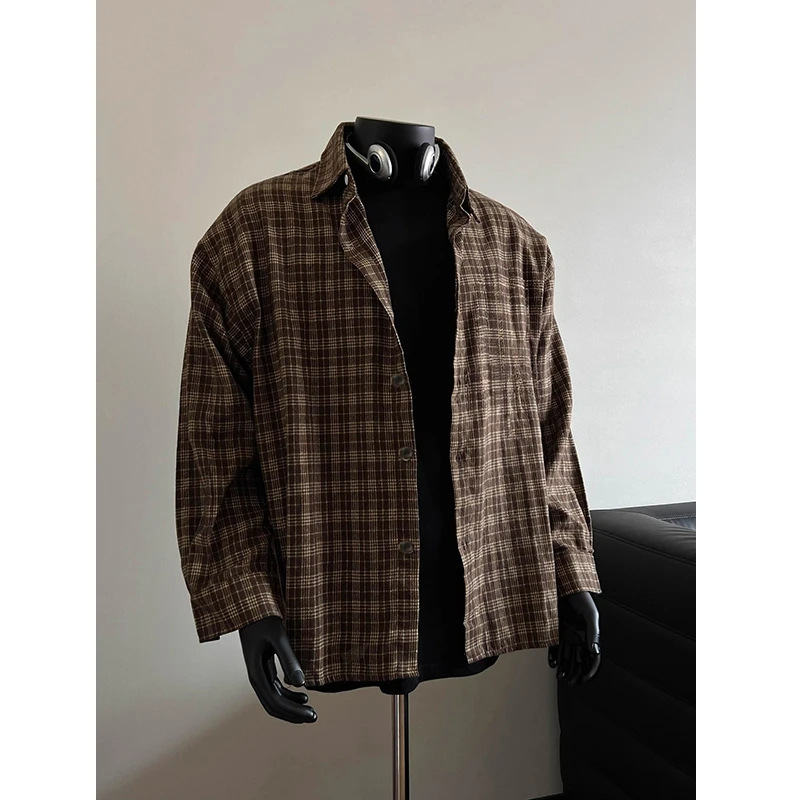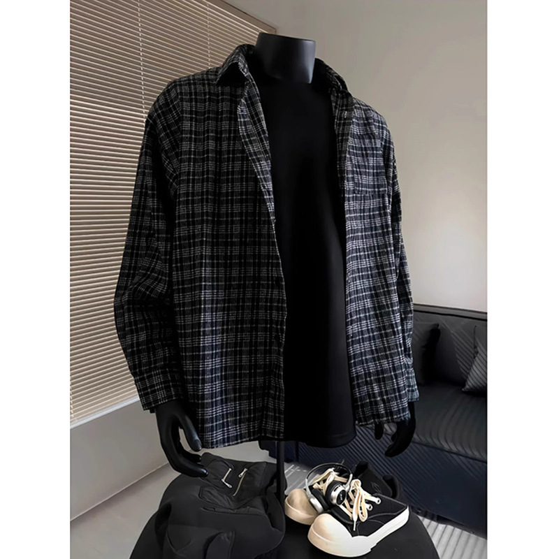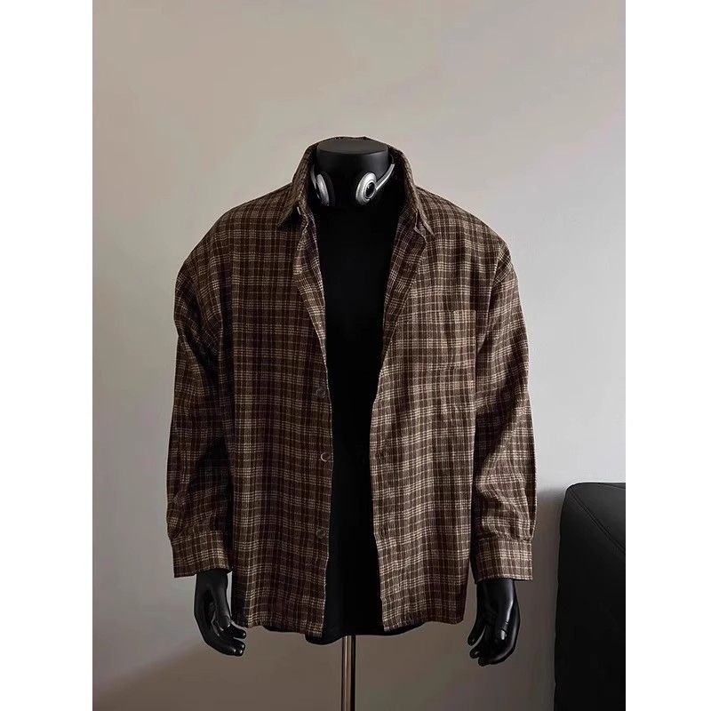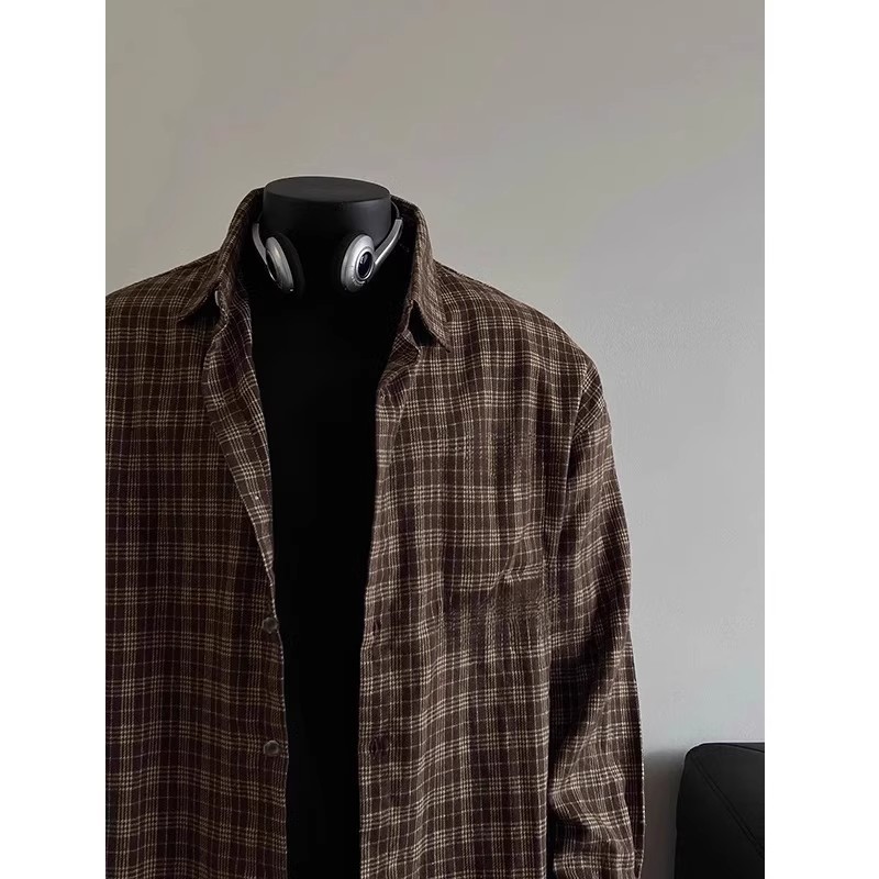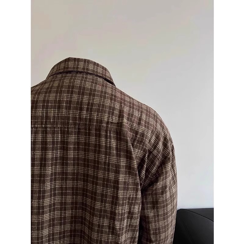 레트로 대비 색상 격자 무늬 셔츠 남성 가을, 겨울 미국 고급 격자 무늬 바닥 셔츠 클린핏 재킷스토어 가기