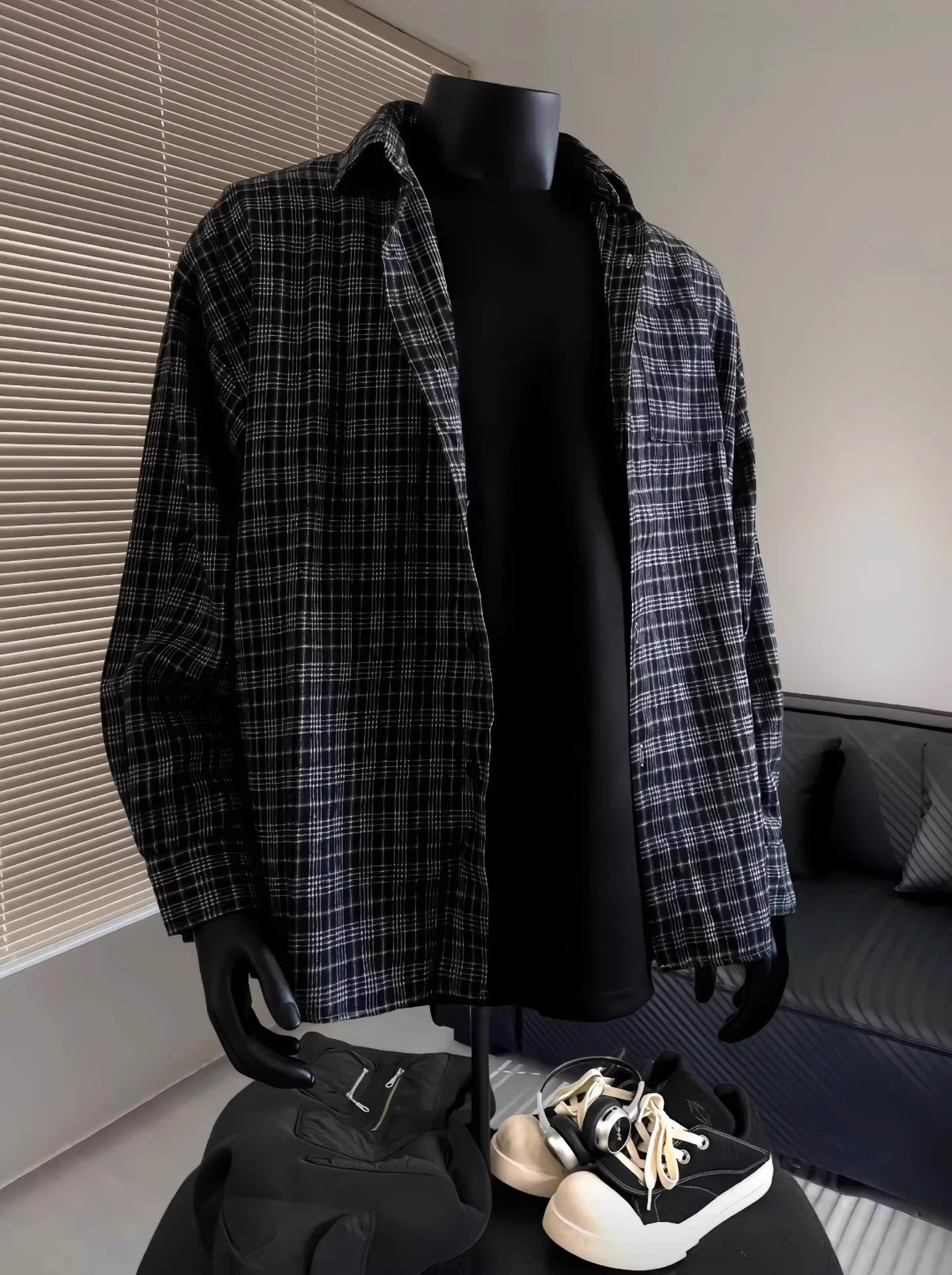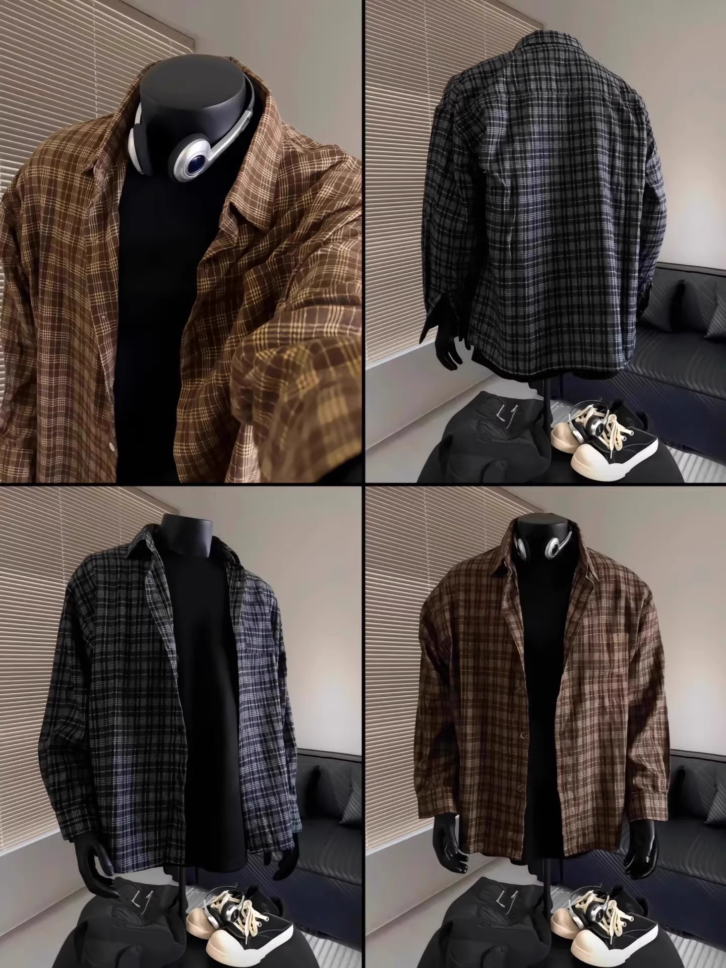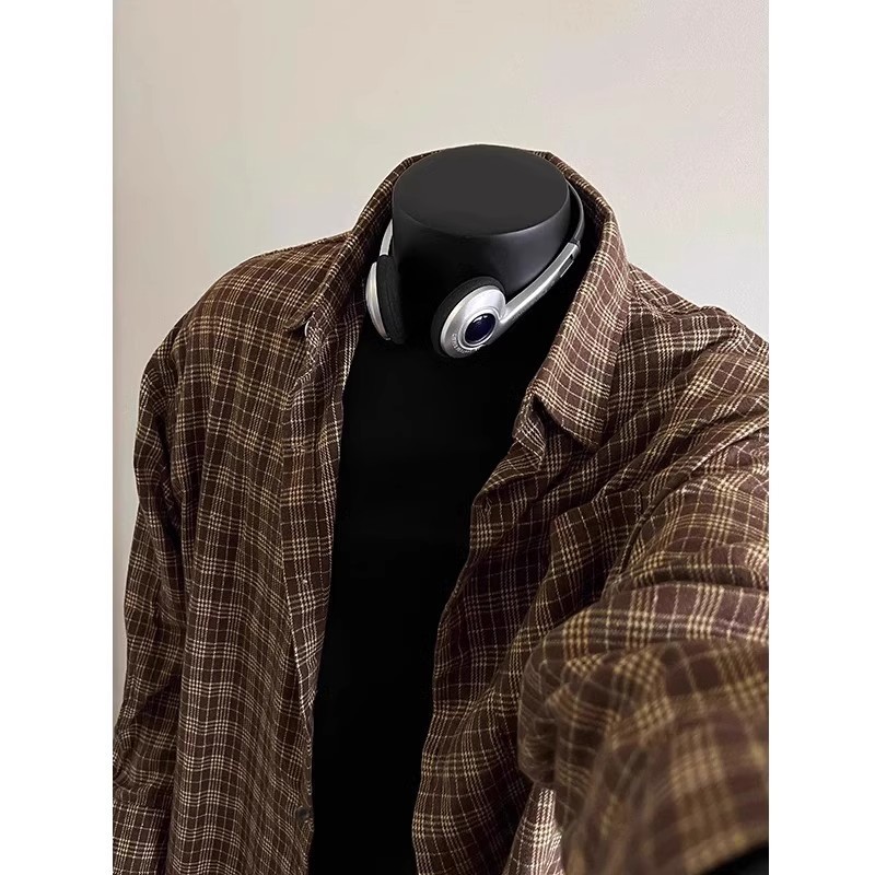 레트로 대비 색상 격자 무늬 셔츠 남성 가을, 겨울 미국 고급 격자 무늬 바닥 셔츠 클린핏 재킷스토어 가기