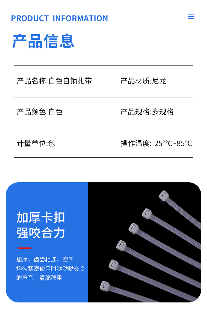 • 흰색, 10X760, 팩당 100개(국가 표준 폭 8.8MM)