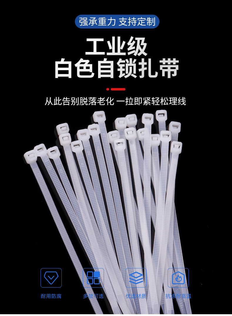 자동 잠금 나일론 케이블 타이 제조 업체 도매 3*100*4*250*5*300 흑백 플라스틱 번들 케이블 타이