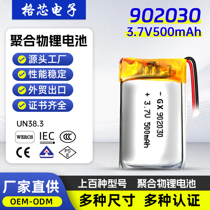 902030 폴리머 리튬 배터리 3.7V500mAh 전자제품 배터리 인증 un38.3 외국 무역 수출
