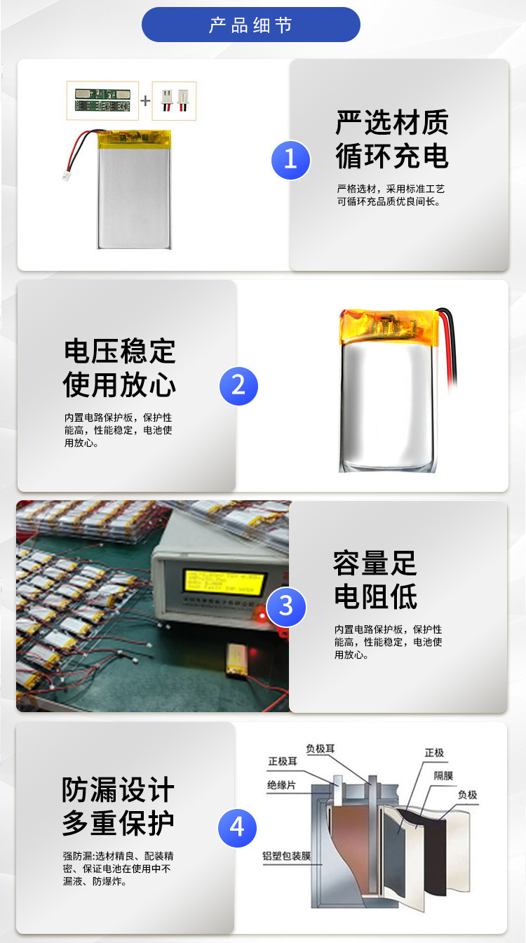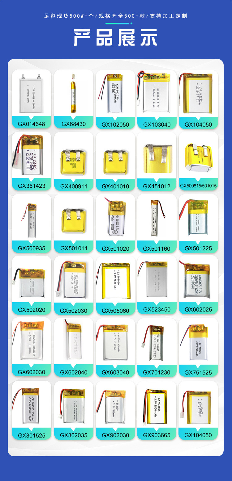 902030 폴리머 리튬 배터리 3.7V500mAh 전자제품 배터리 인증 un38.3 외국 무역 수출스토어 가기