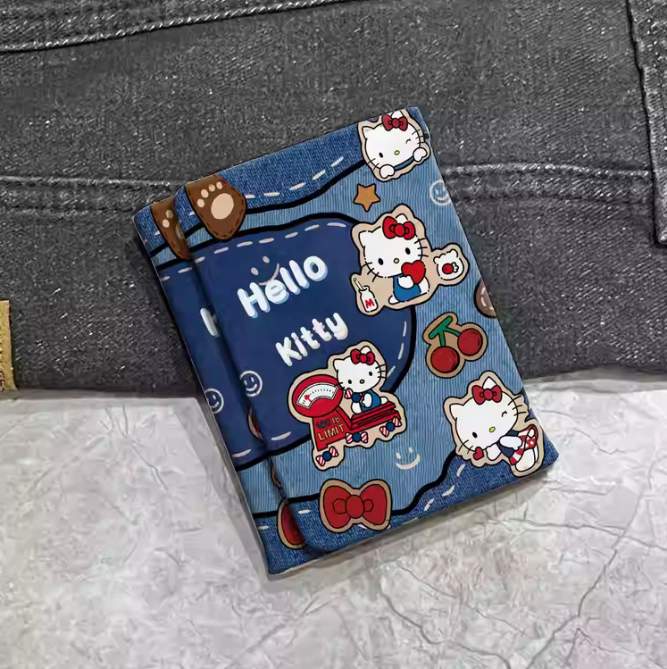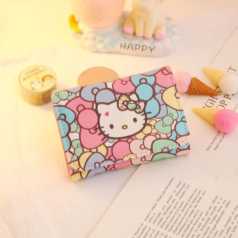 귀여운 일본식 만화 지갑 여성용 짧은 스타일 심플하고 상큼한 소녀풍 접이식 어린이 공주 헬로키티 동전 지갑