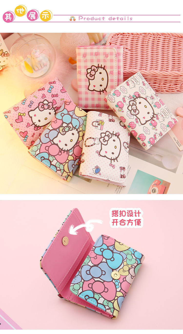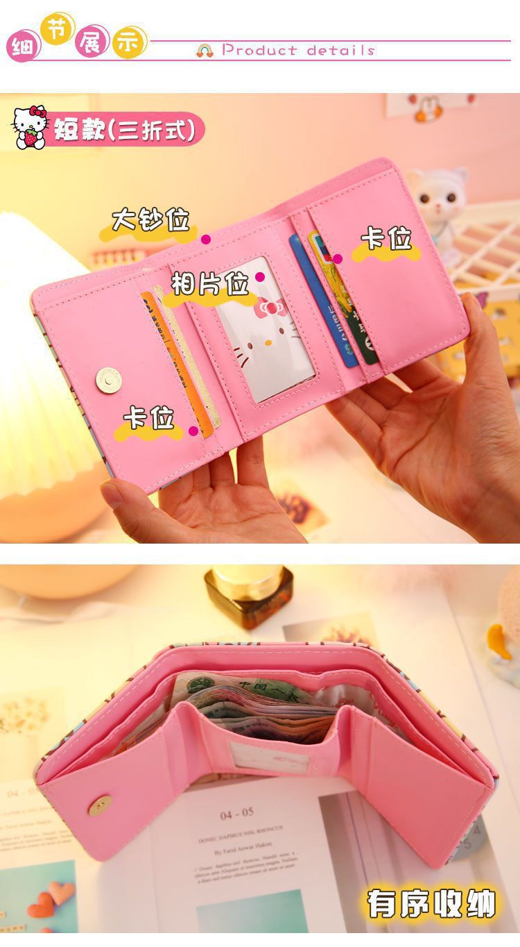 귀여운 일본식 만화 지갑 여성용 짧은 스타일 심플하고 상큼한 소녀풍 접이식 어린이 공주 헬로키티 동전 지갑스토어 가기