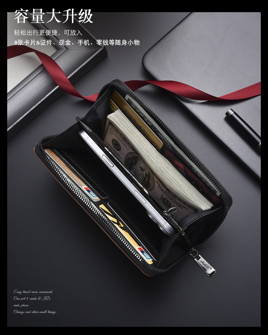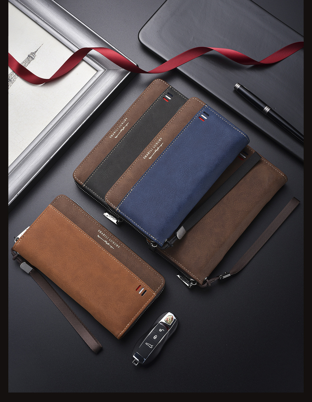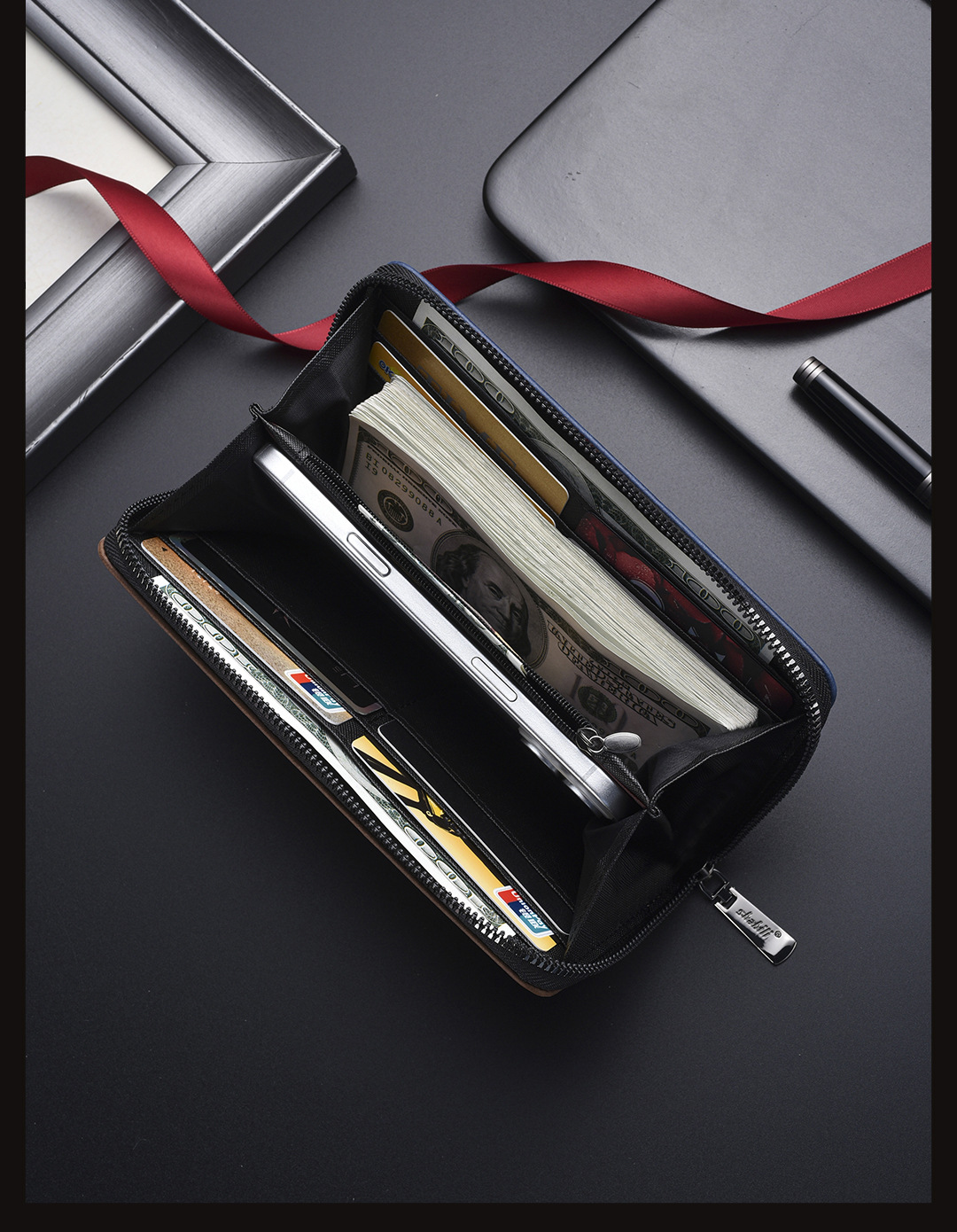 국경 간 새로운 남성용 긴 지퍼 지갑 멀티 카드 슬롯 대용량 휴대 전화 지갑 pu 클러치 백 공장 핫 세일